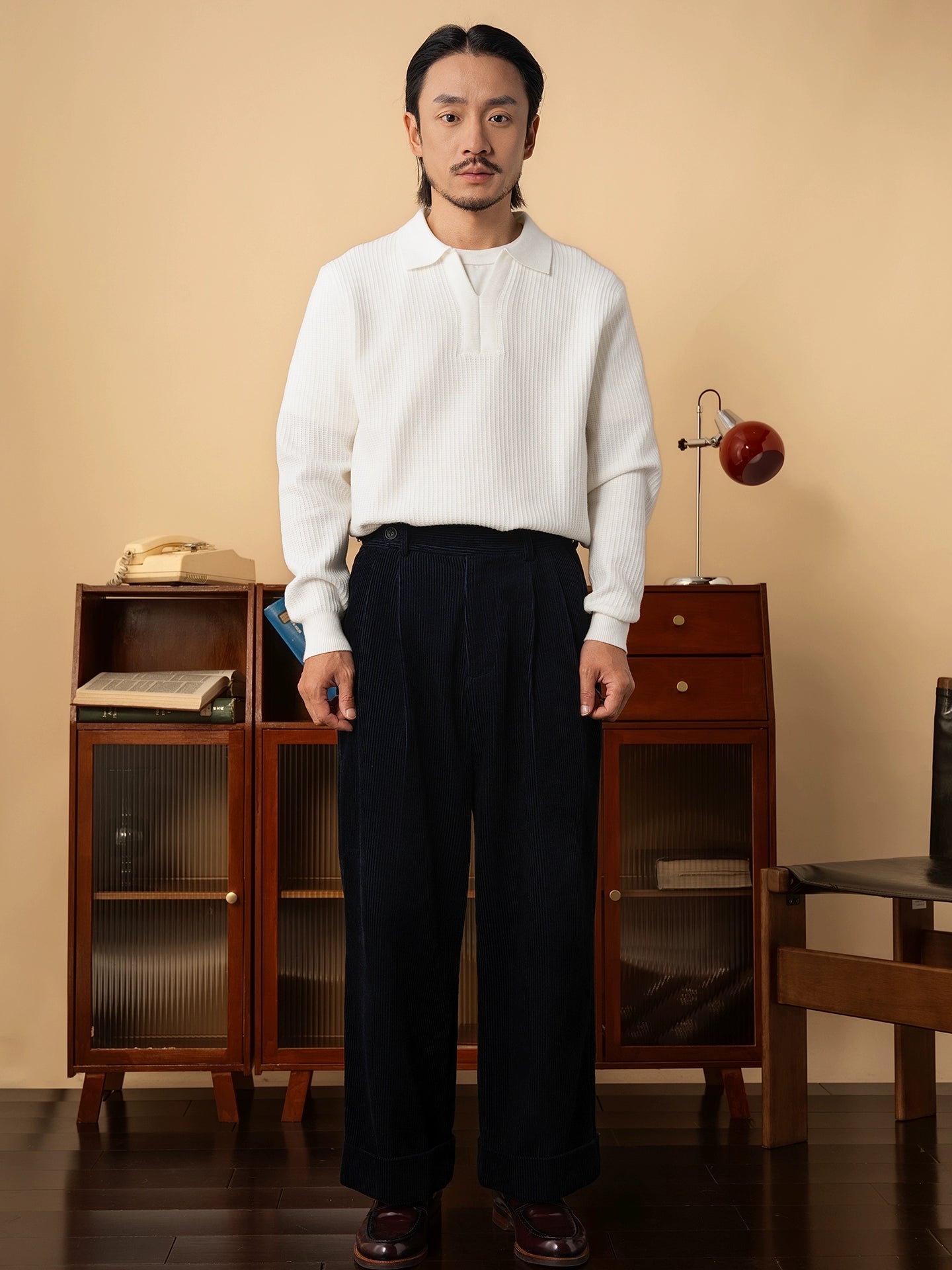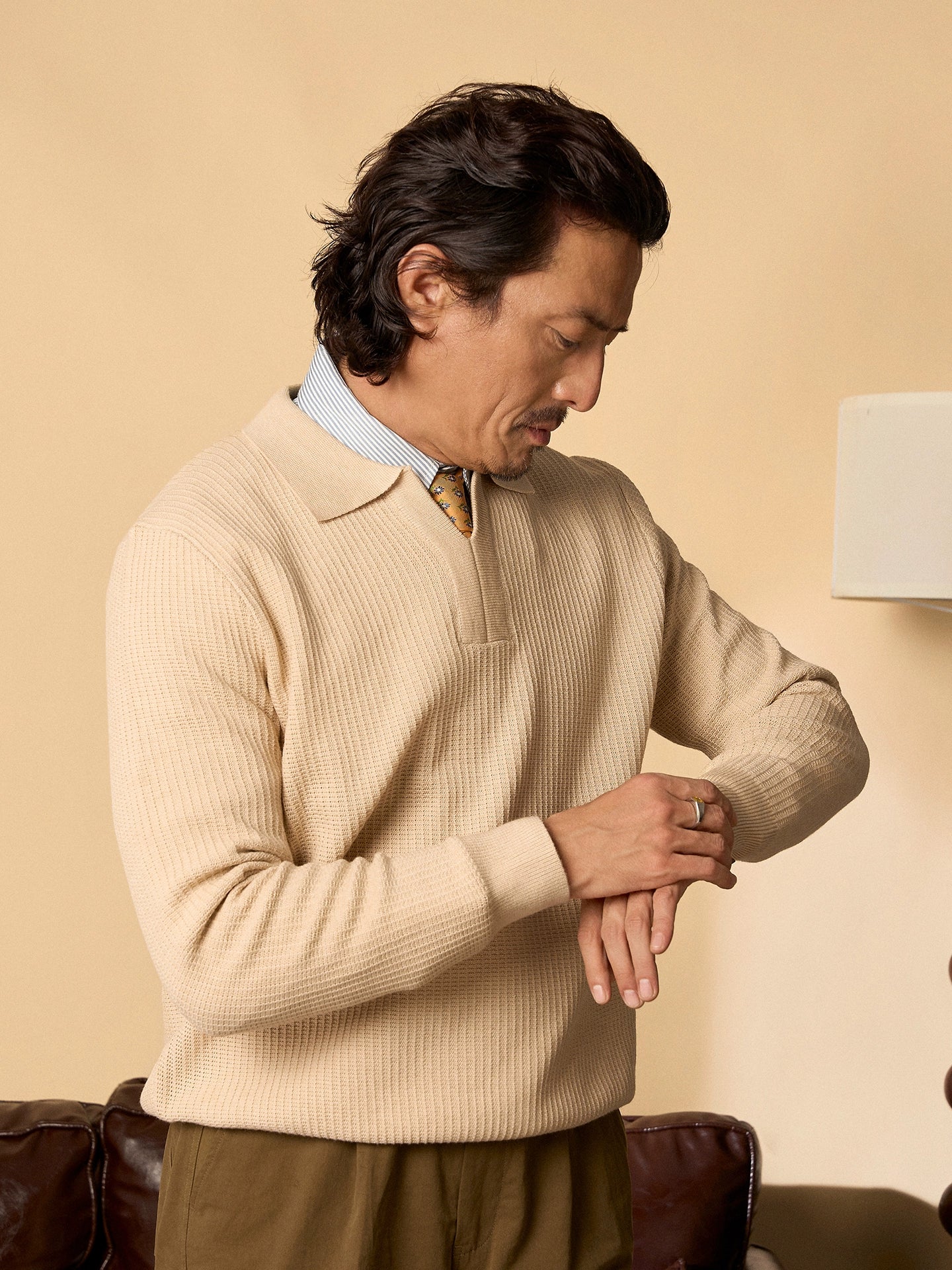 【华夫格】SOARIN英式绅装polo长袖针织衫男翻领肌理感通勤毛衣