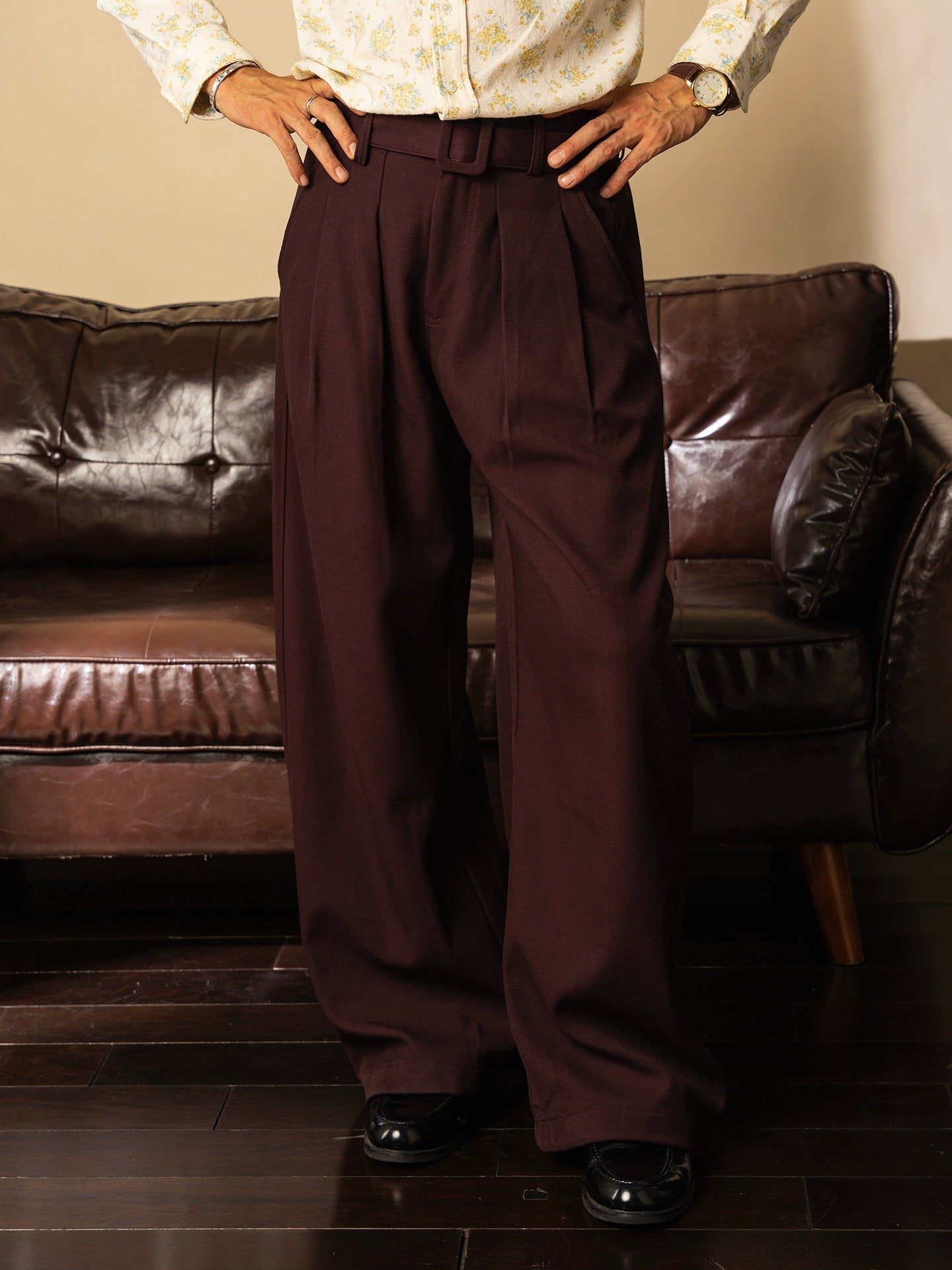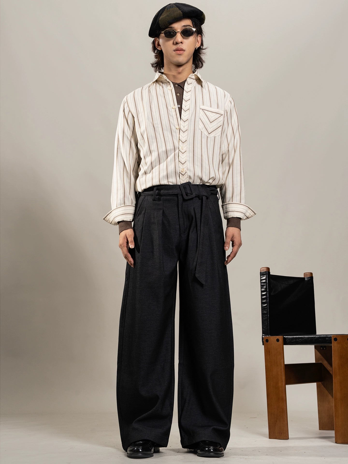 【自带腰带】SOARIN英伦复古休闲直筒阔腿裤男痞帅免烫抗皱高腰裤