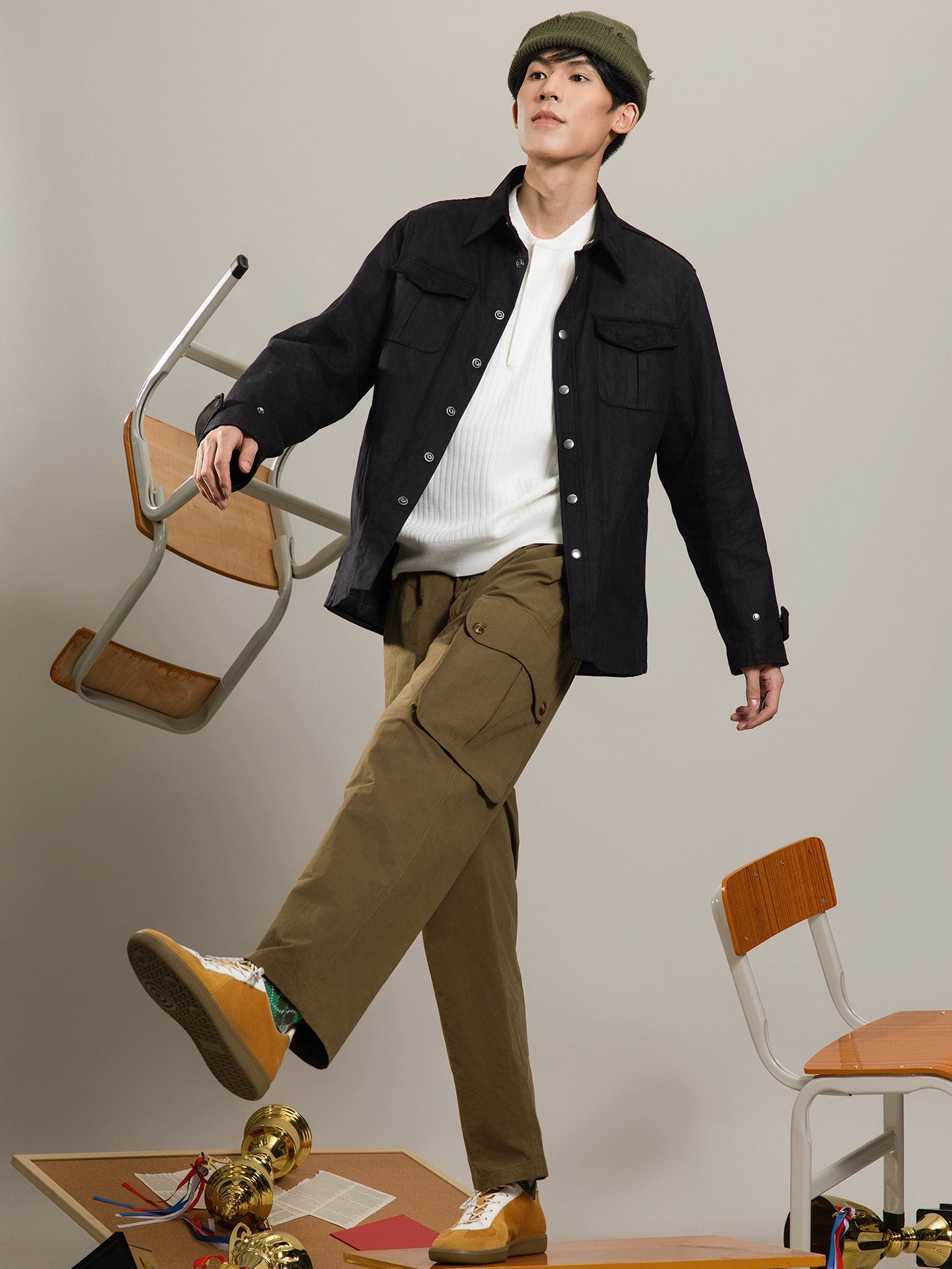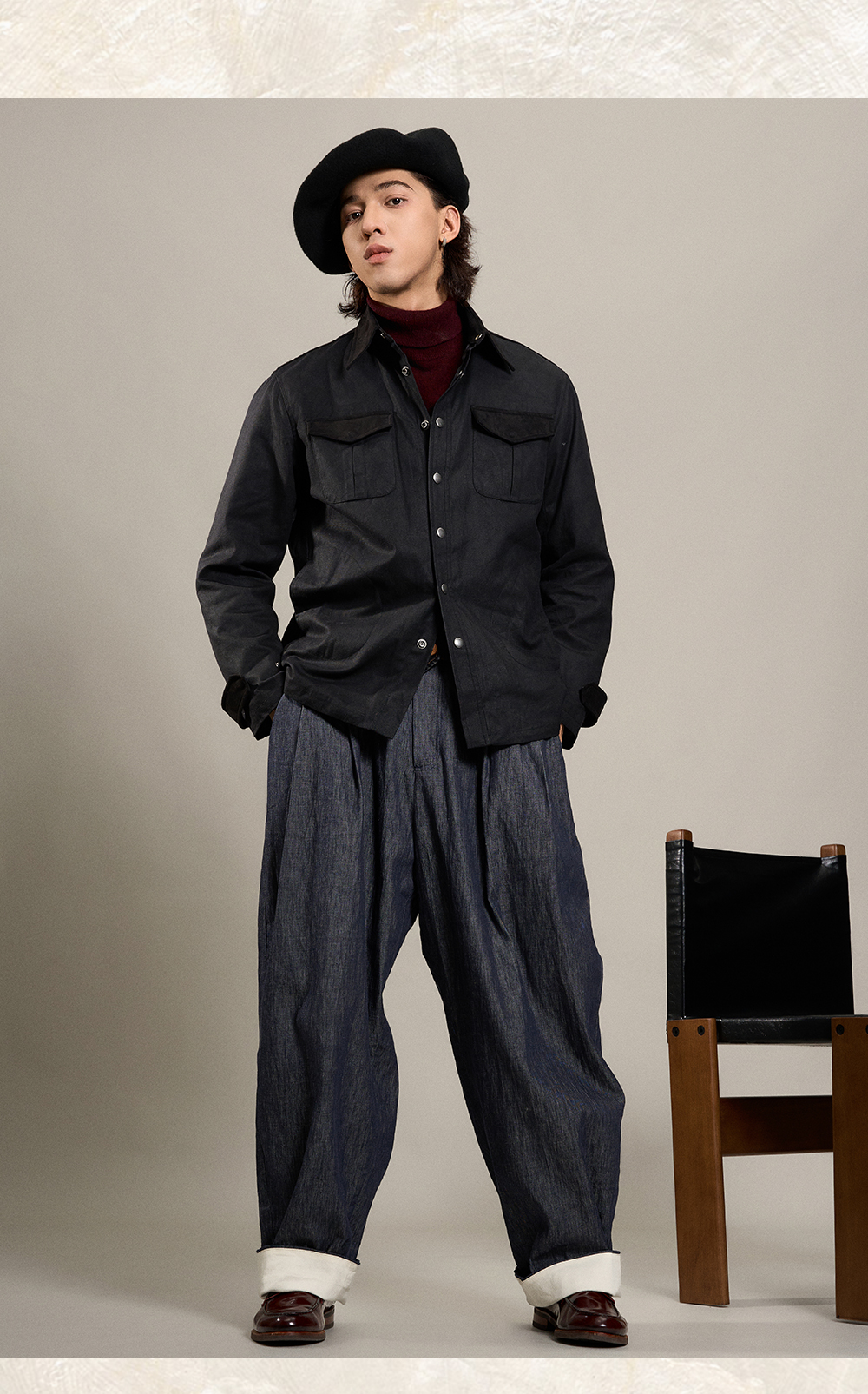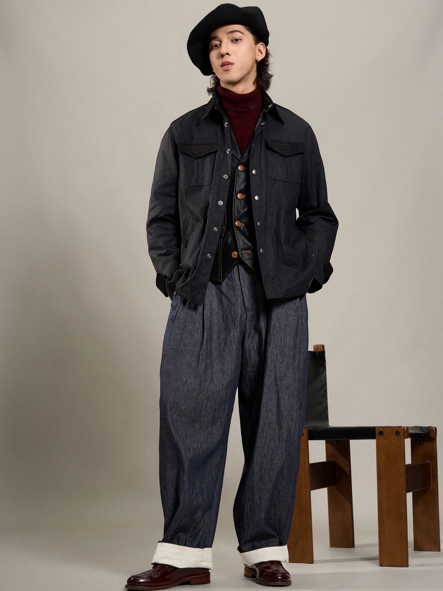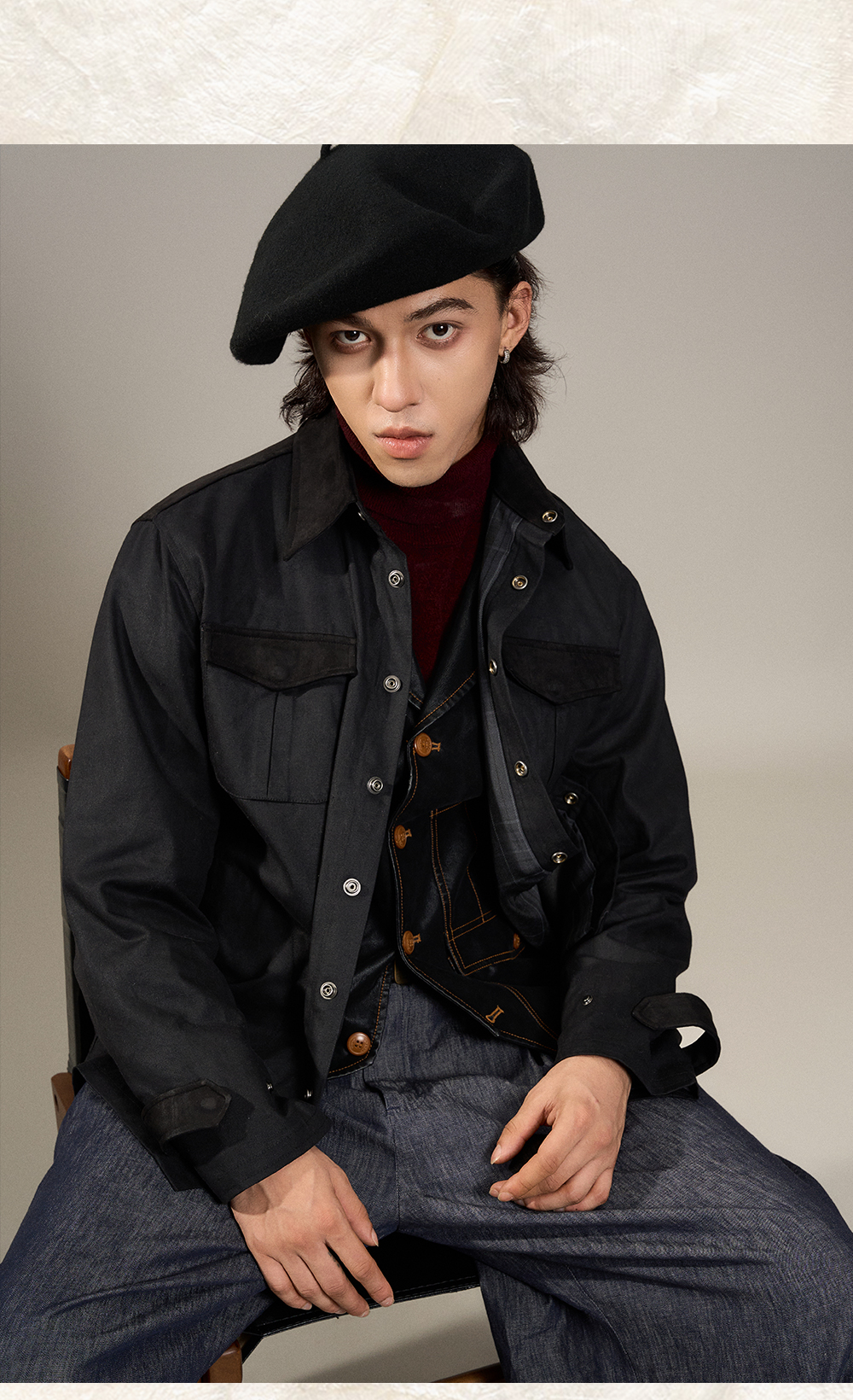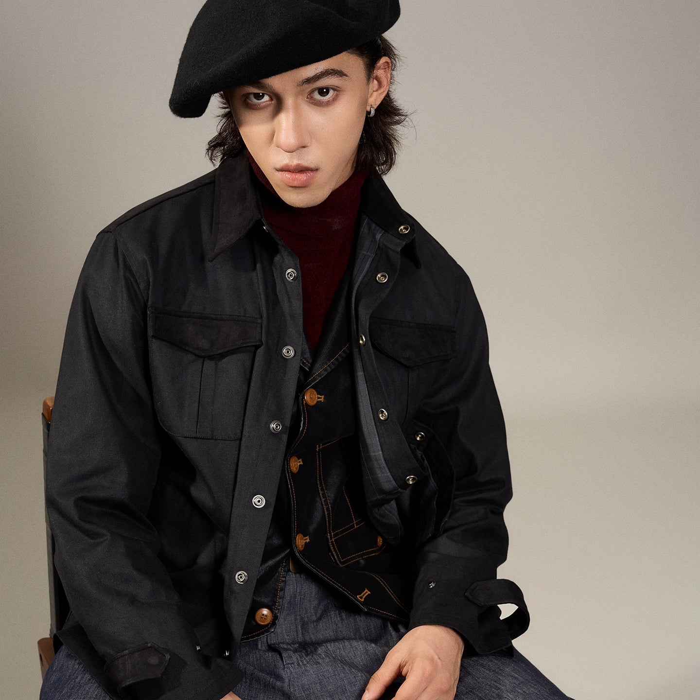 【重磅油蜡布】SOARIN美式工装夹克男 拼接休闲双口袋油蜡外套