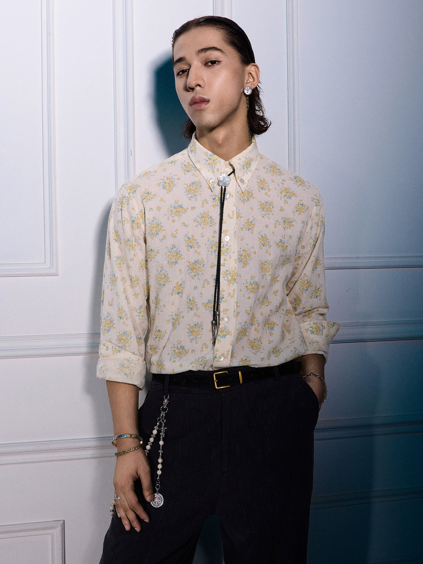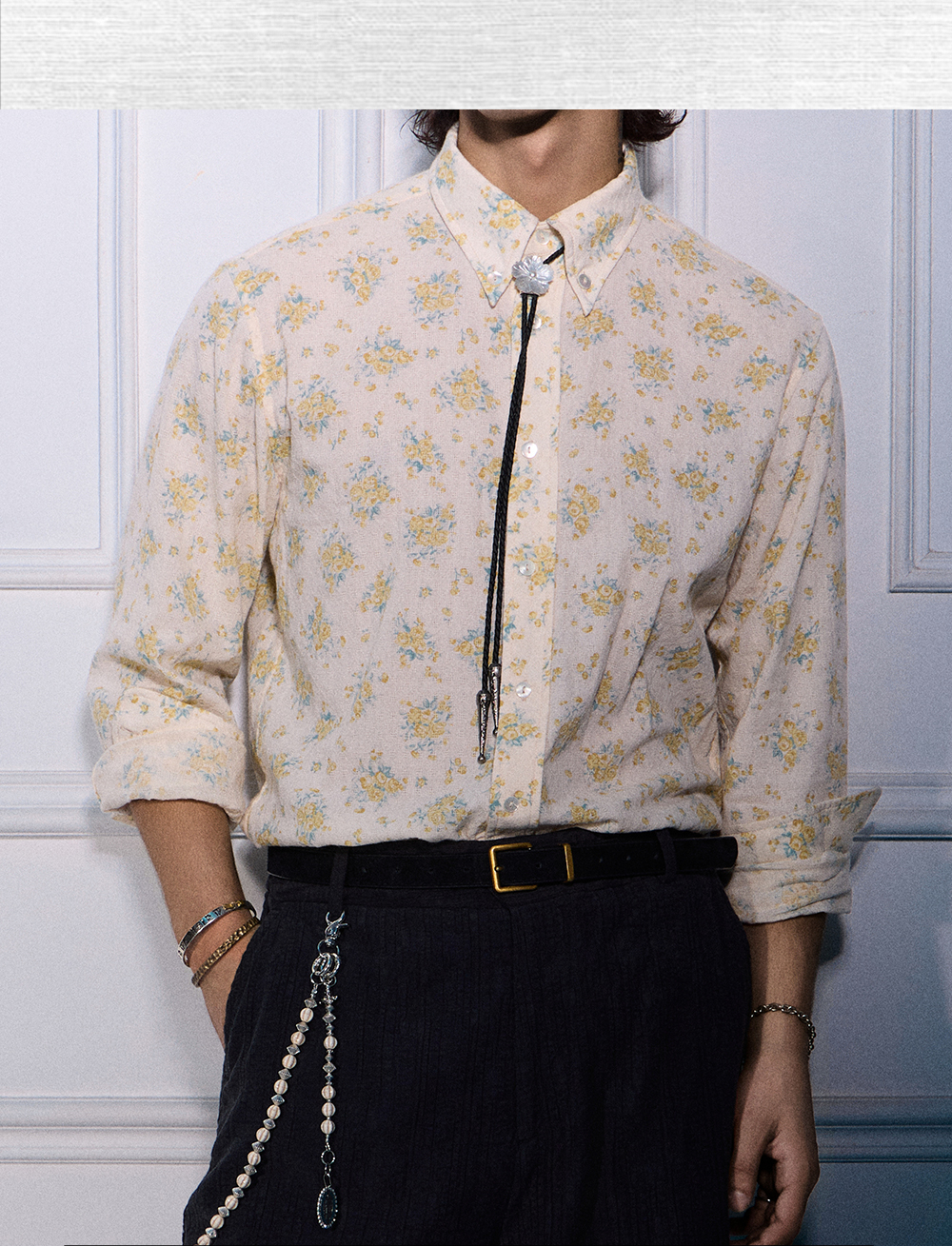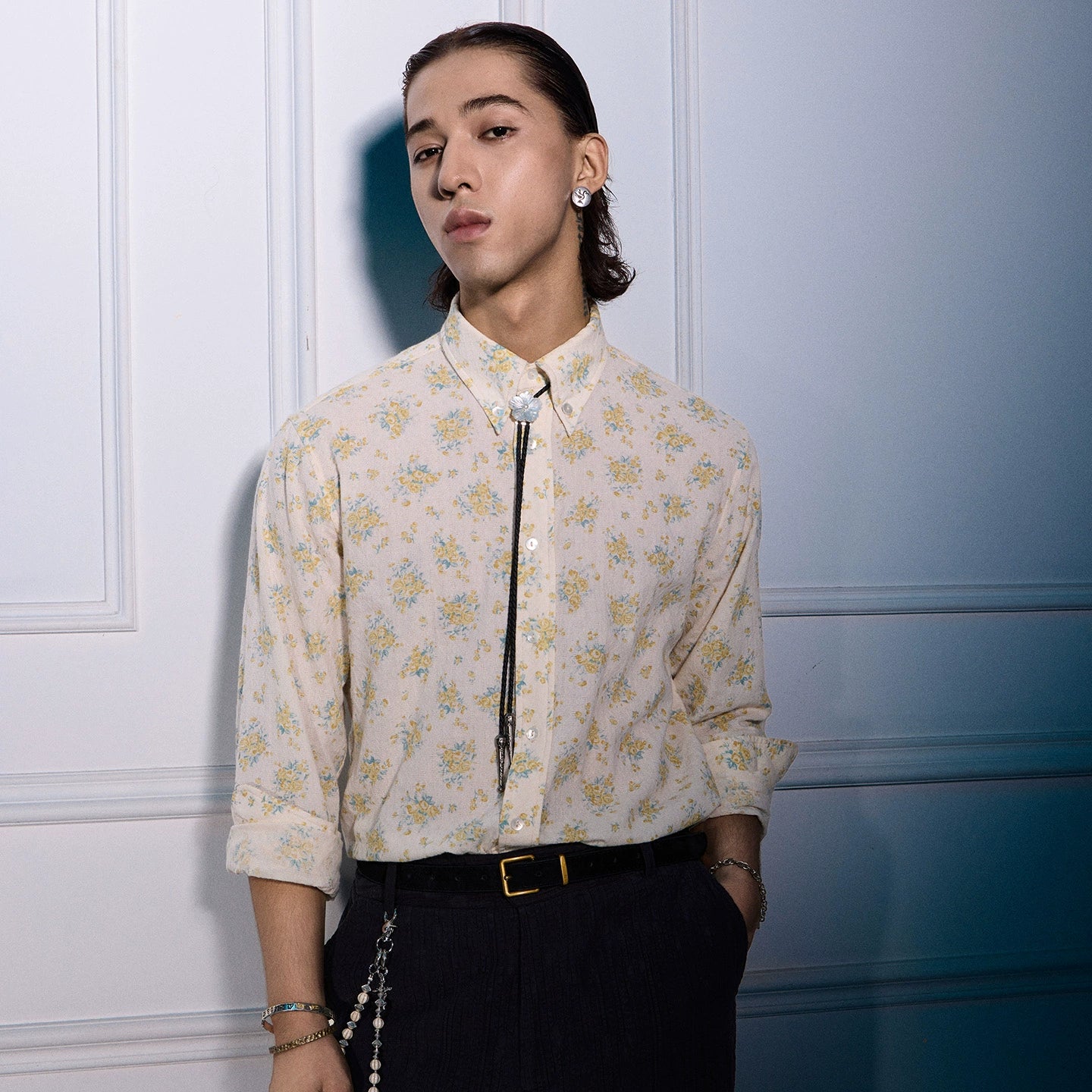 SOARIN复古意式印花长袖衬衫男 雅痞高级感中性风休闲碎花衬衣