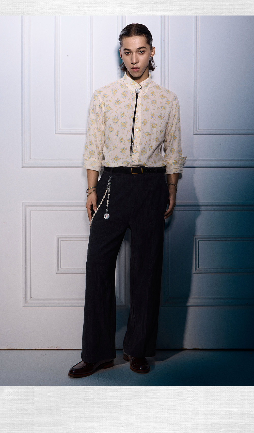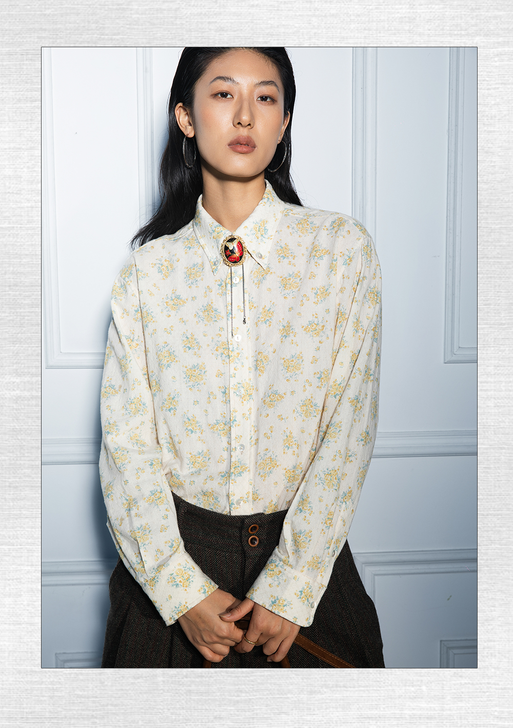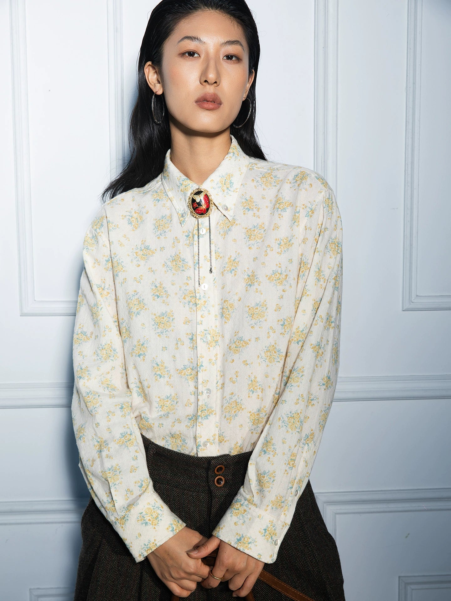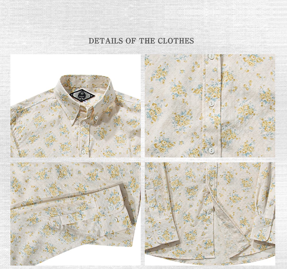 SOARIN复古意式印花长袖衬衫男 雅痞高级感中性风休闲碎花衬衣