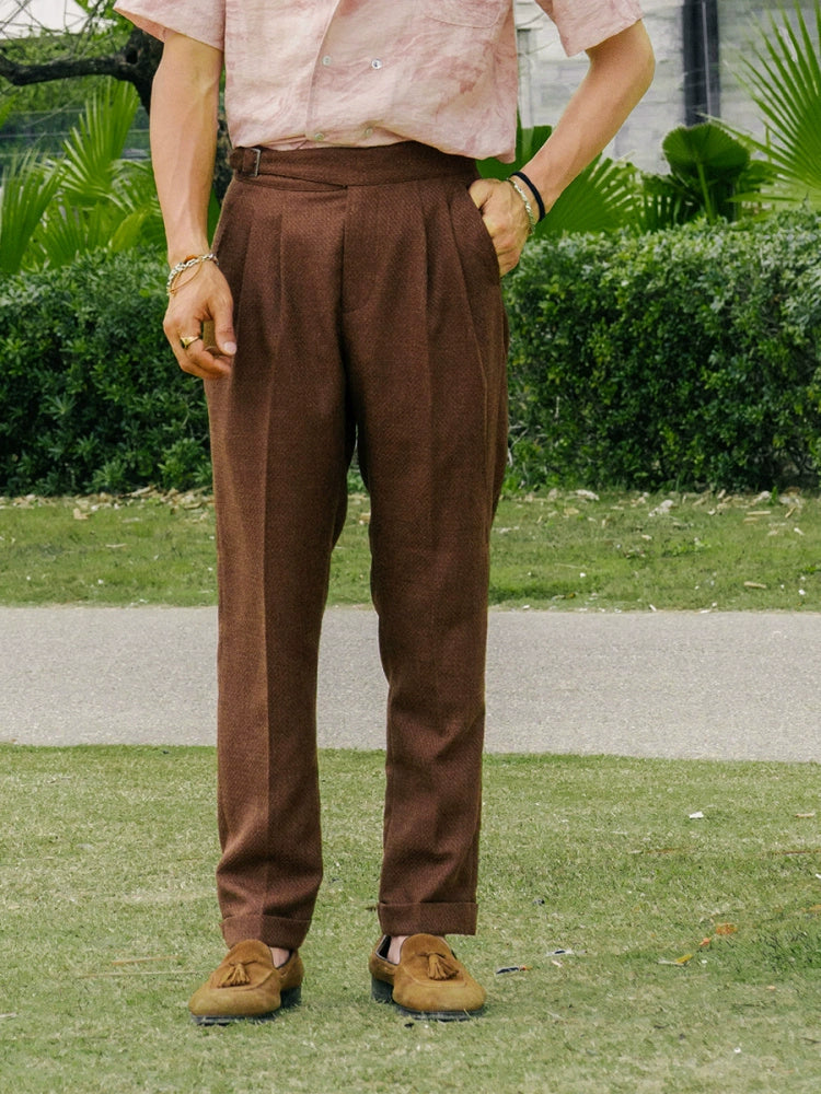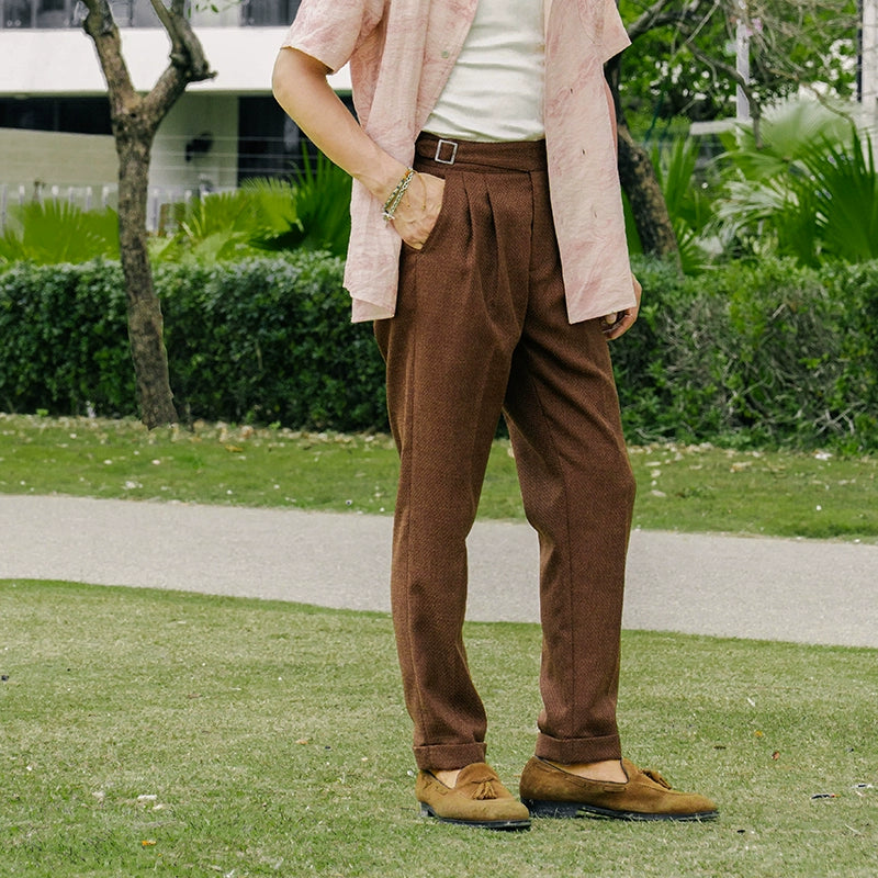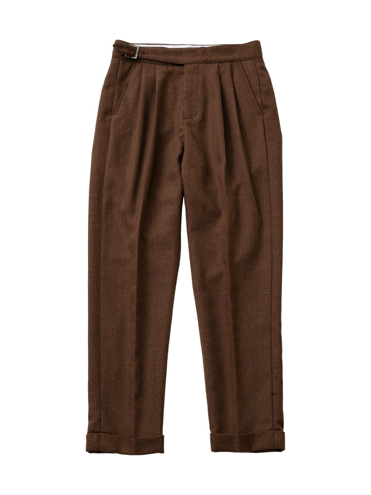 SOARIN复古意式那不勒斯西裤男 肌理纹高腰商务绅士通勤九分裤子