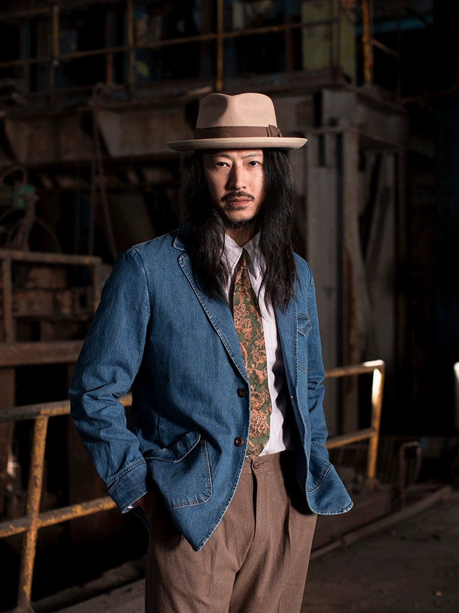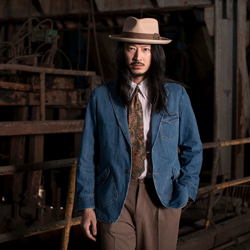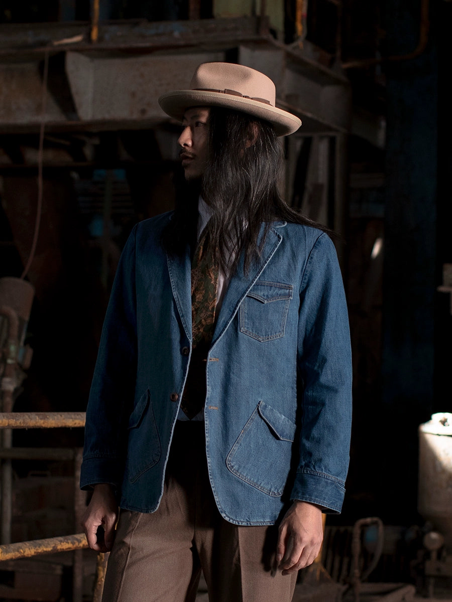 SOARIN复古美式工装牛仔西装男 冬季商务休闲修身猎装外套牛仔衣