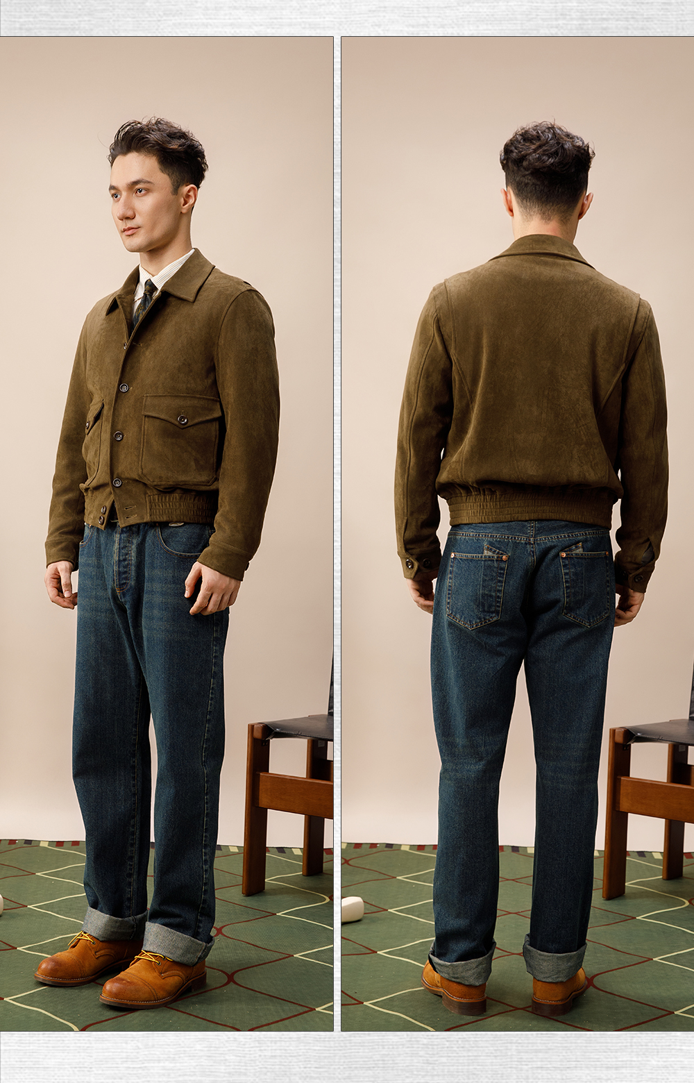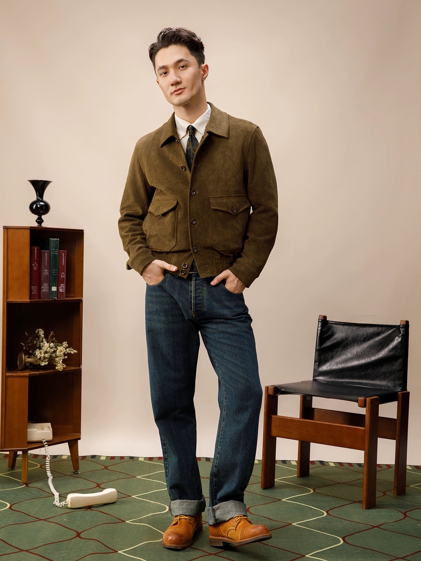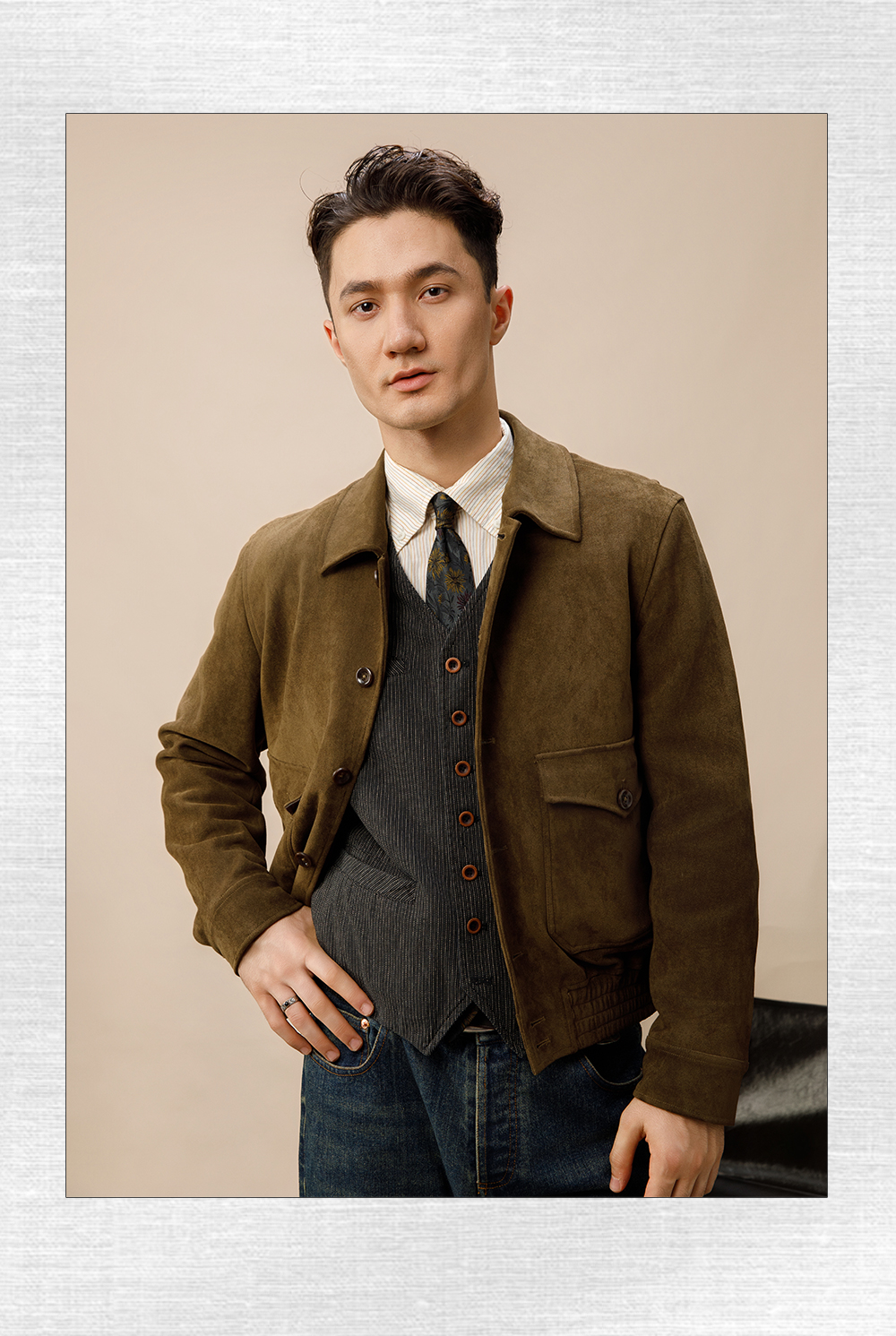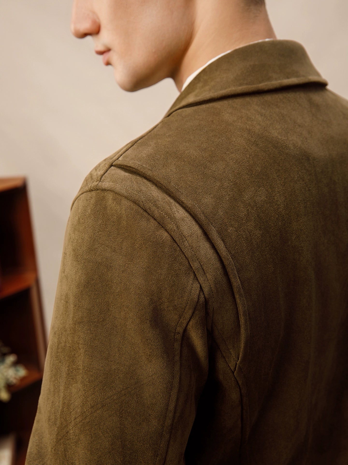 SOARIN复古美式工装鹿皮绒短款夹克男绅士休闲宽松翻领飞行员外套