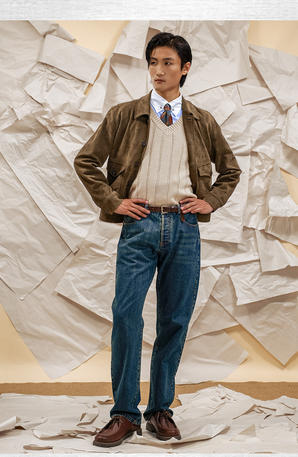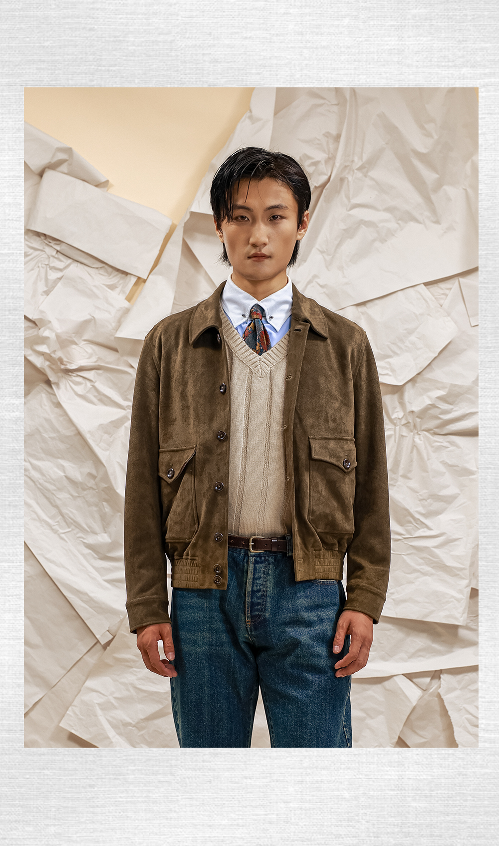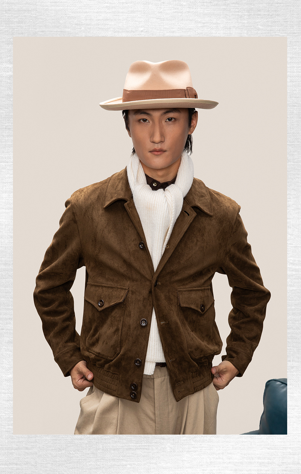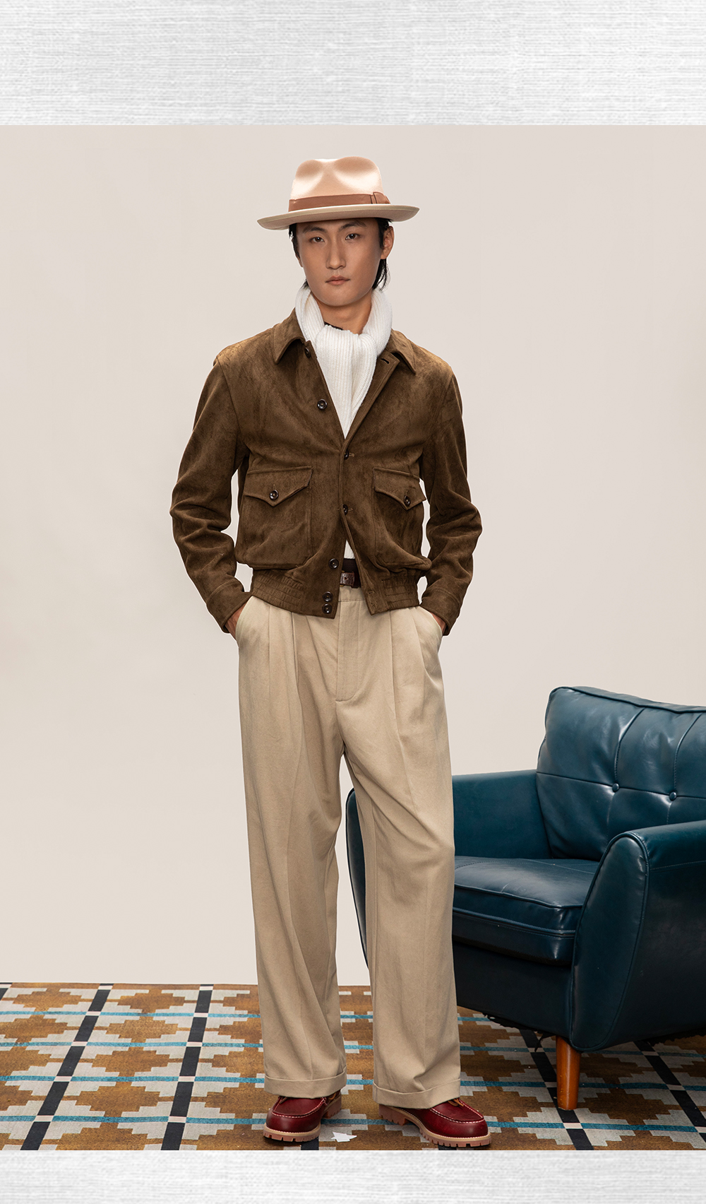 SOARIN复古美式工装鹿皮绒短款夹克男绅士休闲宽松翻领飞行员外套