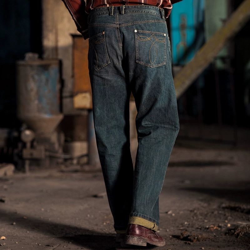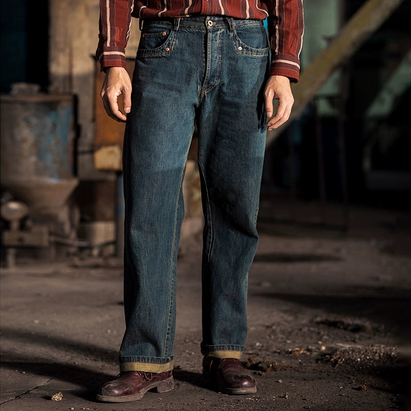 SOARIN复古美式牛仔裤男 阿美咔叽做旧感水洗赤耳丹宁直筒工装裤