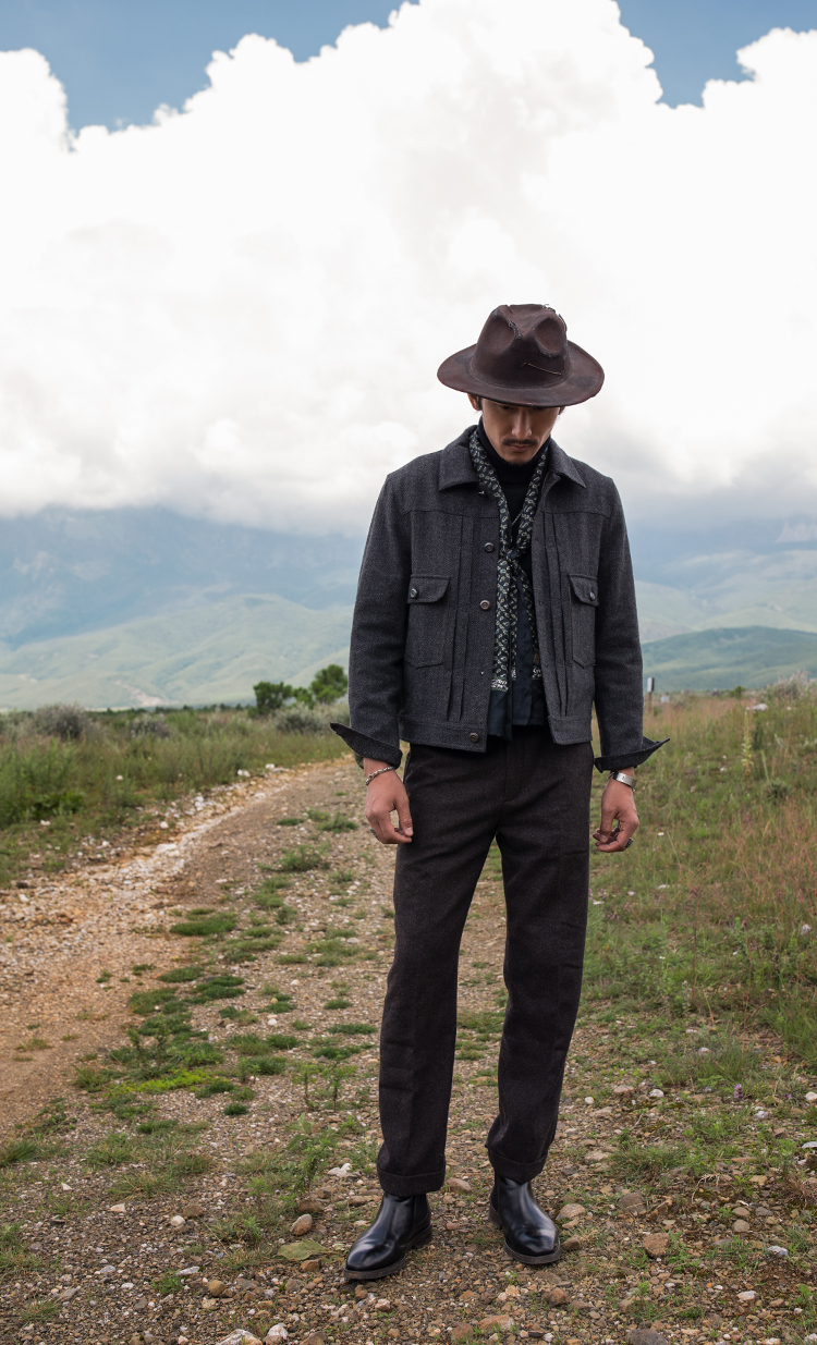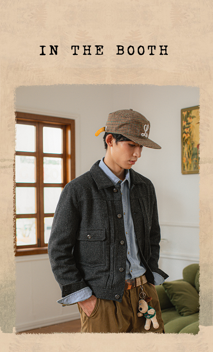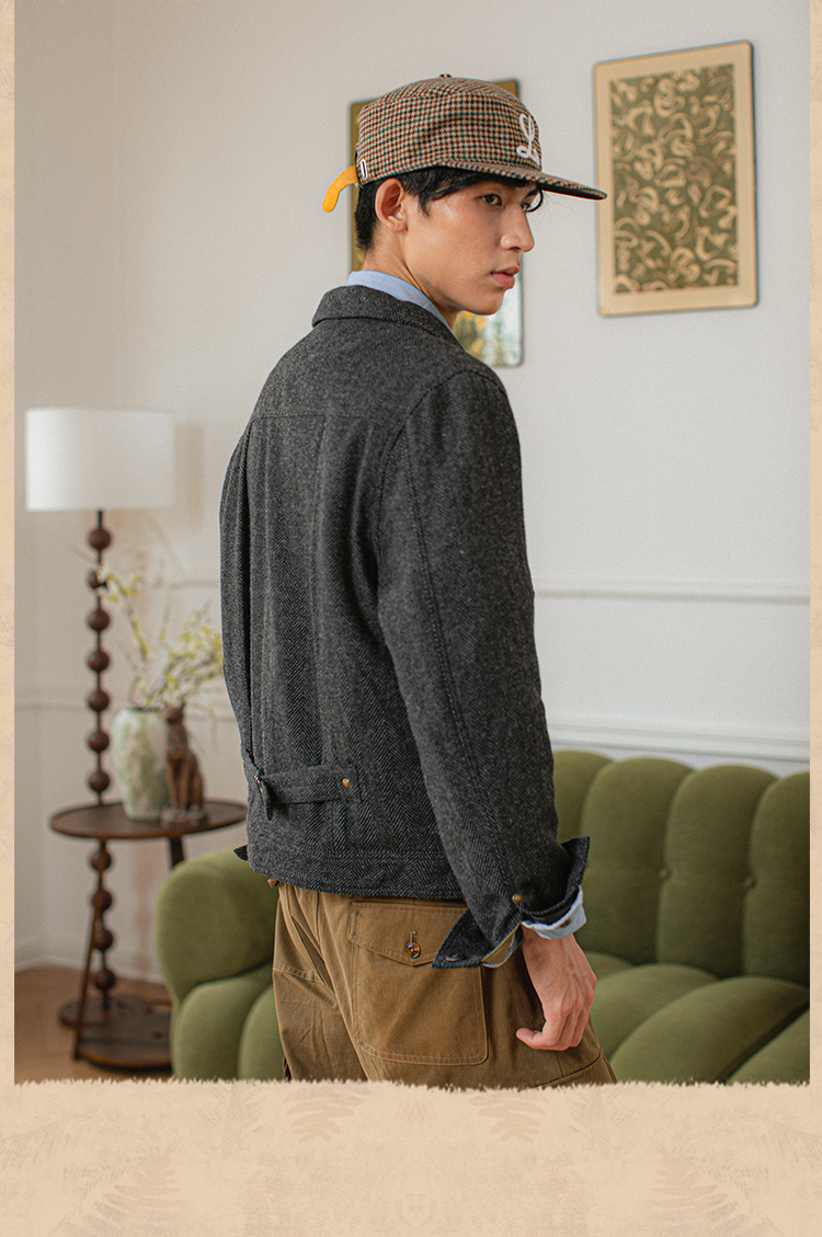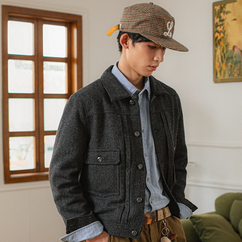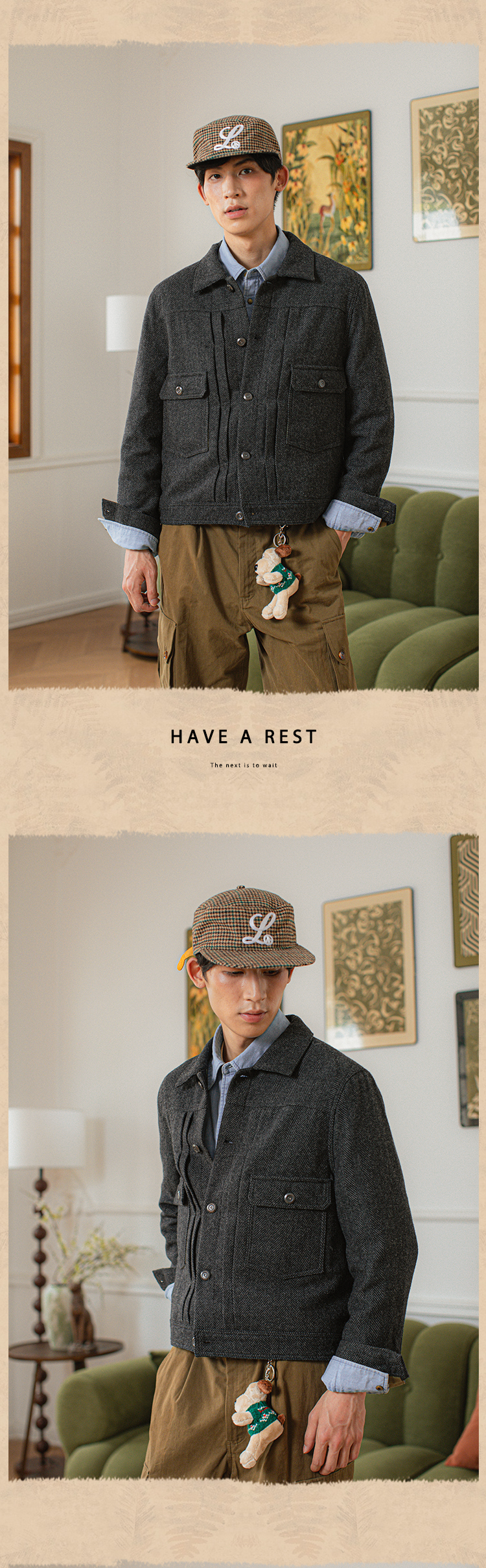SOARIN复古美式重磅工装夹克男阿美咔叽机车服休闲羊毛呢牧场外套