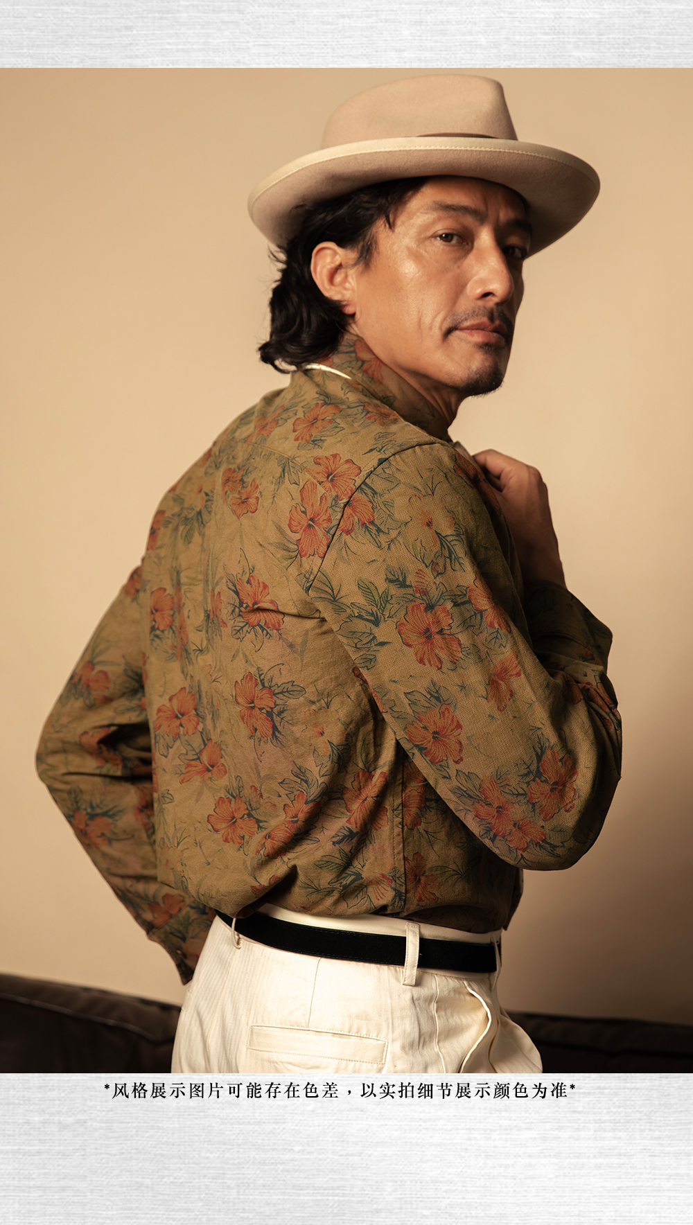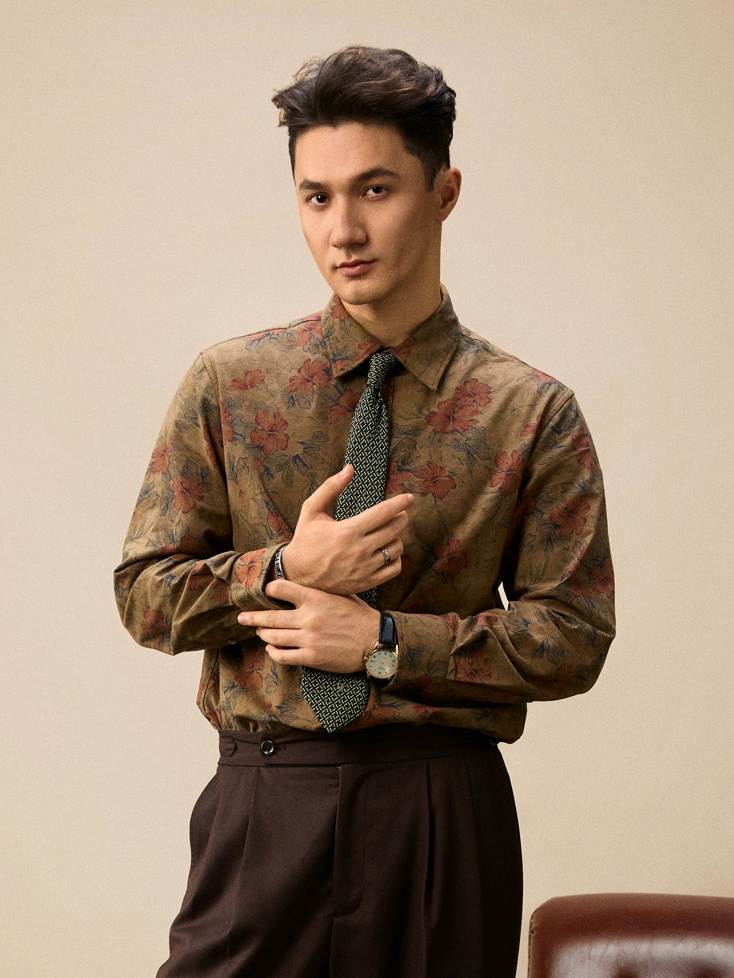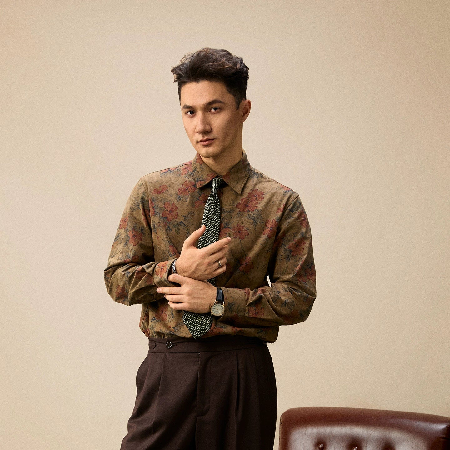 SOARIN复古老钱风印花长袖衬衫男高级感法式休闲雅痞玫瑰碎花衬衣