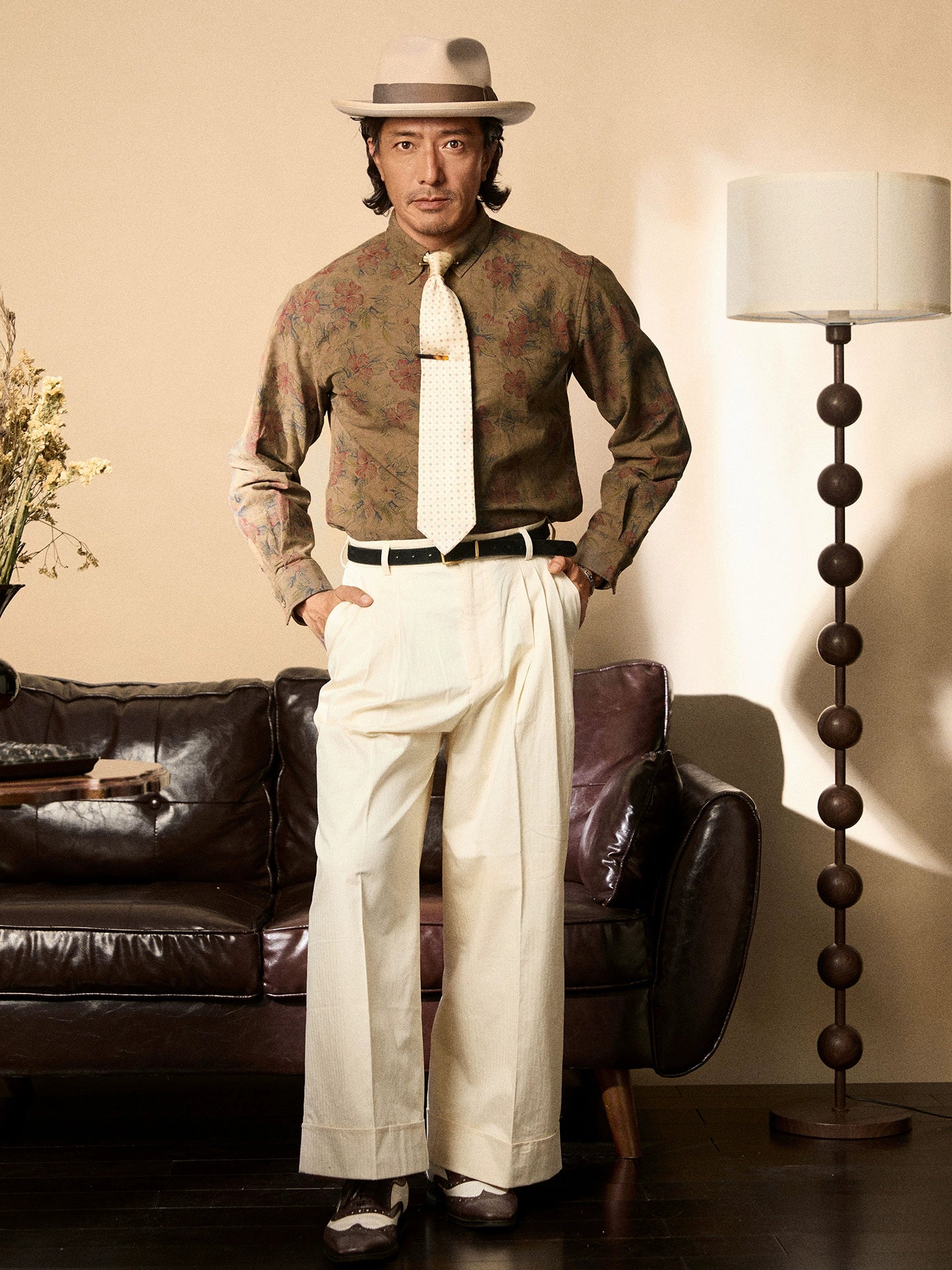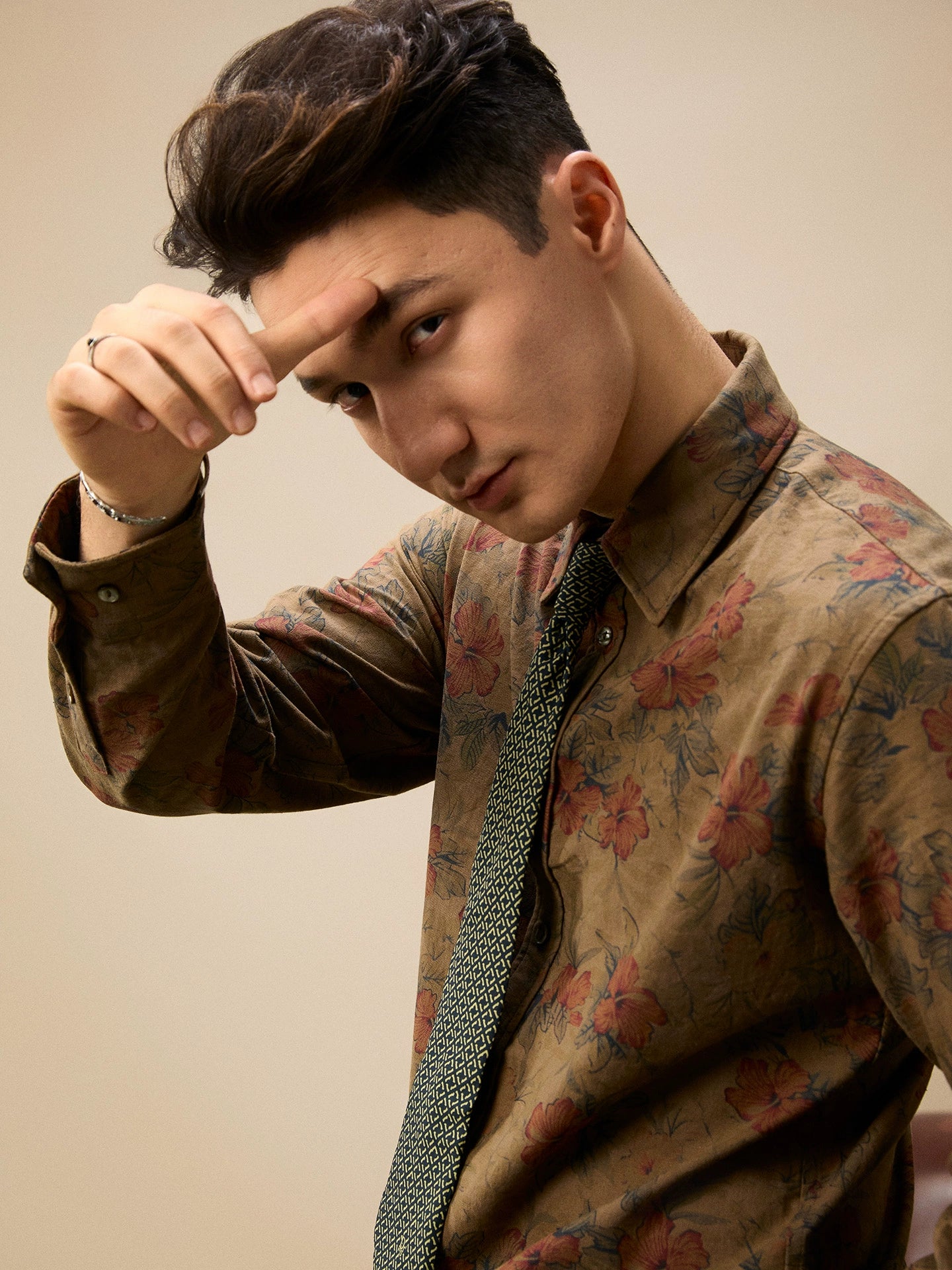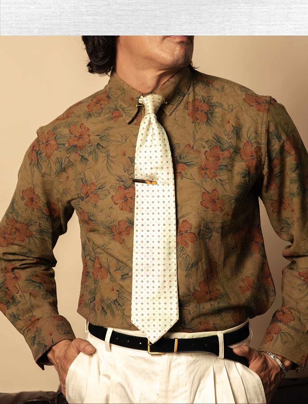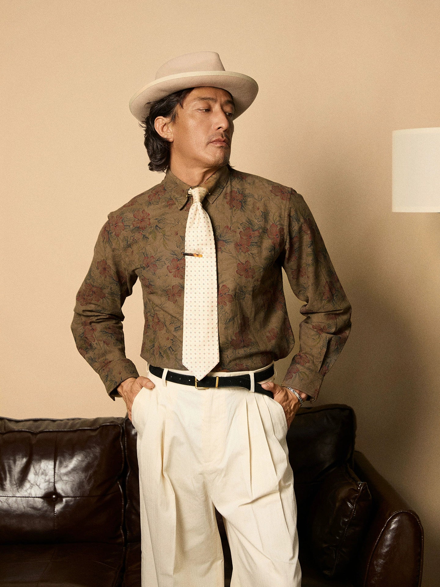 SOARIN复古老钱风印花长袖衬衫男高级感法式休闲雅痞玫瑰碎花衬衣