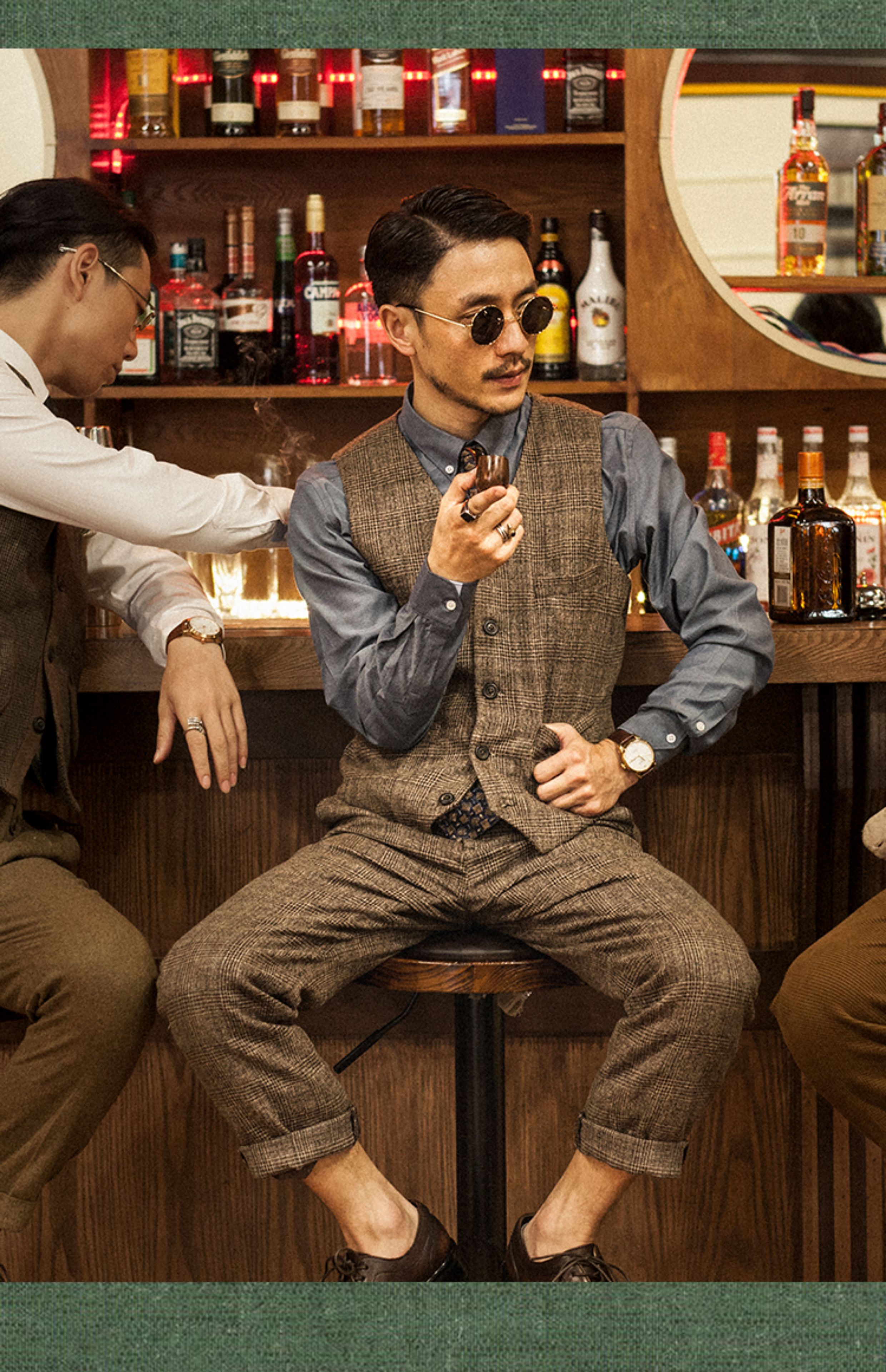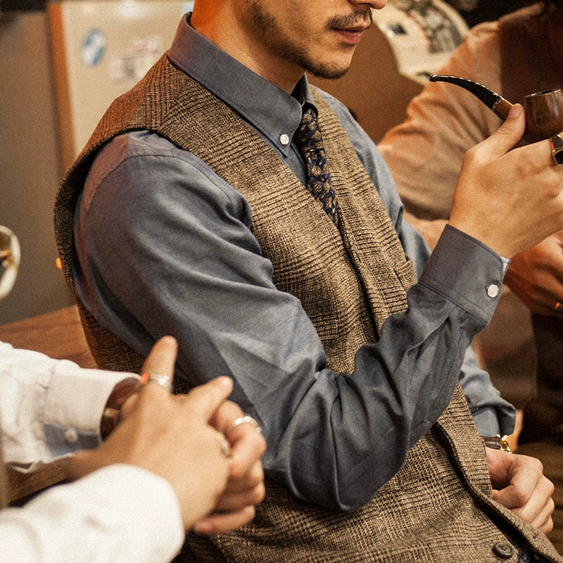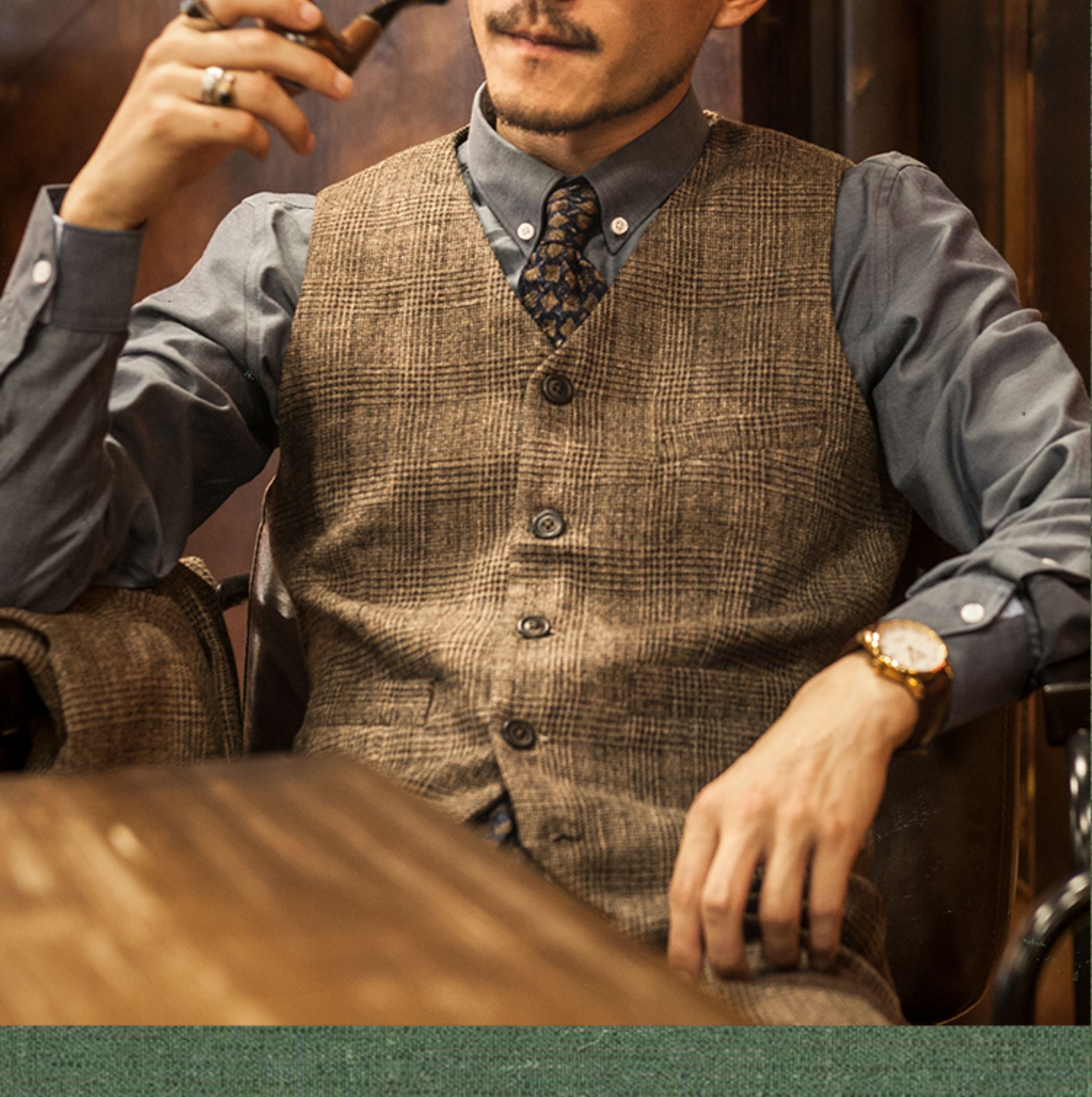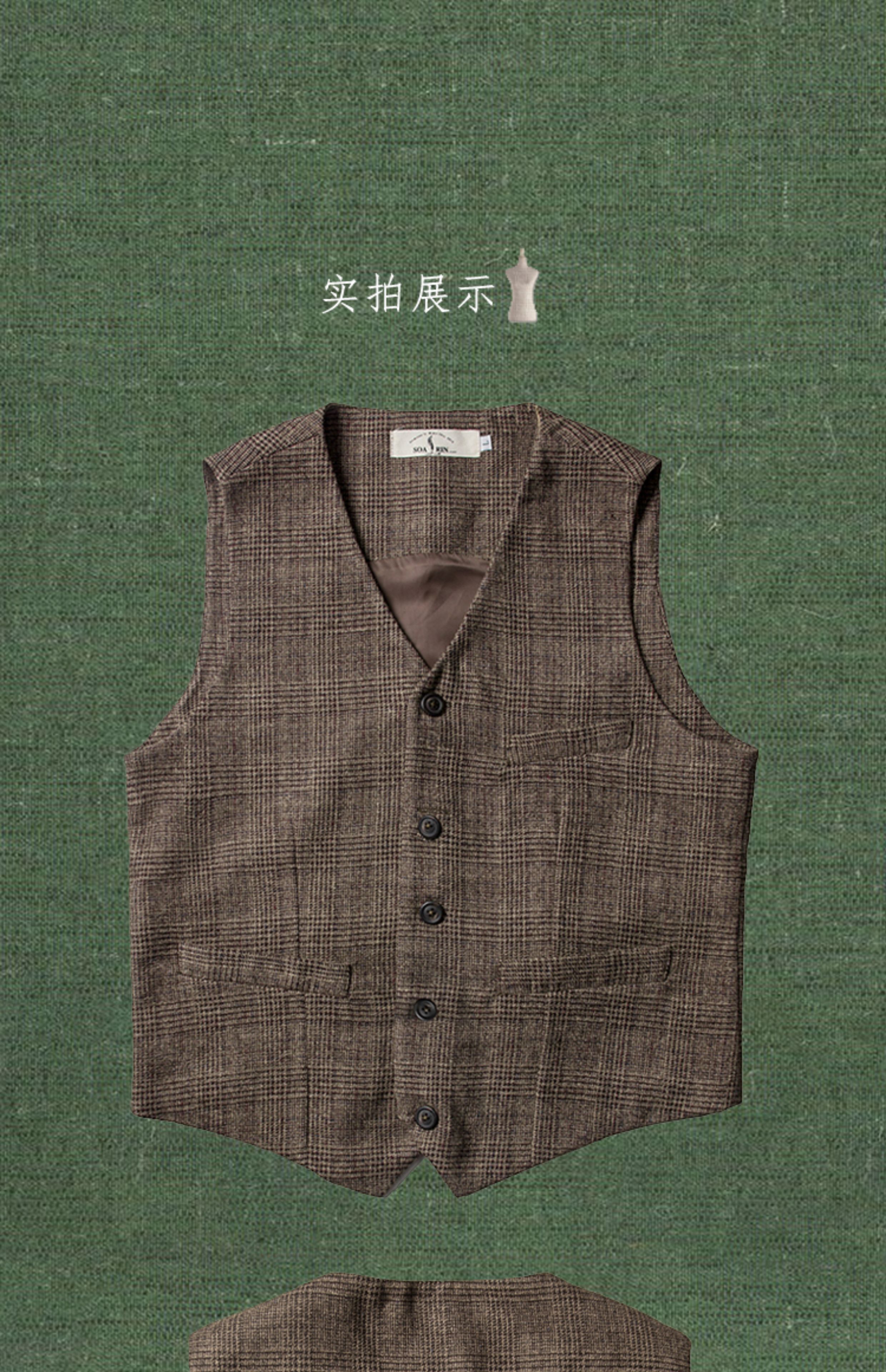SOARIN复古英伦风格子马甲男 浴血黑帮商务休闲修身西装背心马夹