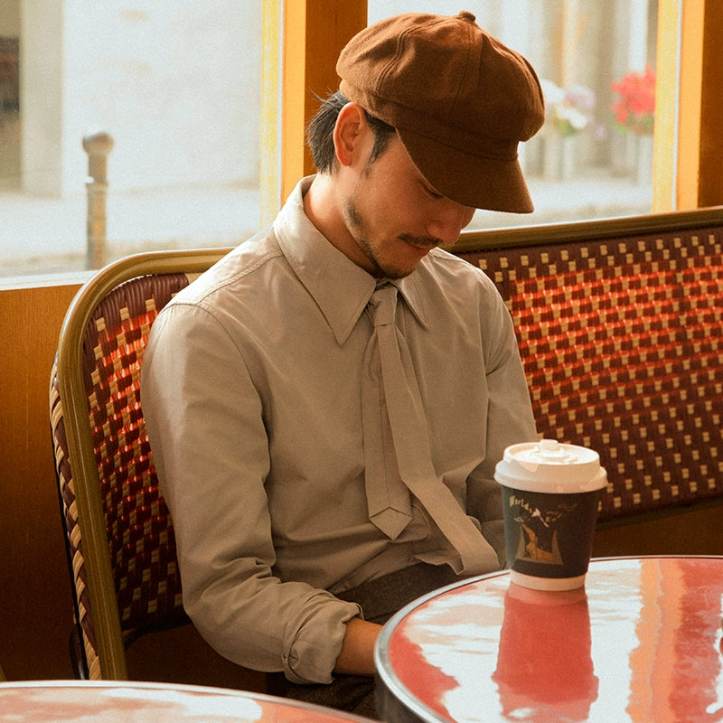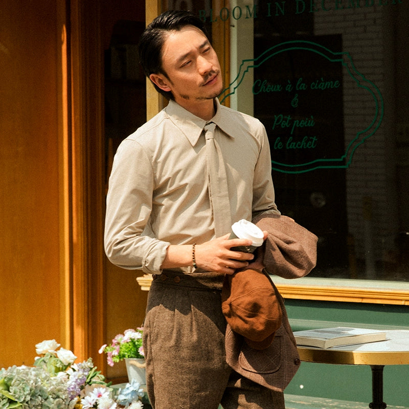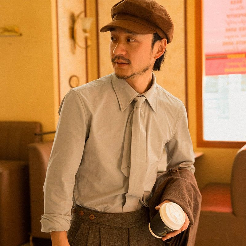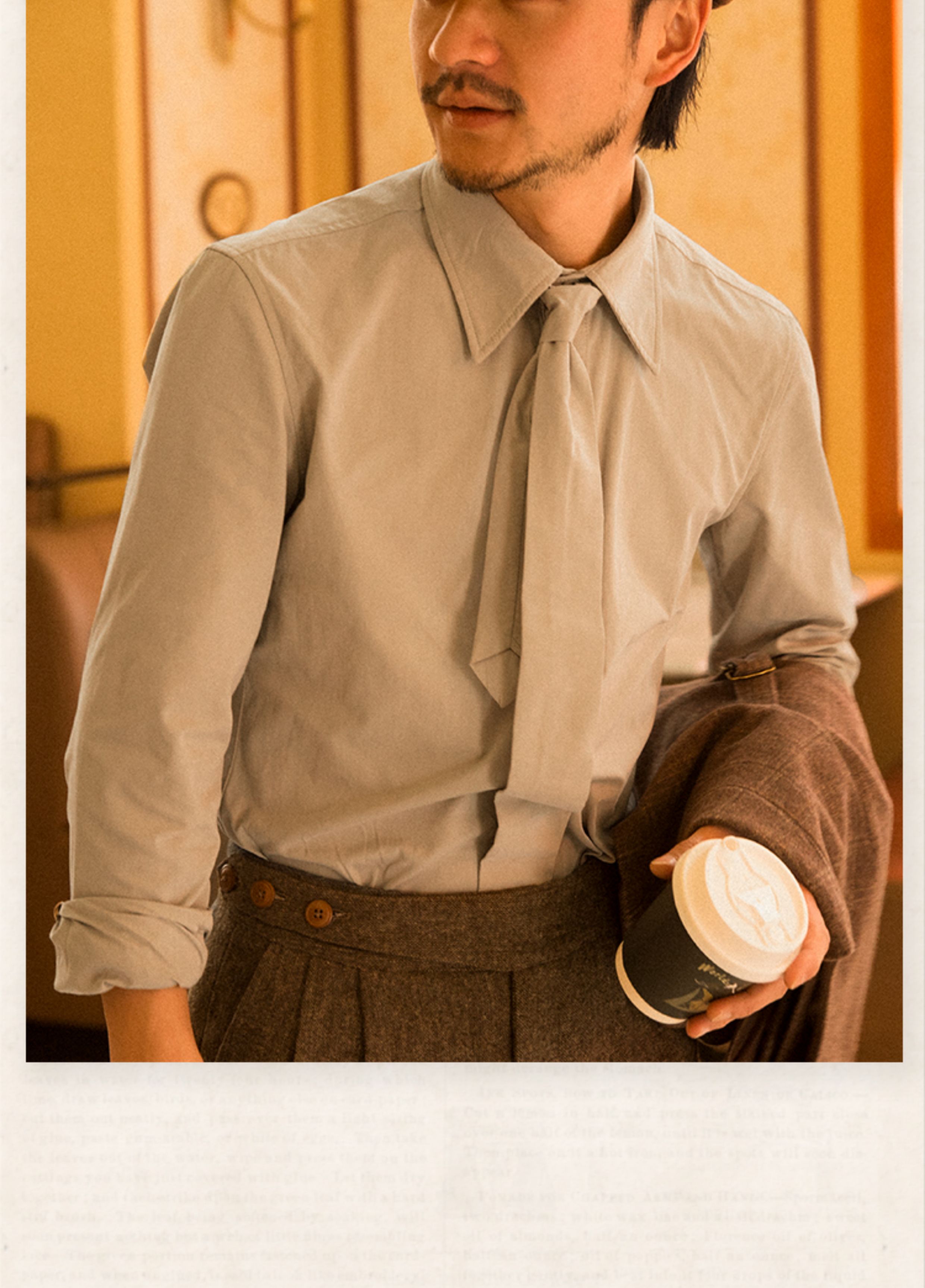 SOARIN复古英伦风高级感衬衫男商务正装修身通勤打底长袖西装衬衣