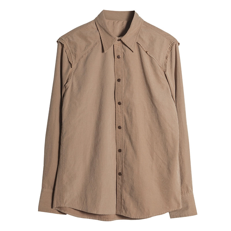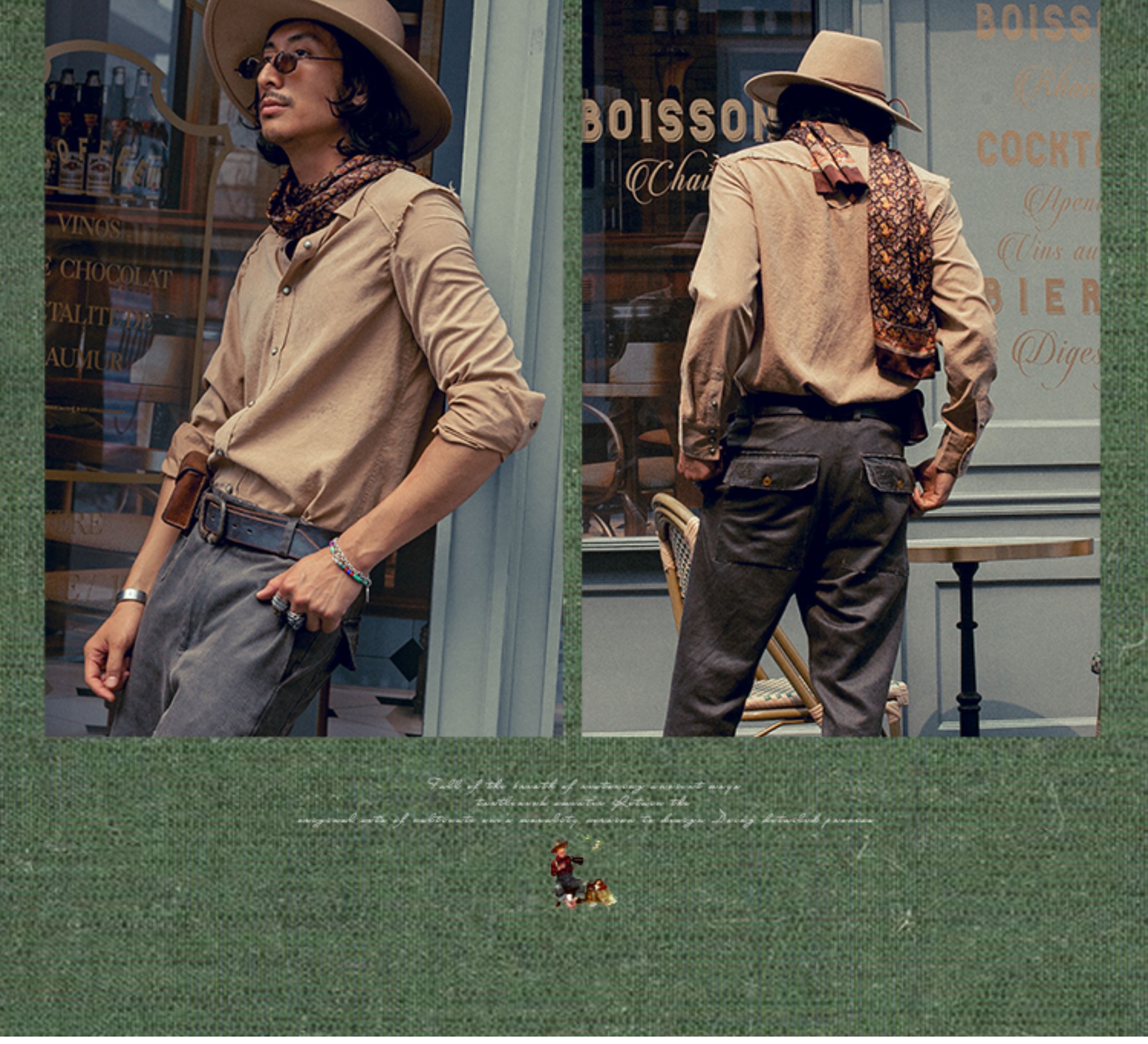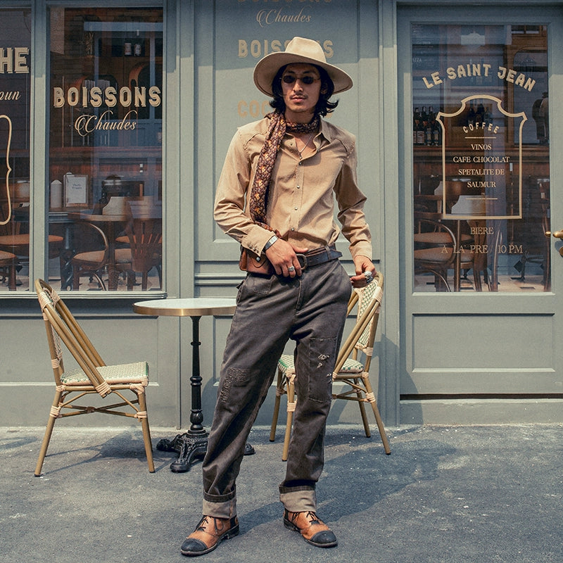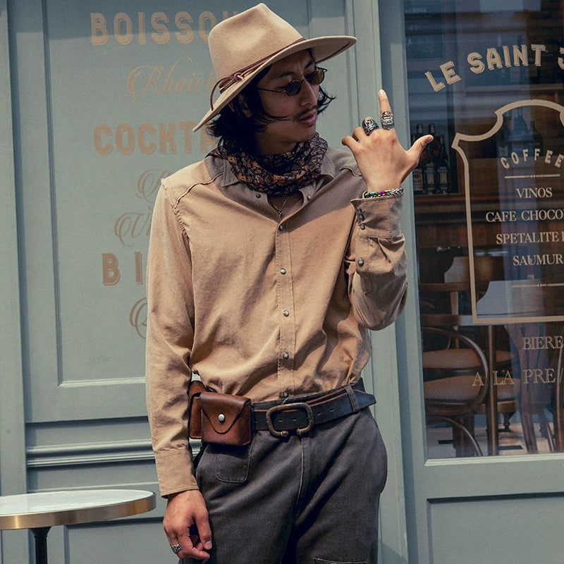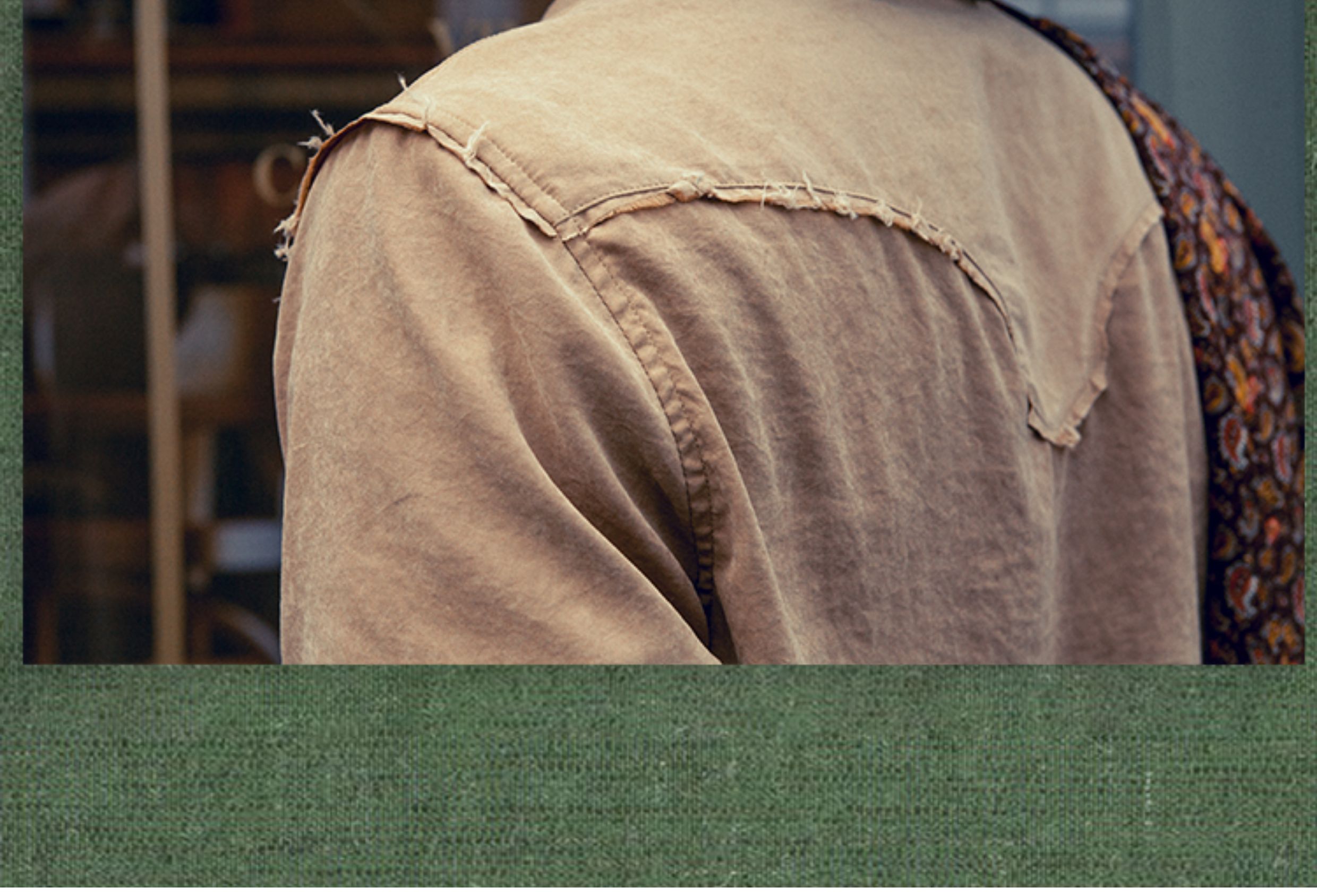 SOARIN复古西部风美式工装衬衫男原创设计感雅痞拼接毛边长袖衬衣