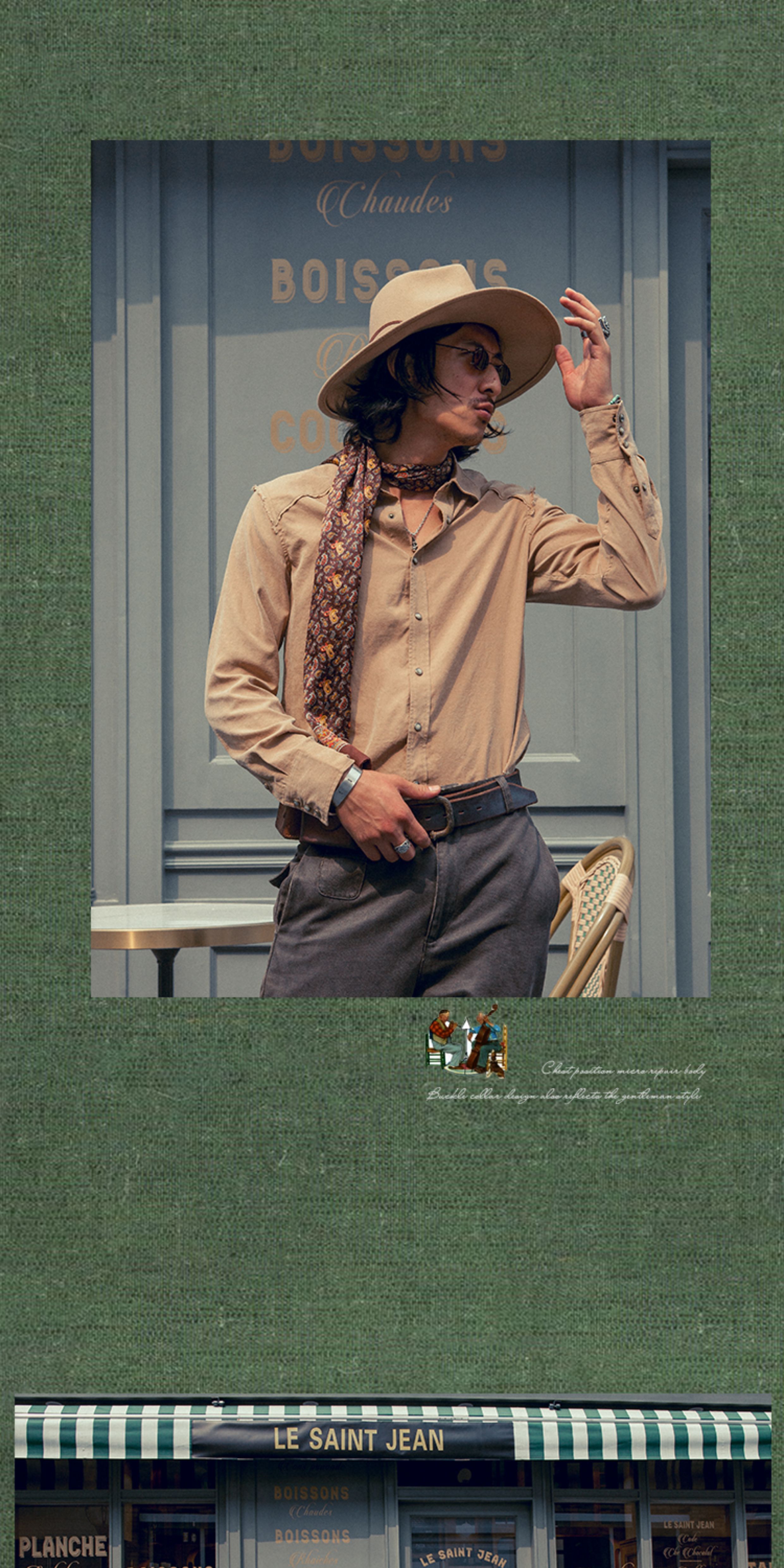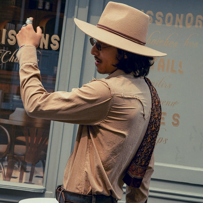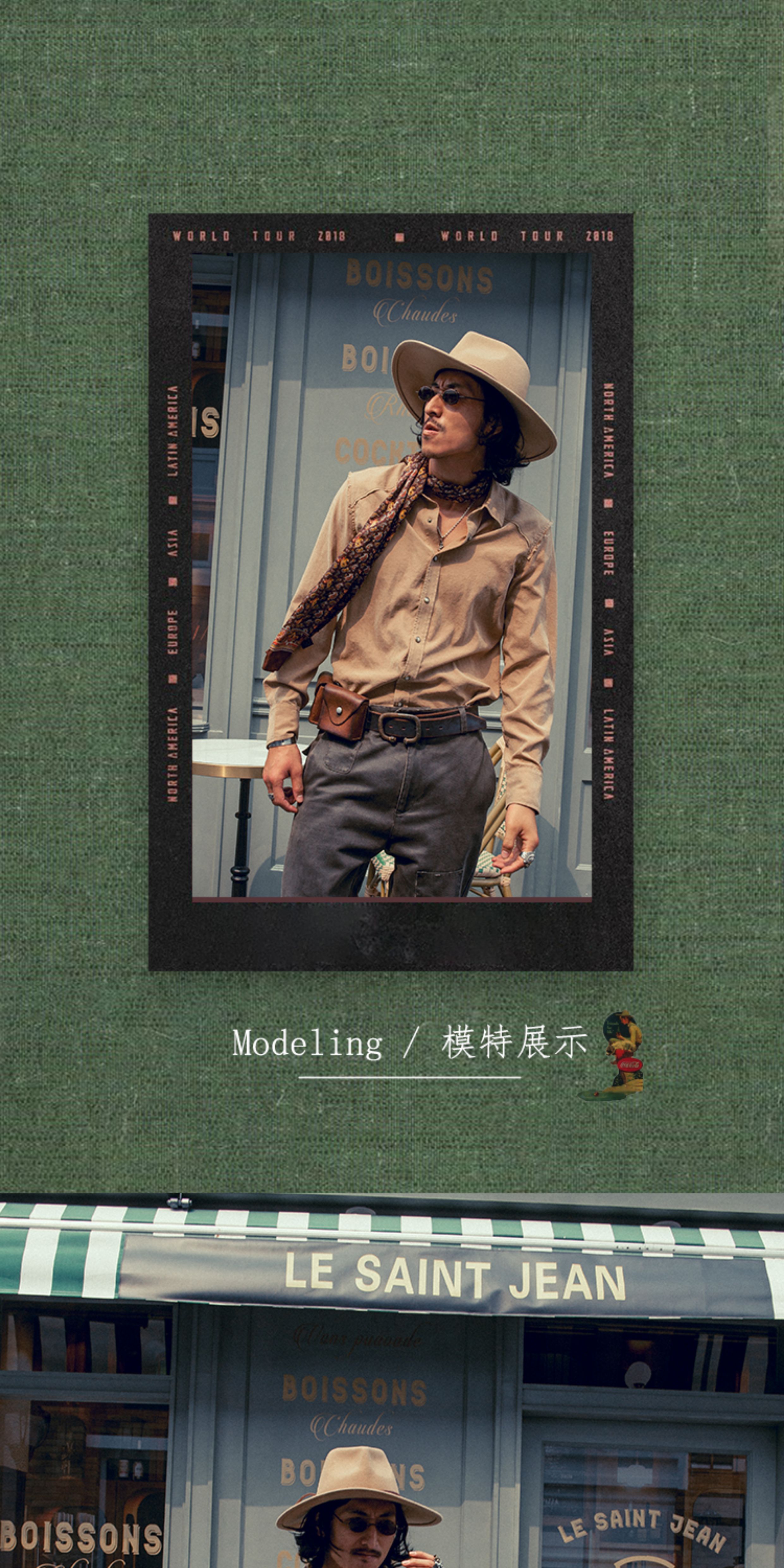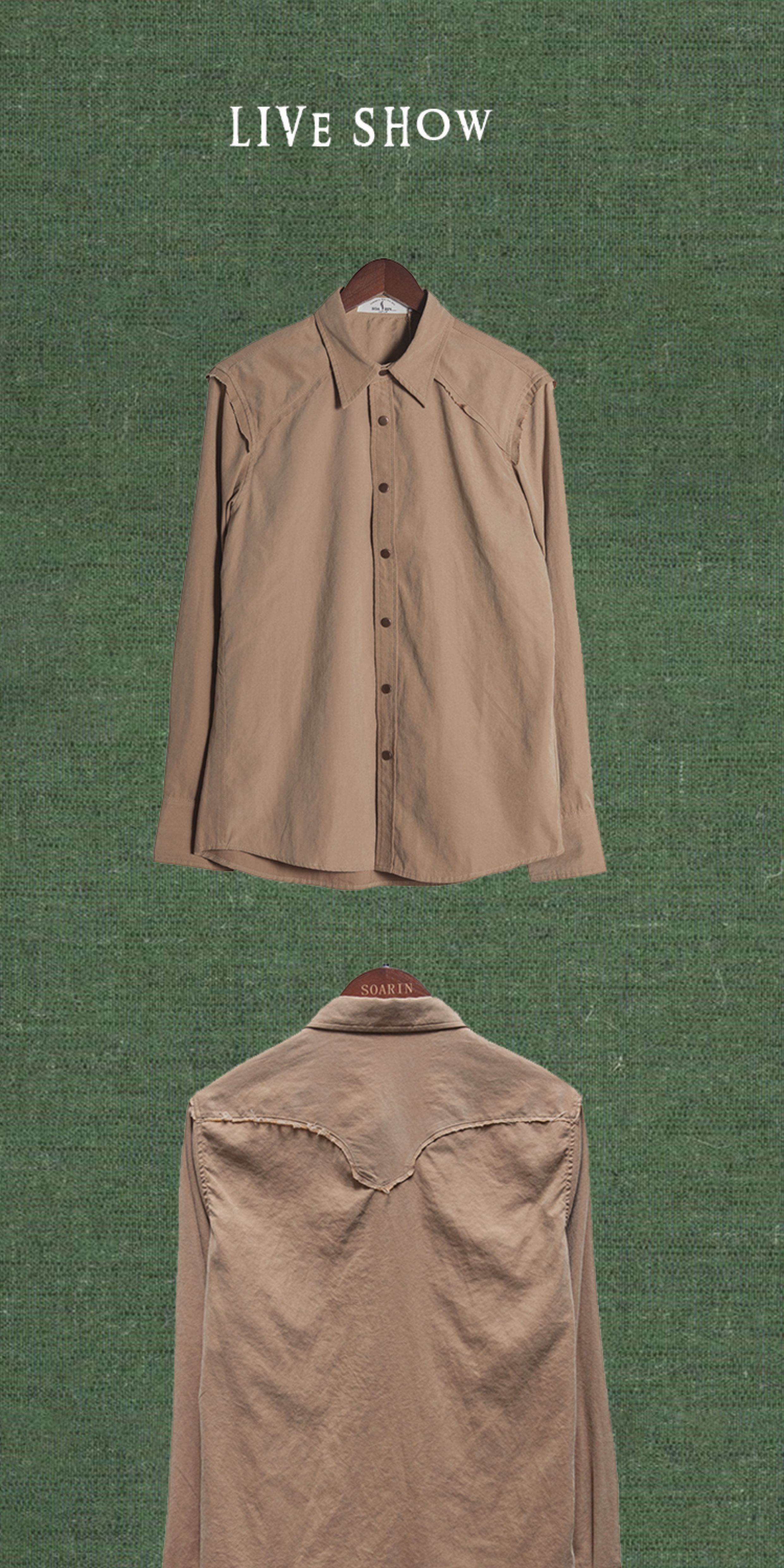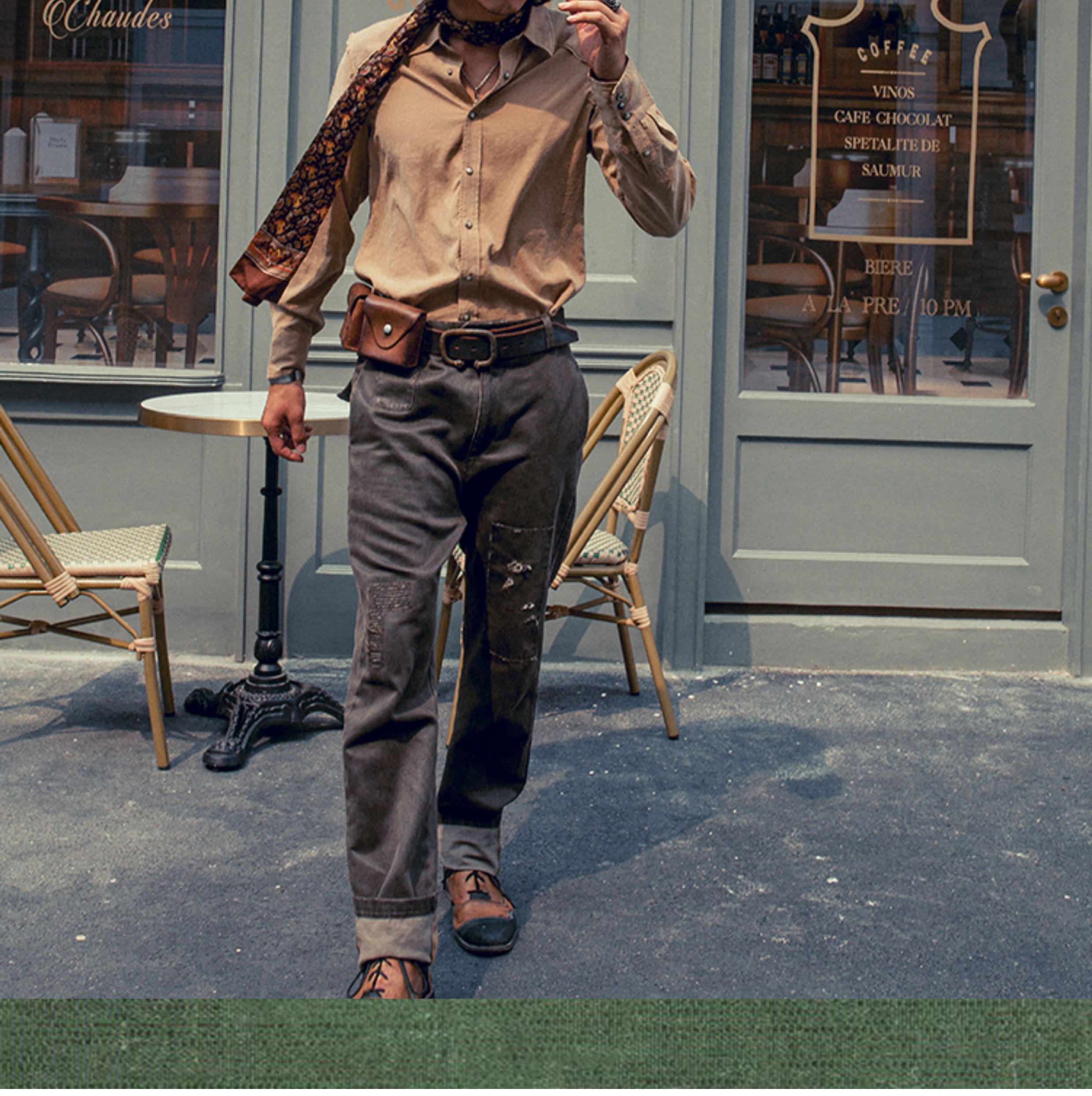SOARIN复古西部风美式工装衬衫男原创设计感雅痞拼接毛边长袖衬衣