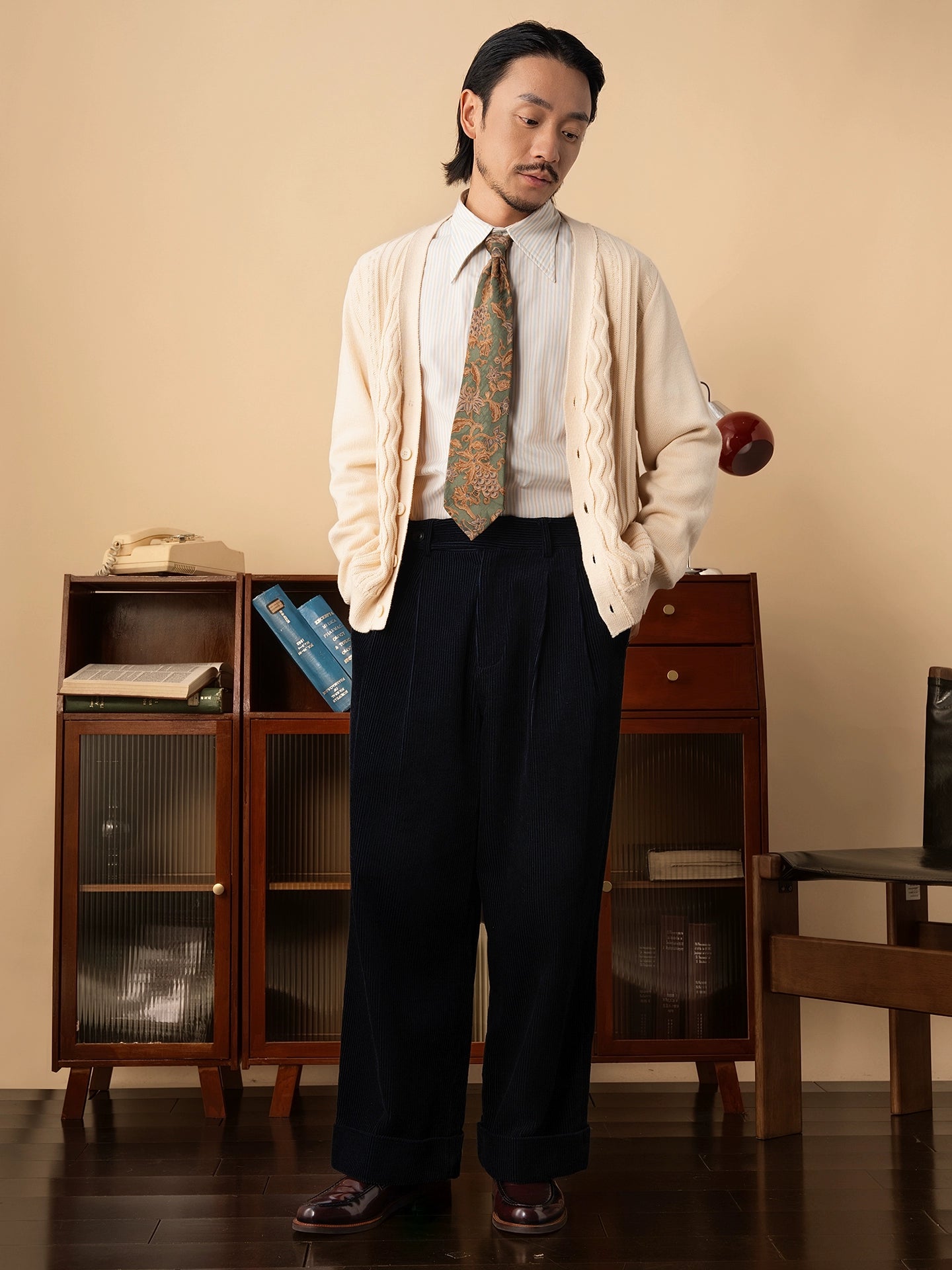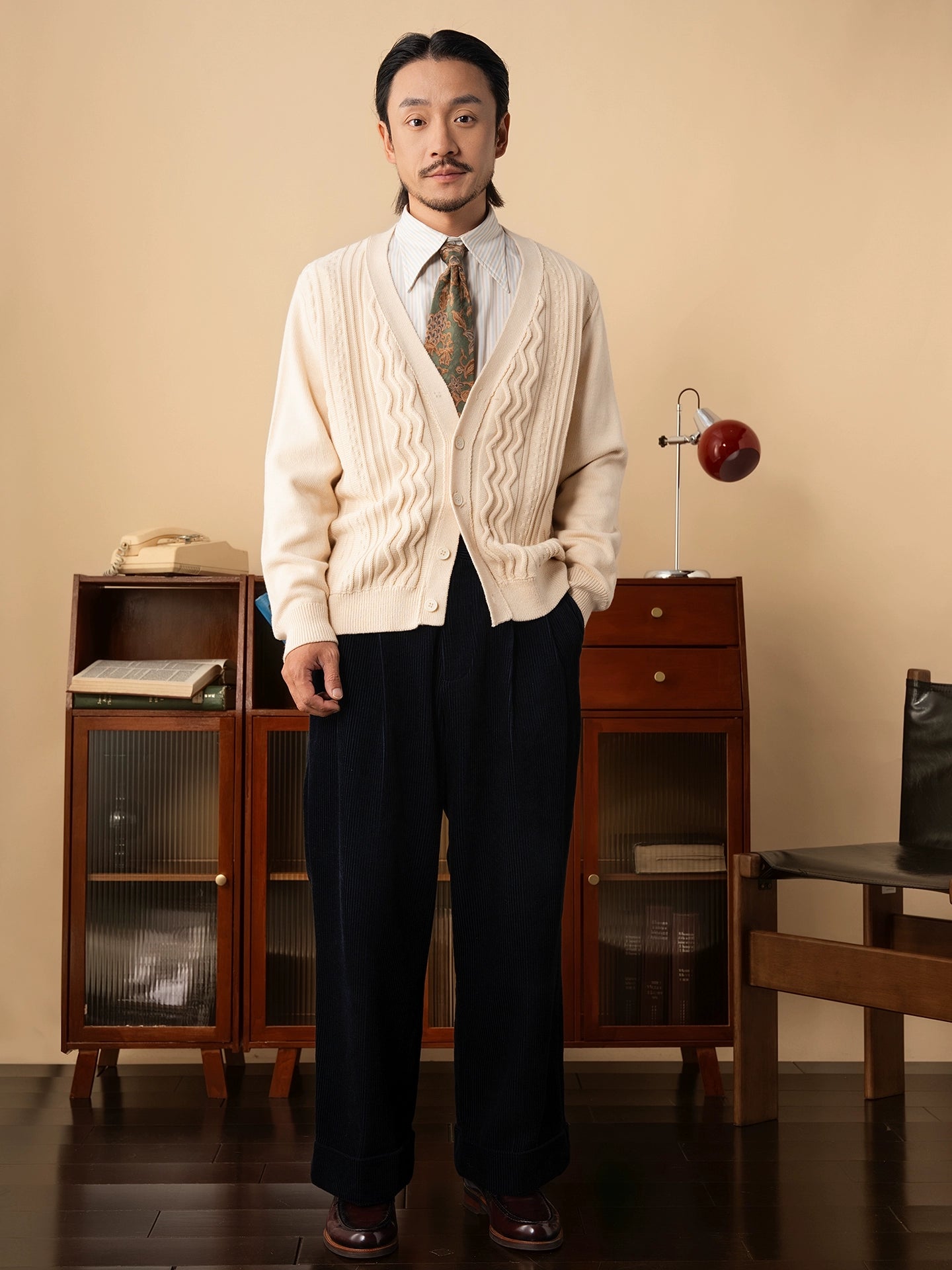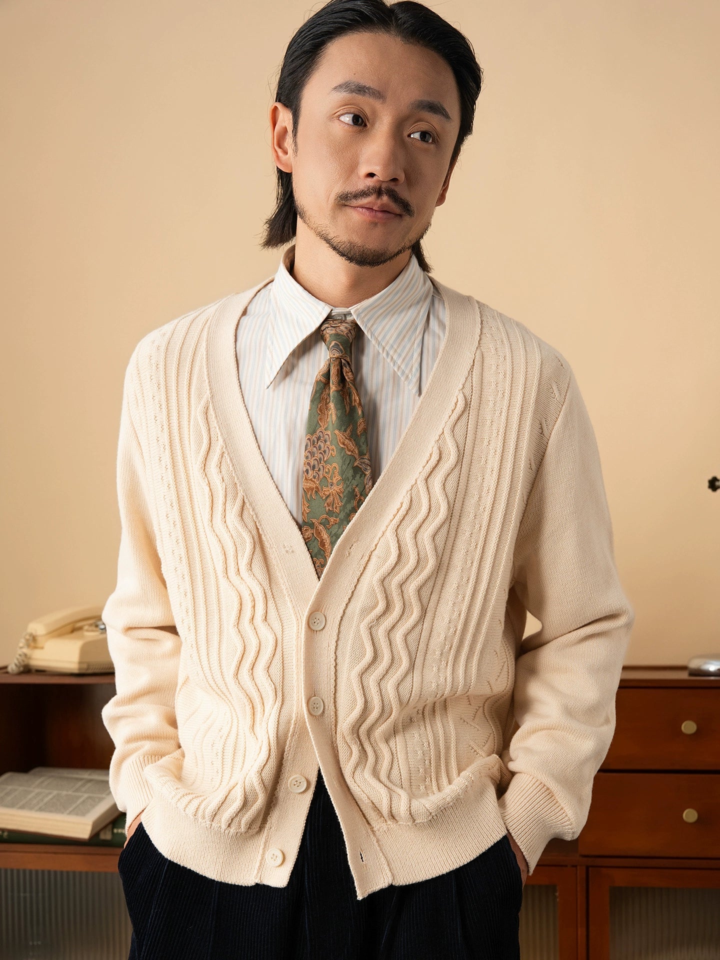 SOARIN意式绅装绞花毛衣男 高级感商务通勤休闲V领针织开衫外套冬