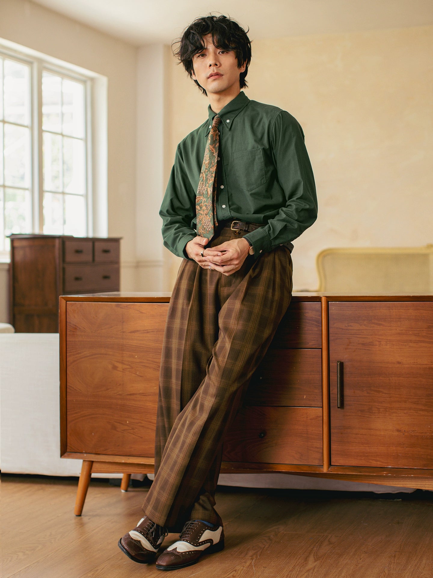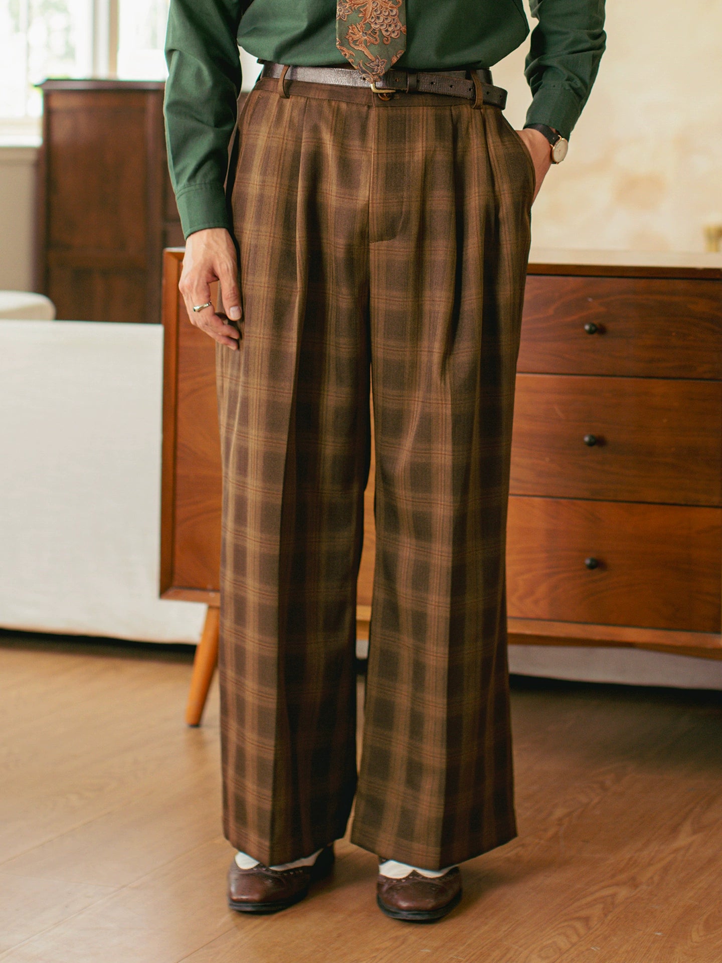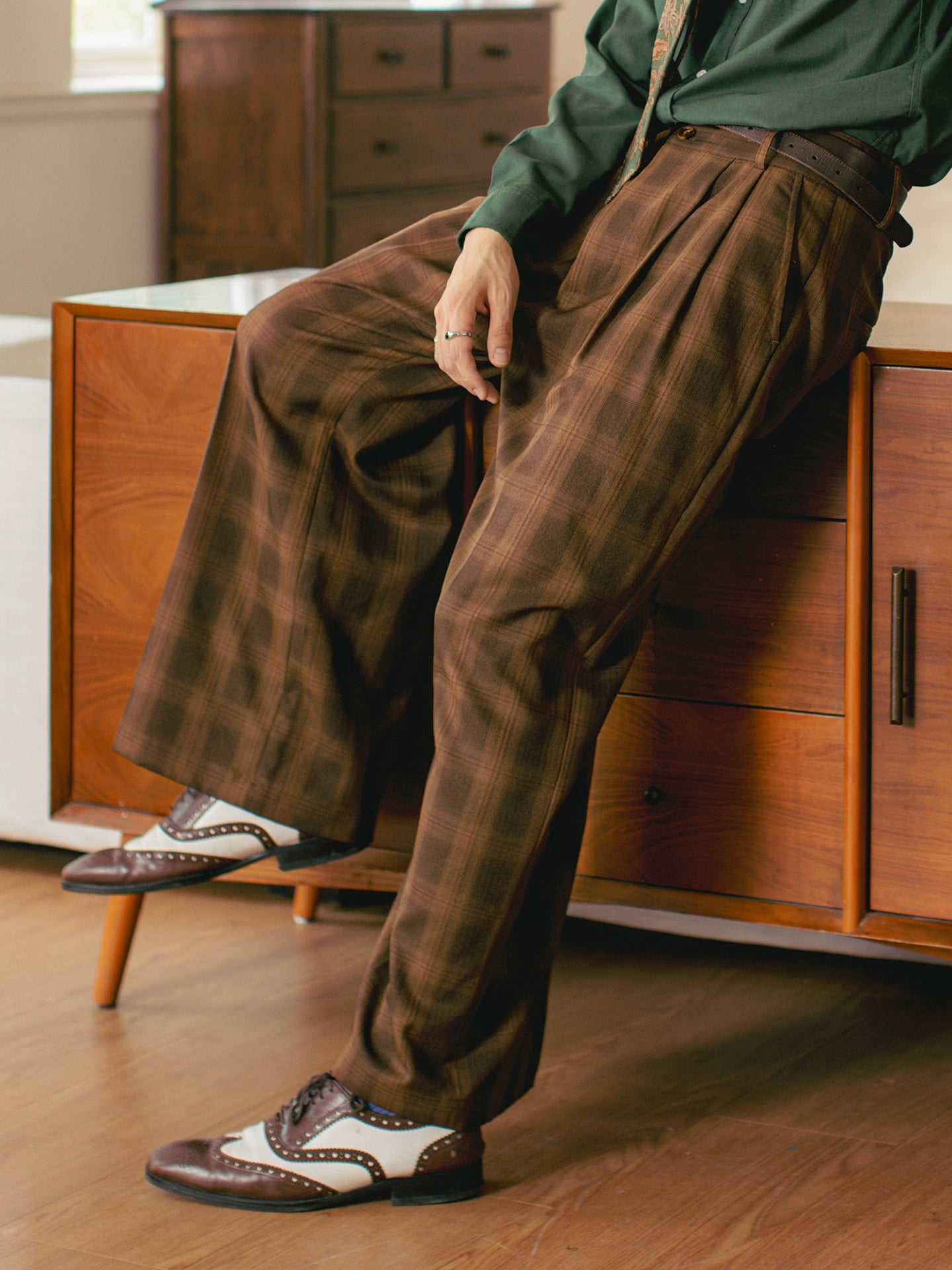 SOARIN意式老钱风大格子休闲裤男 英伦痞帅直筒宽松阔腿休闲西裤