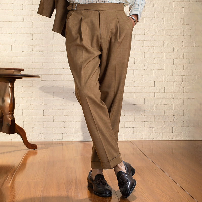 SOARIN意式那不勒斯格子西裤男 复古风商务绅士休闲直筒九分裤子