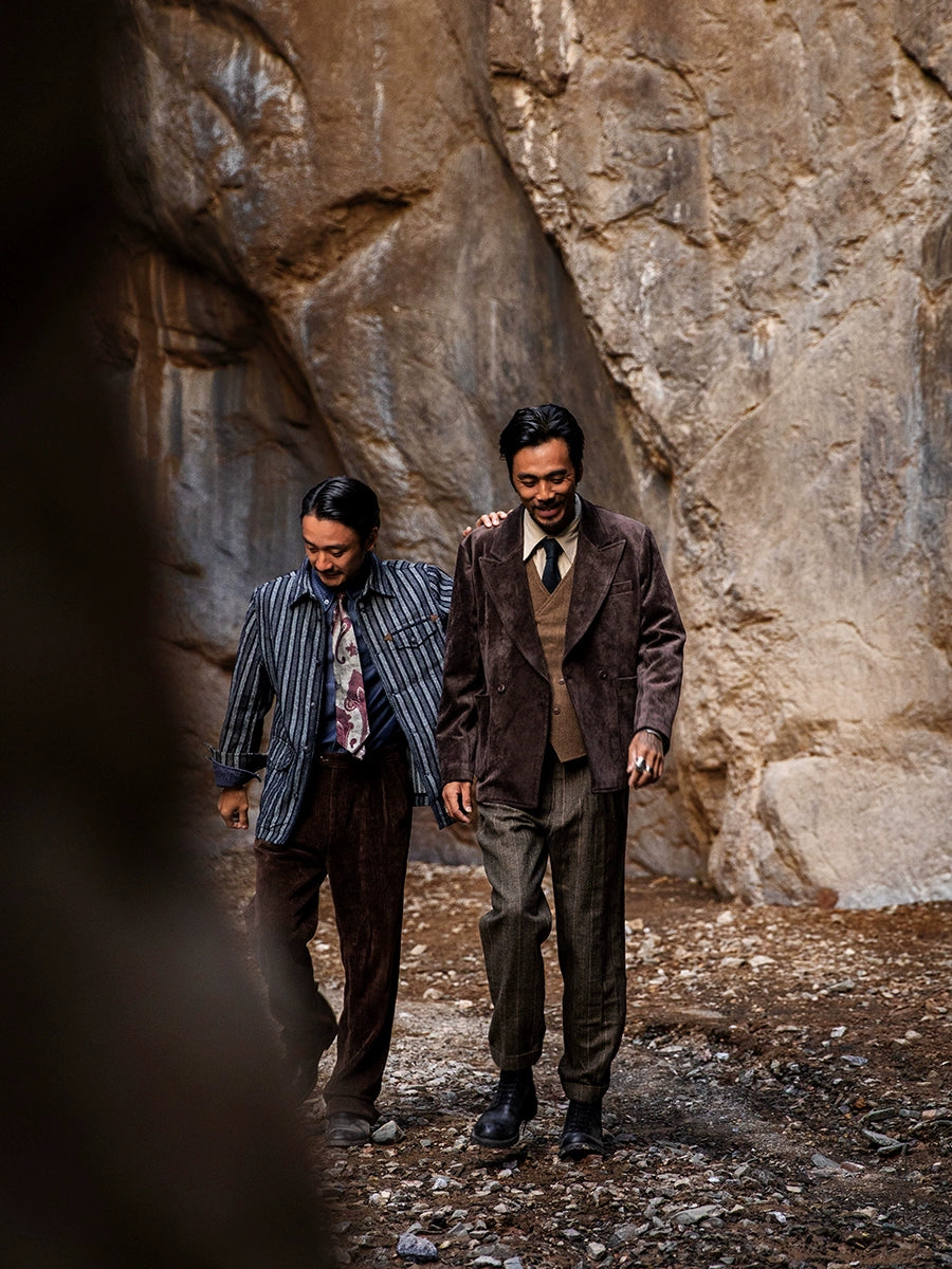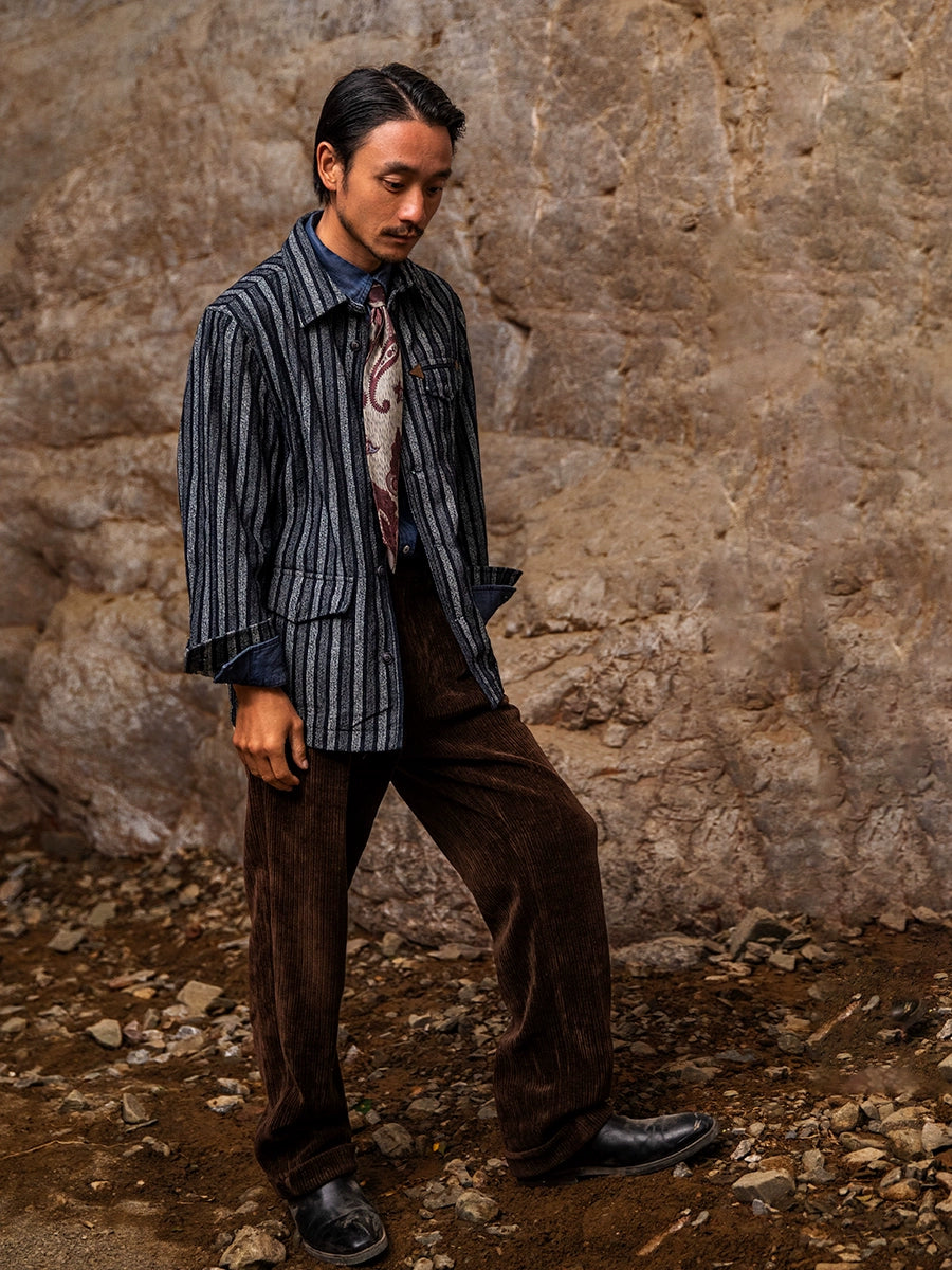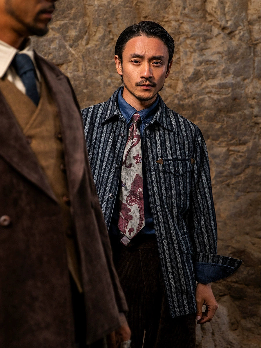 SOARIN美式复古工装夹克男士 阿美咔叽秋冬休闲条纹翻领外套上衣
