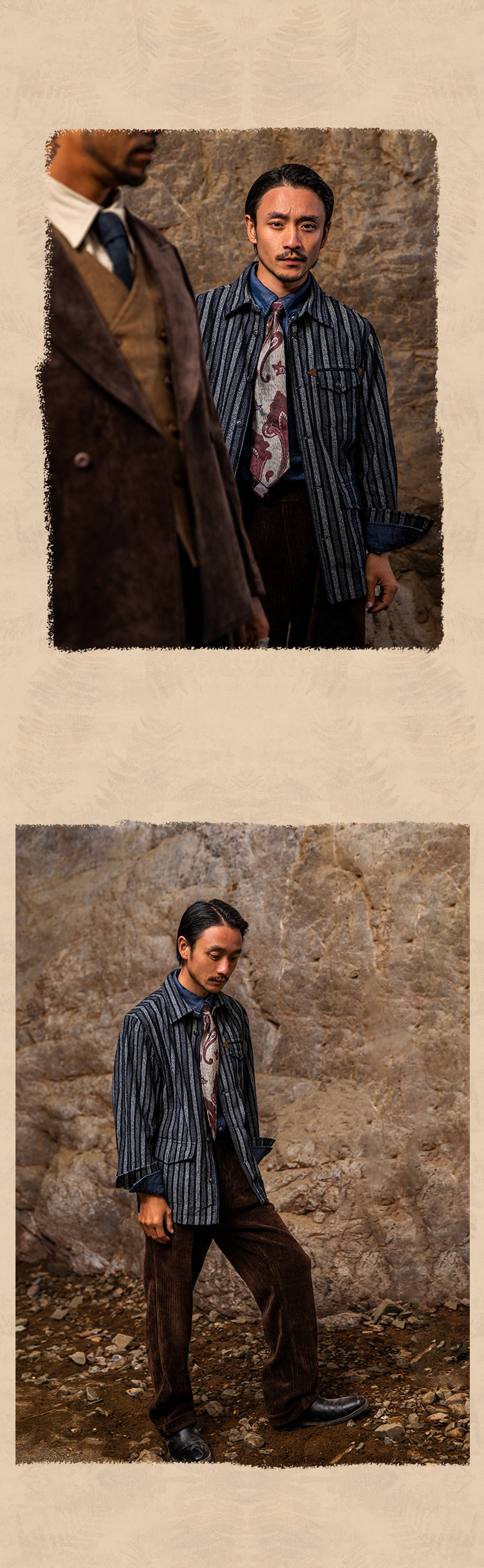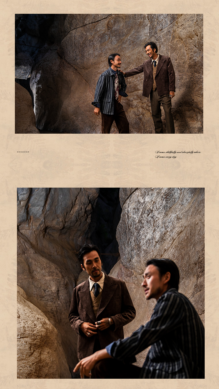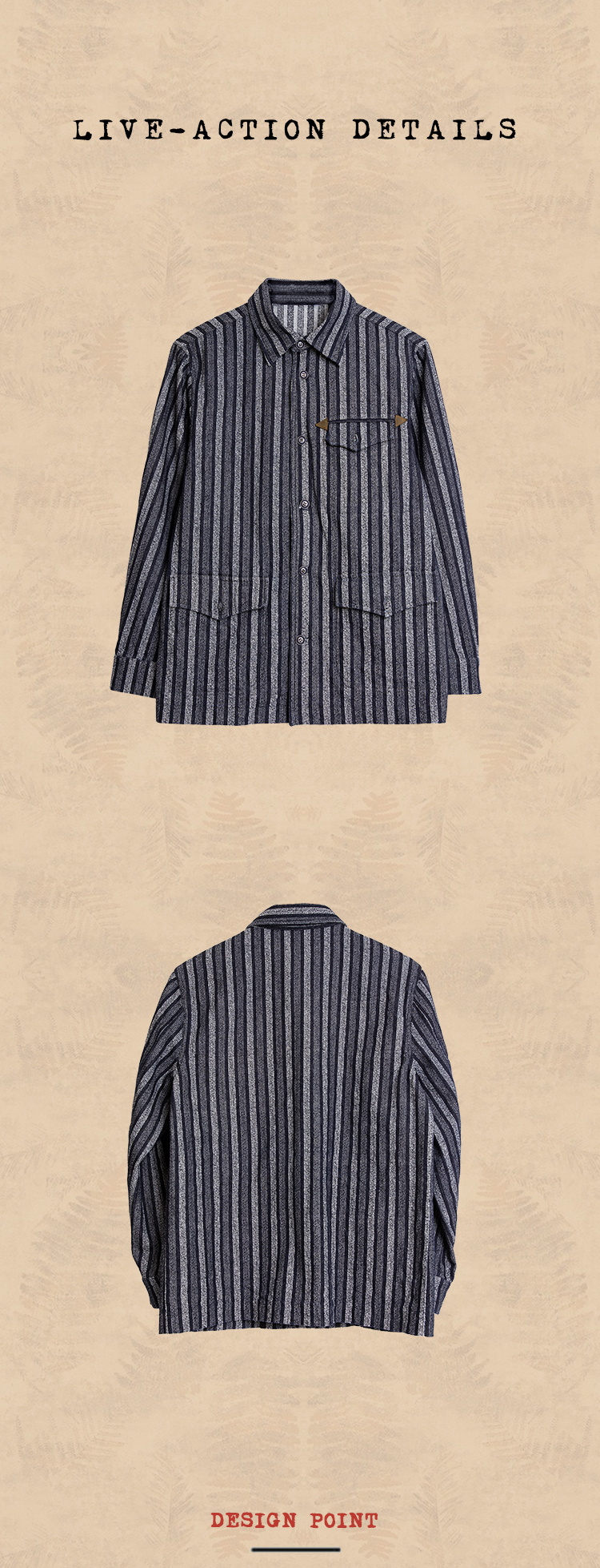 SOARIN美式复古工装夹克男士 阿美咔叽秋冬休闲条纹翻领外套上衣