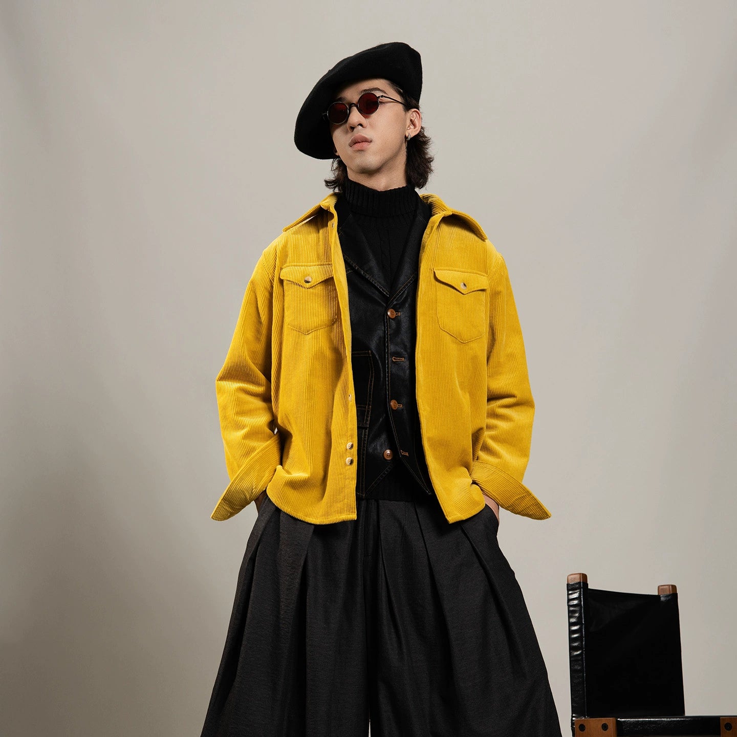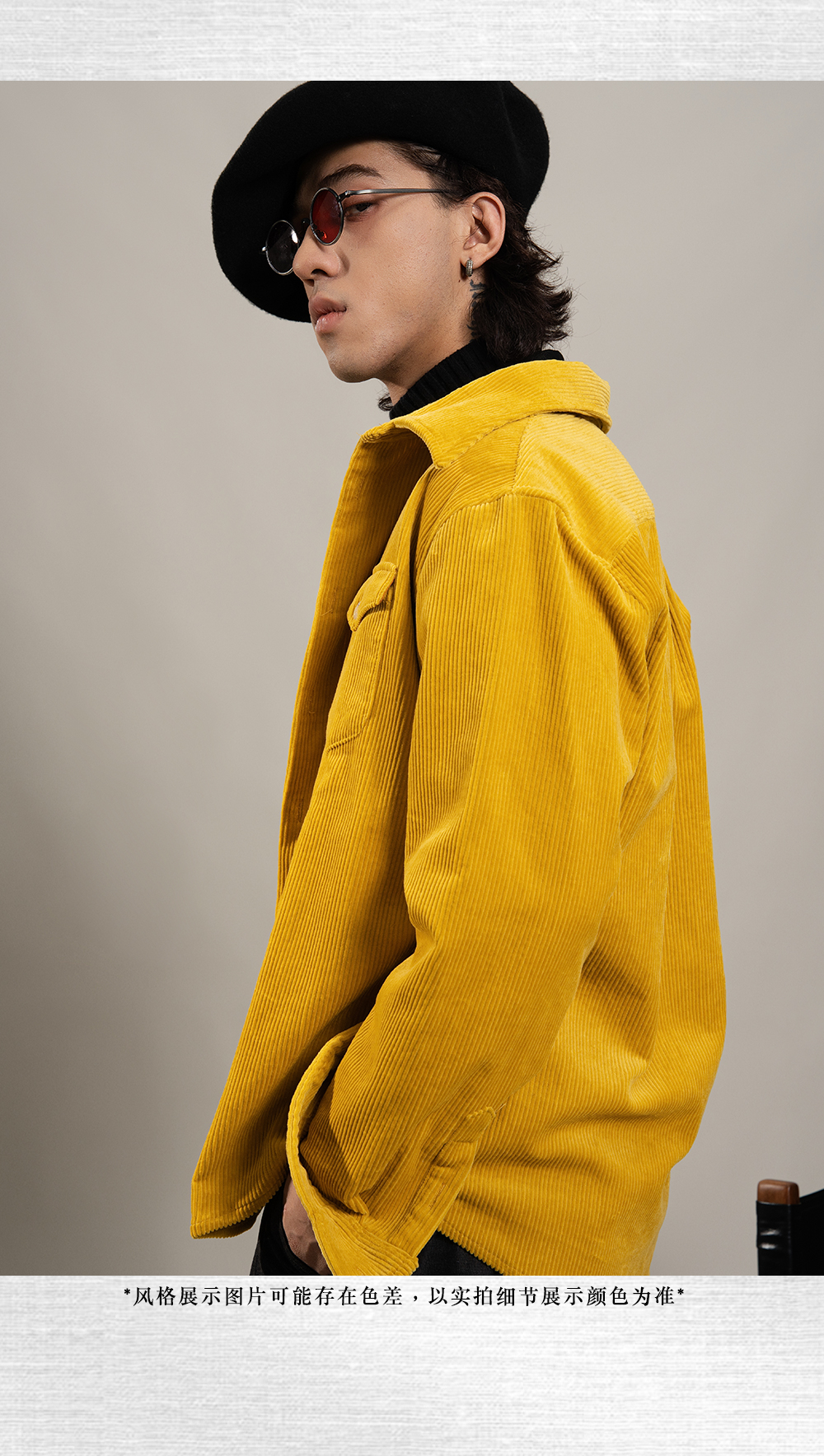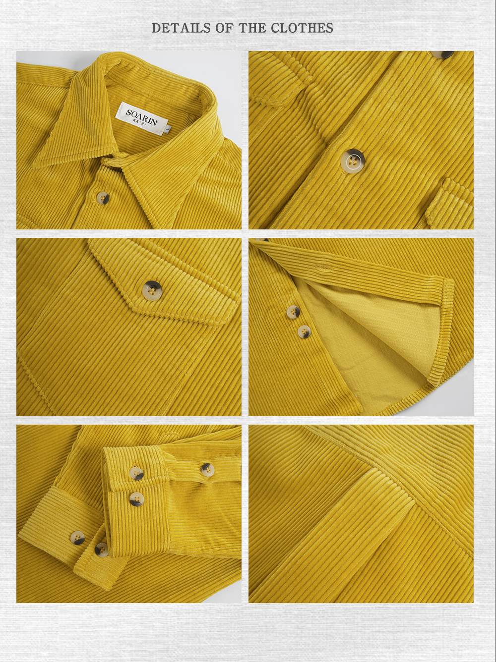 SOARIN美式复古巴恩风灯芯绒长袖衬衫男 冬季双口袋工装外套衬衣