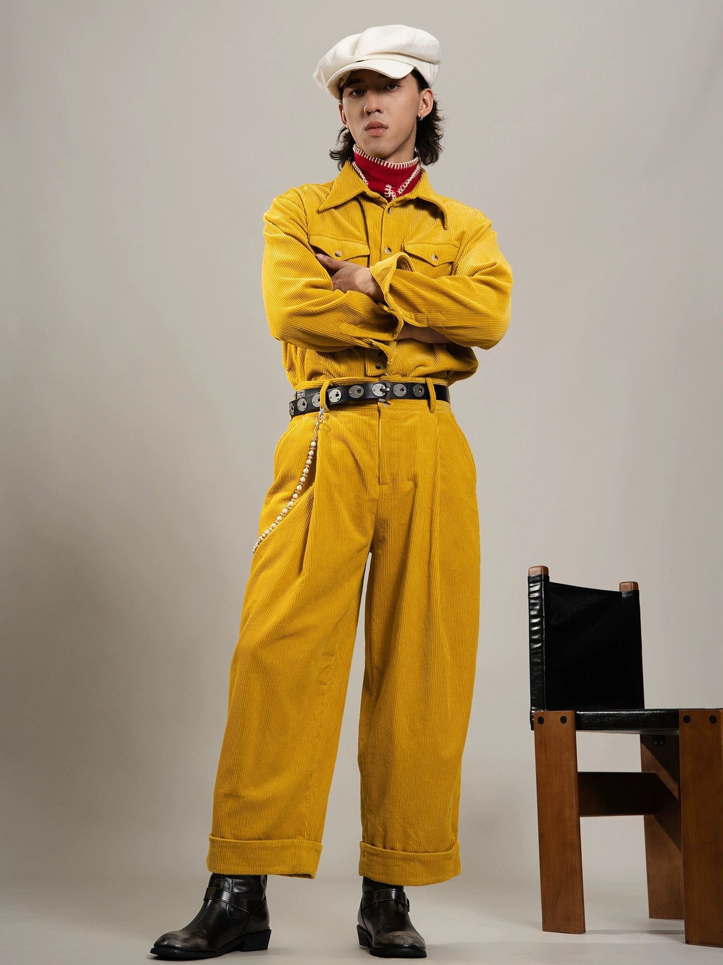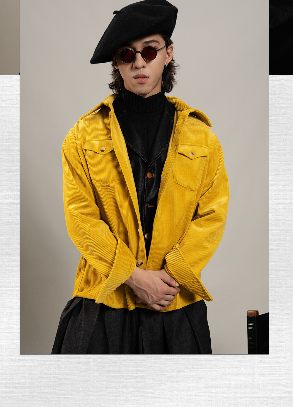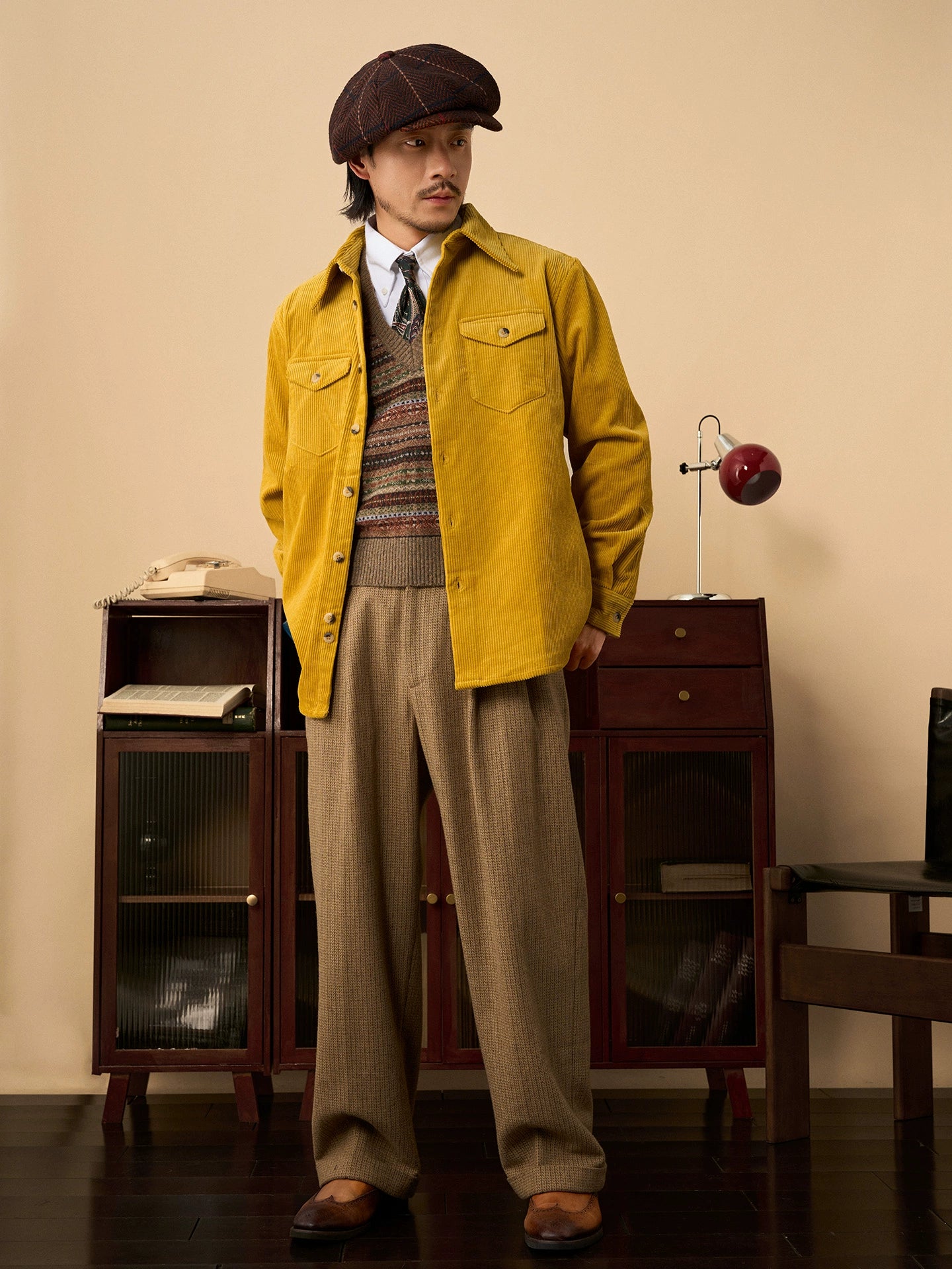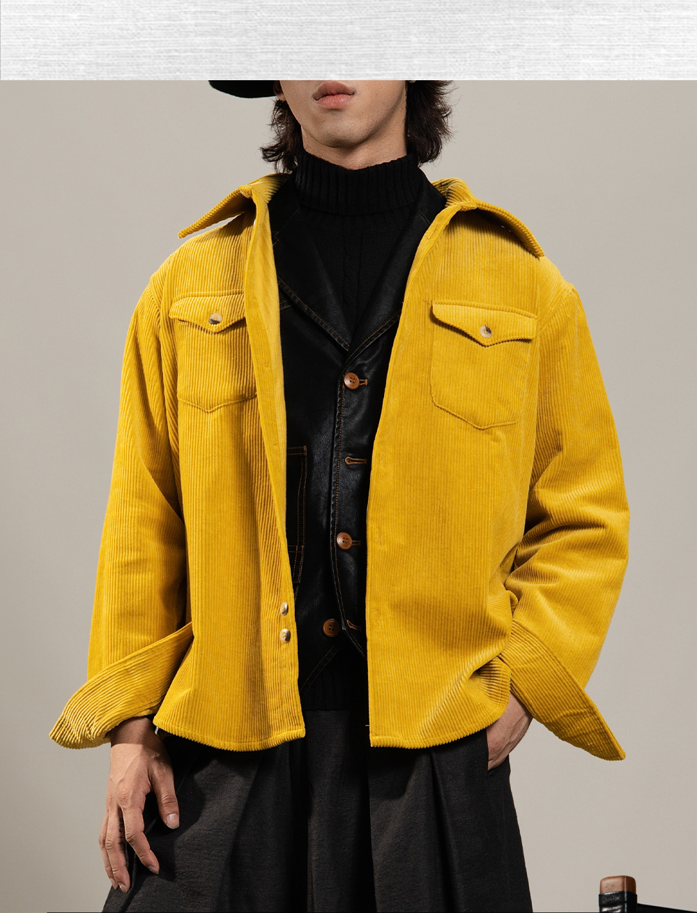 SOARIN美式复古巴恩风灯芯绒长袖衬衫男 冬季双口袋工装外套衬衣