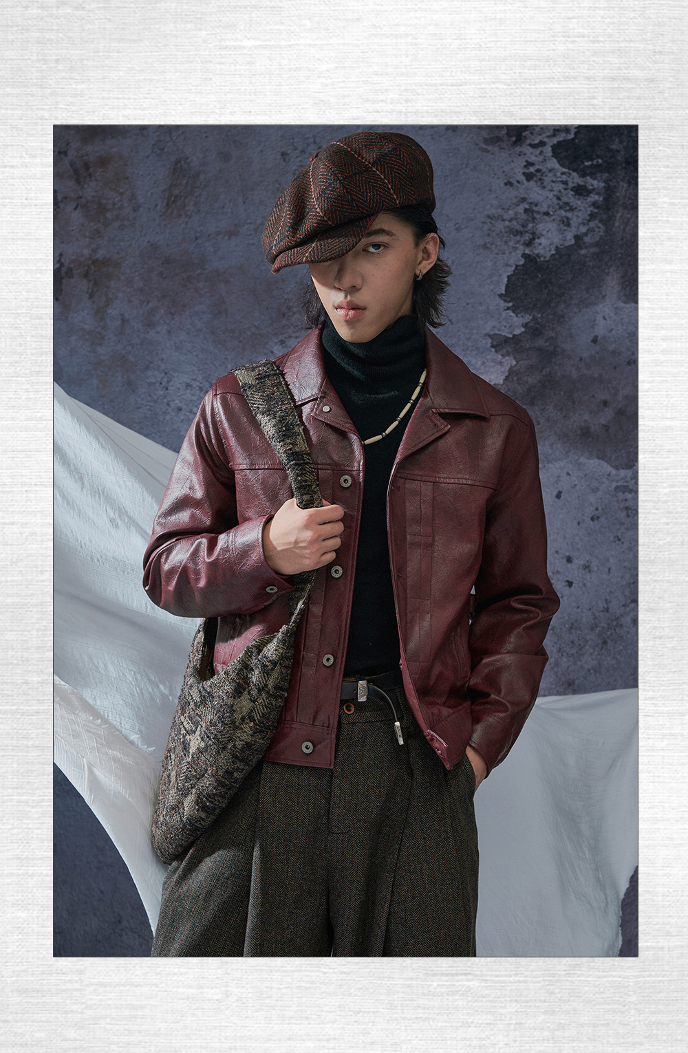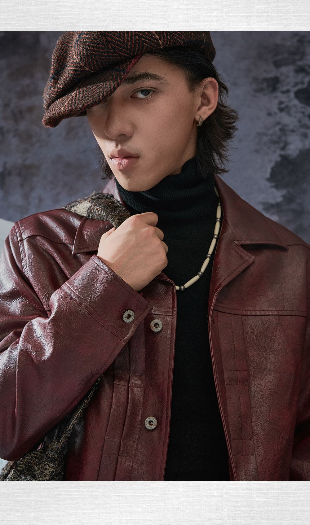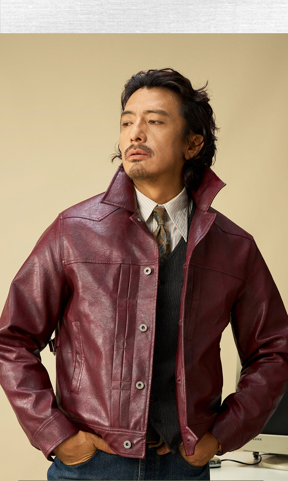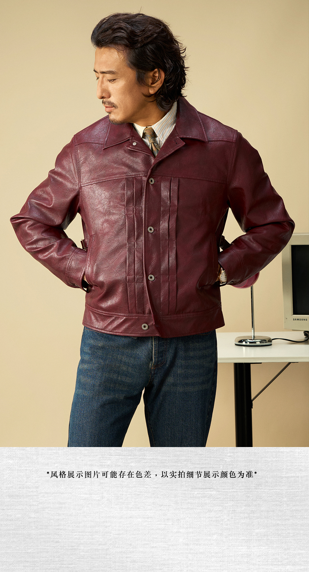 SOARIN美式复古机车风皮衣夹克 阿美咔叽休闲翻领飞行员短款外套