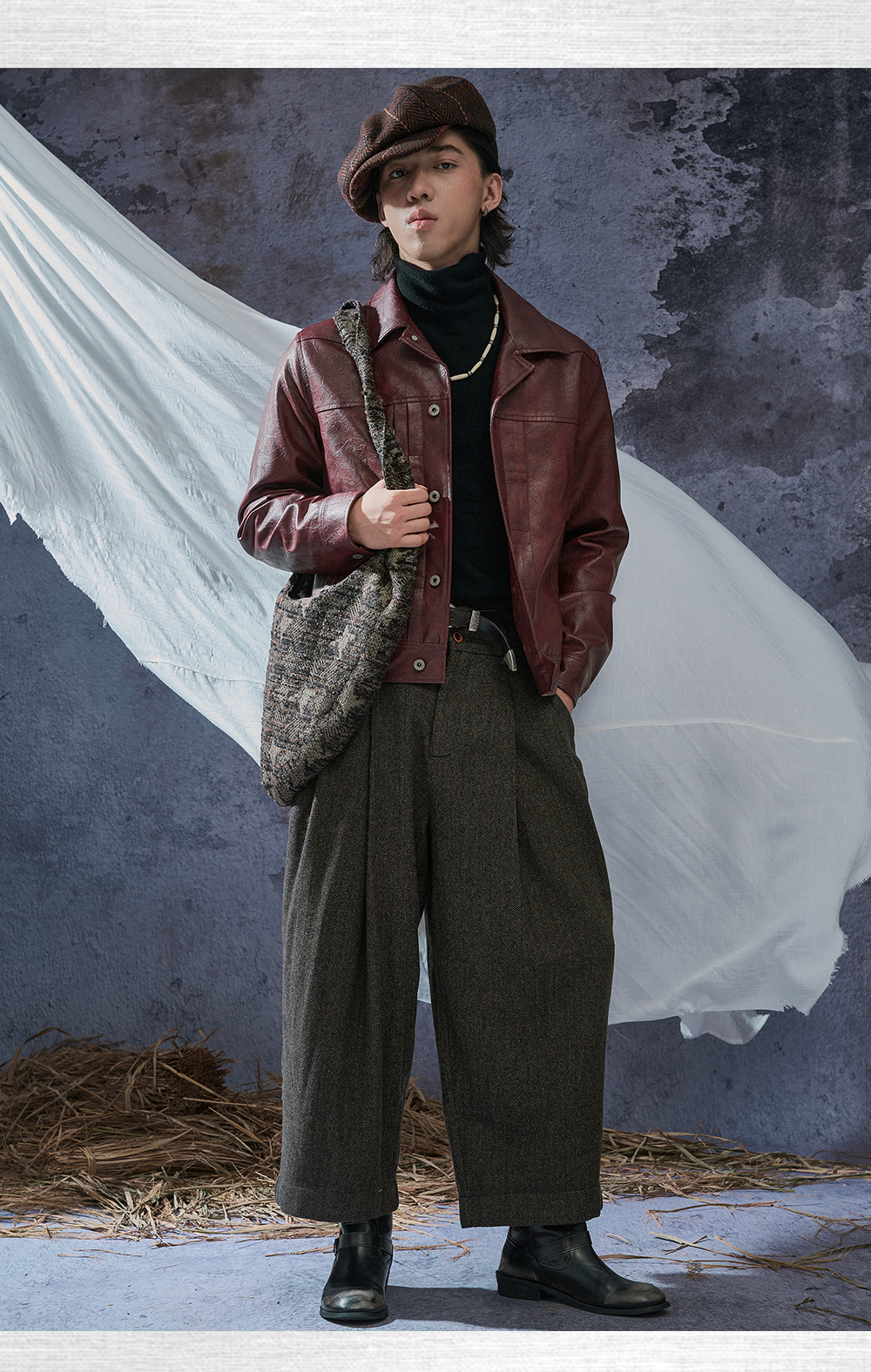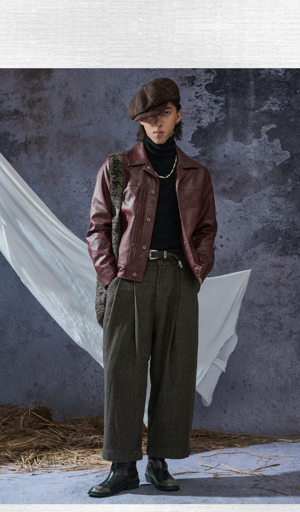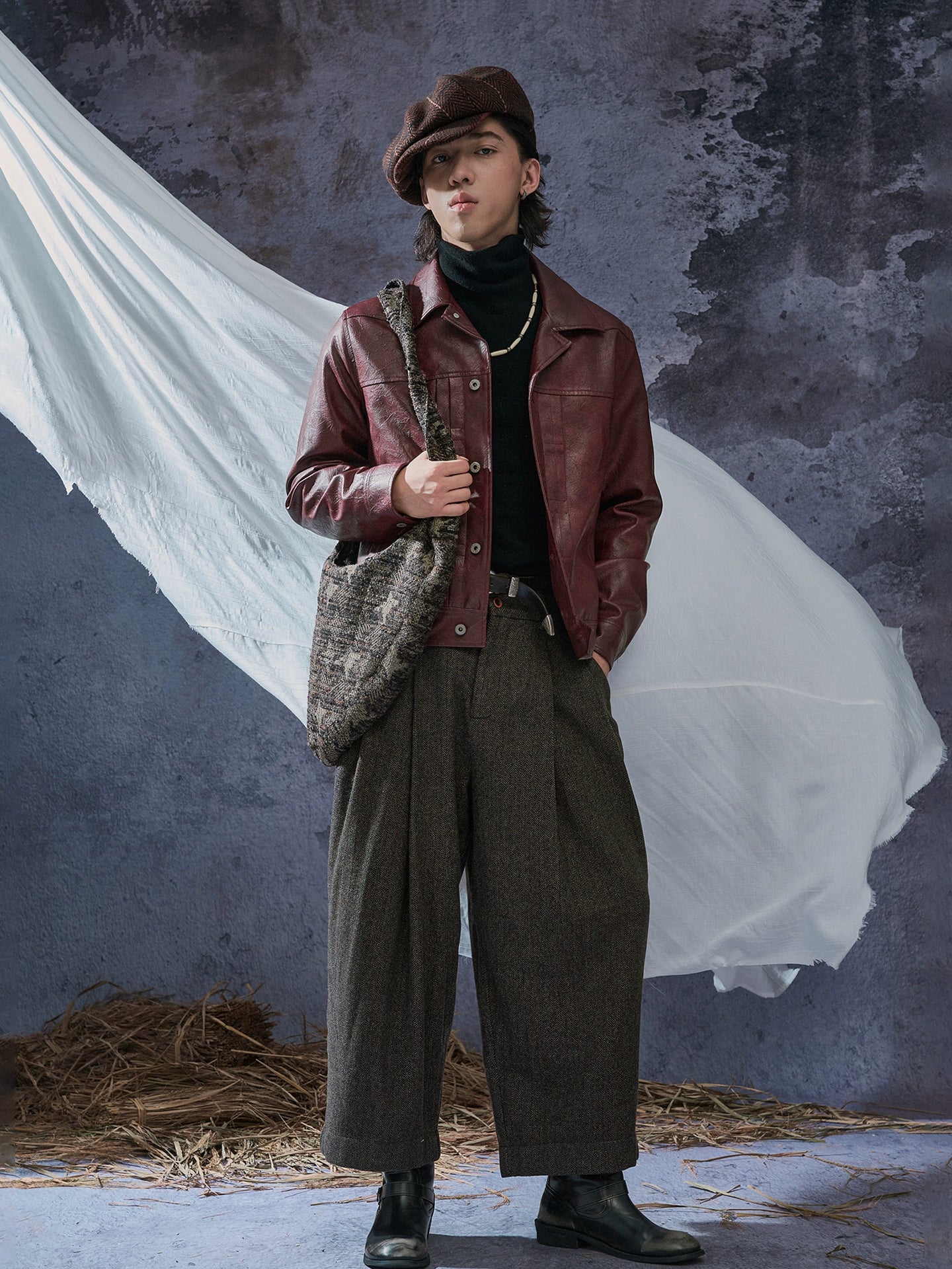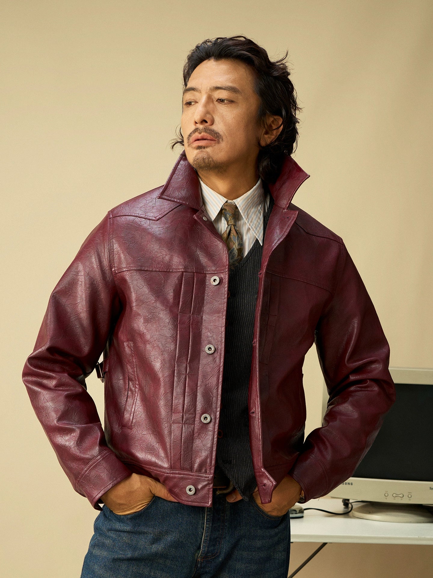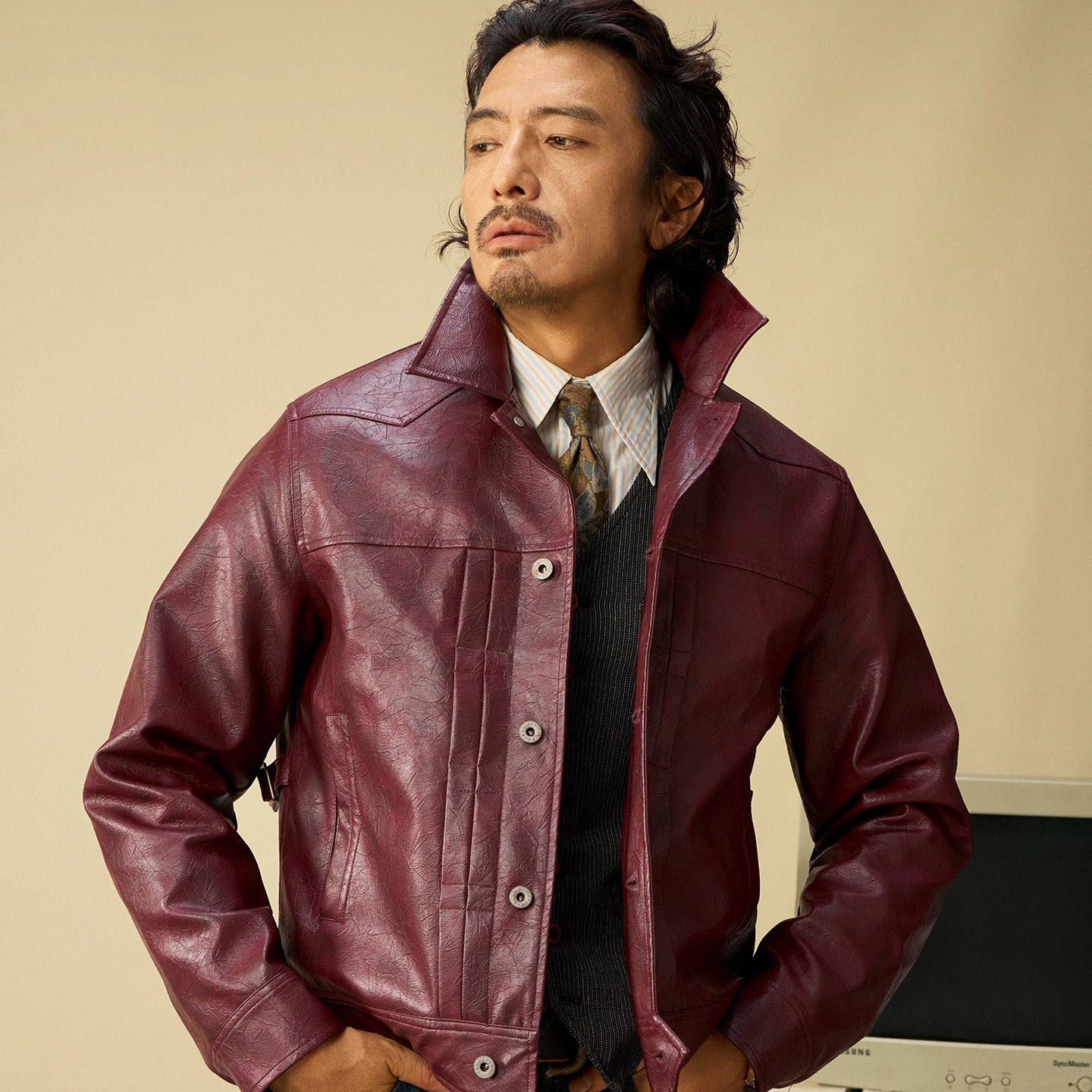 SOARIN美式复古机车风皮衣夹克 阿美咔叽休闲翻领飞行员短款外套