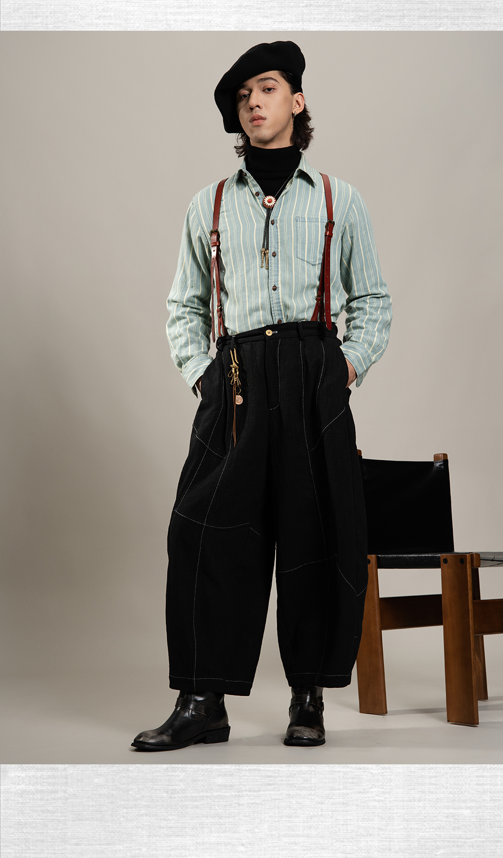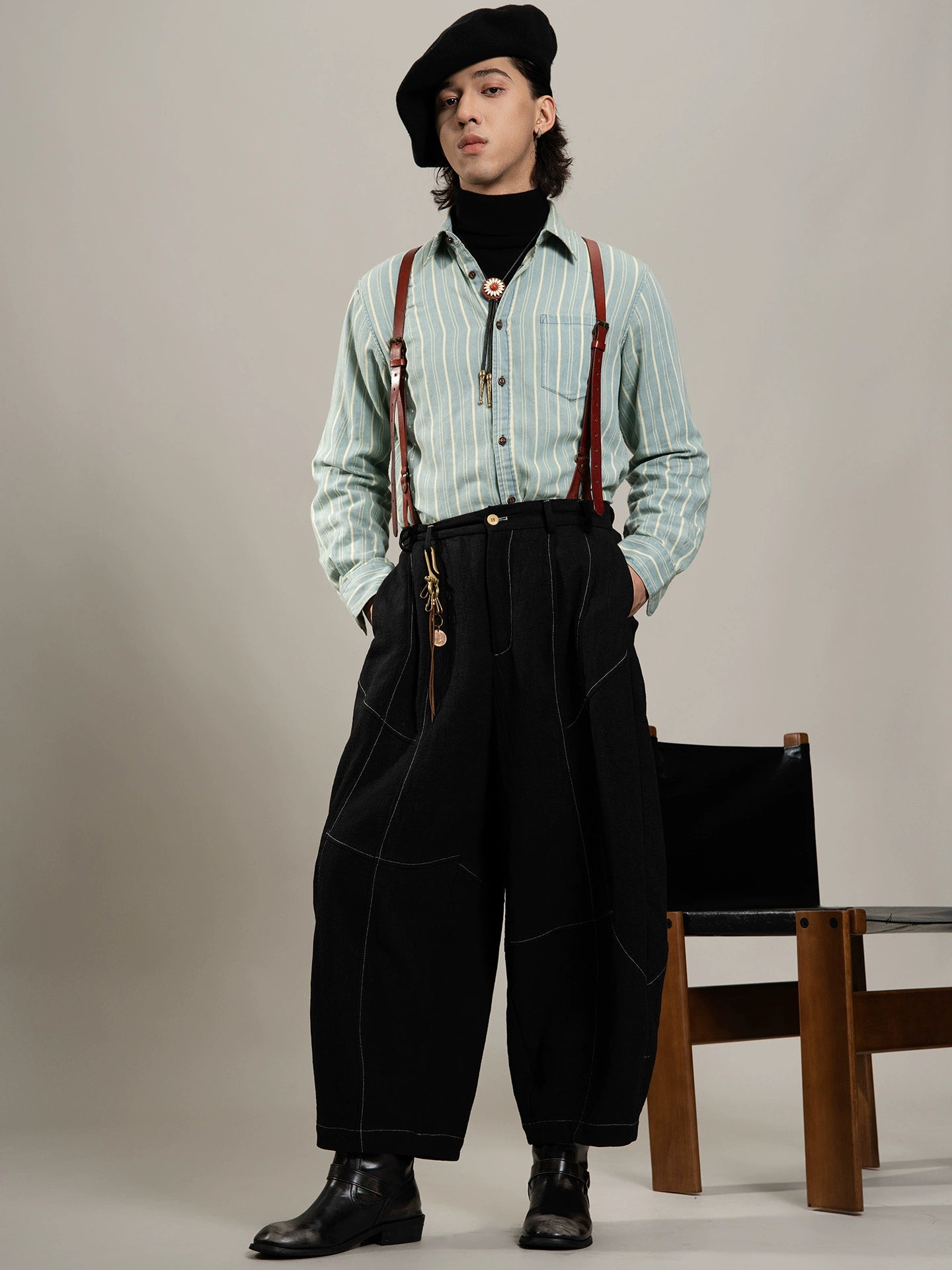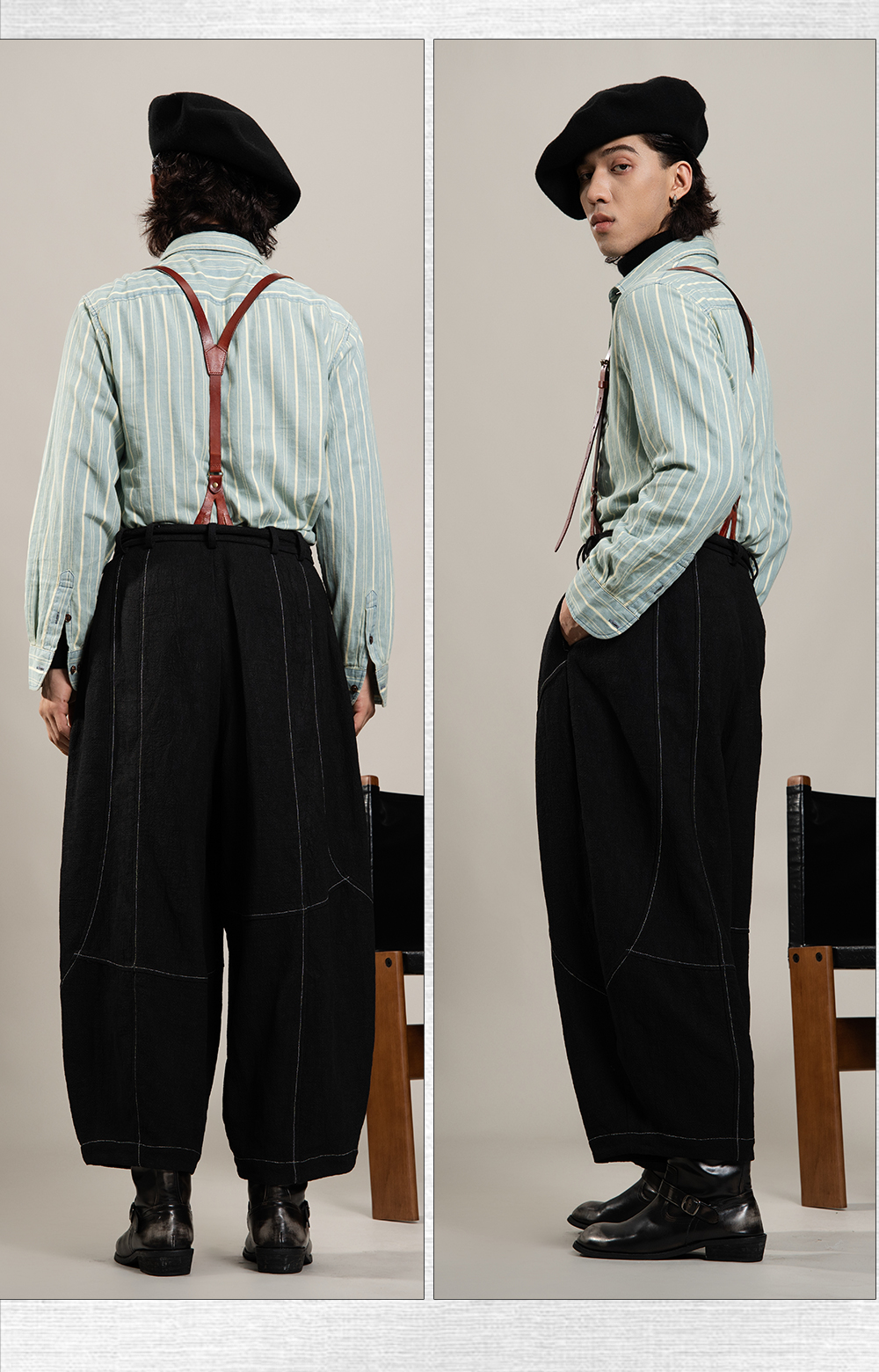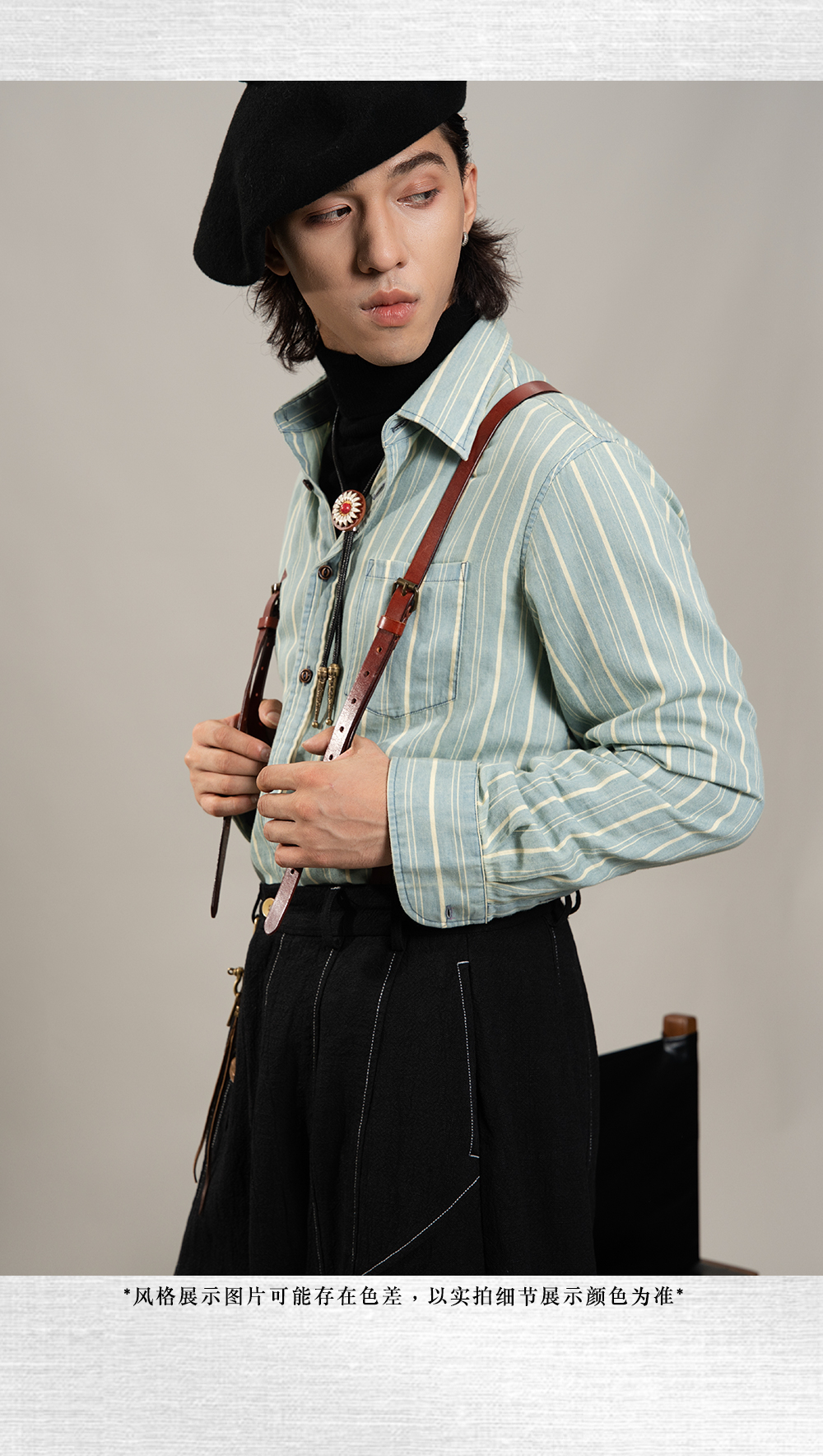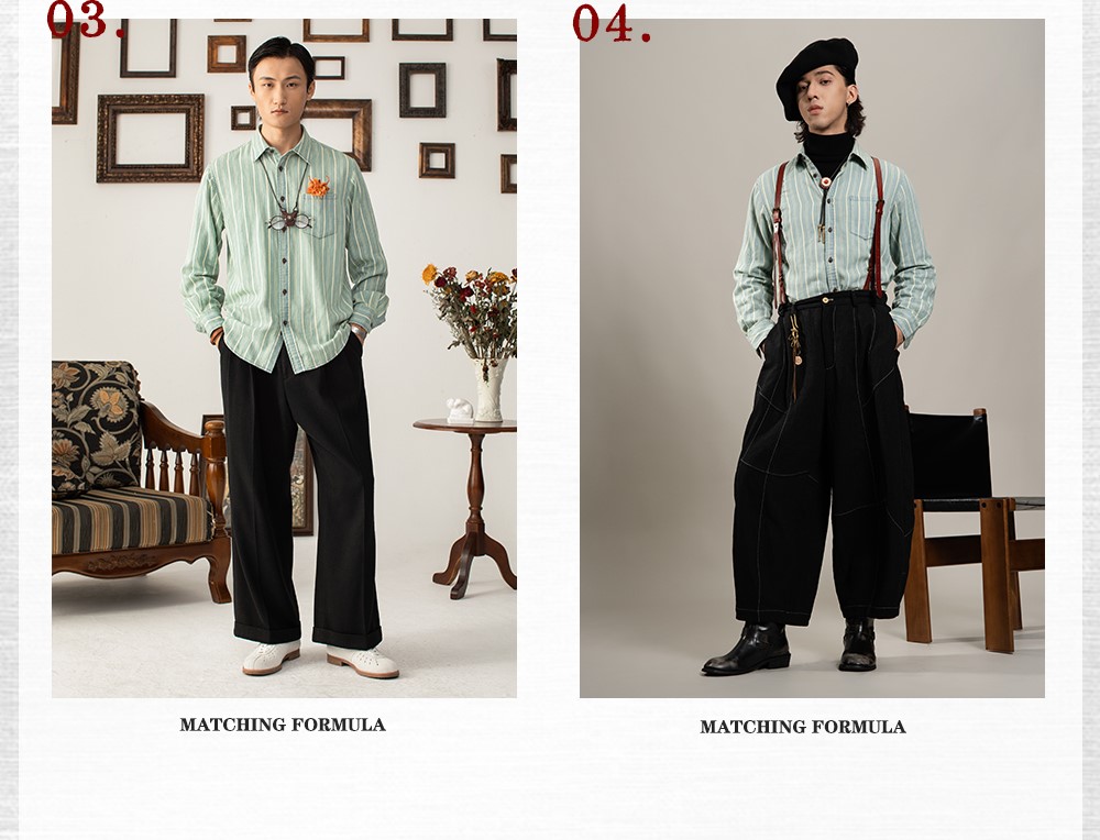 SOARIN美式复古条纹长袖衬衫男 vintage痞帅商务休闲纯棉西装衬衣