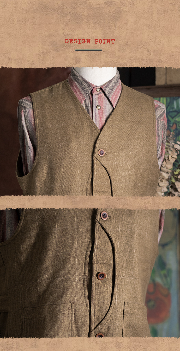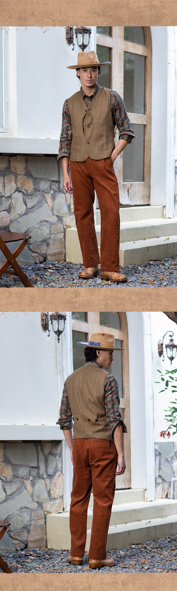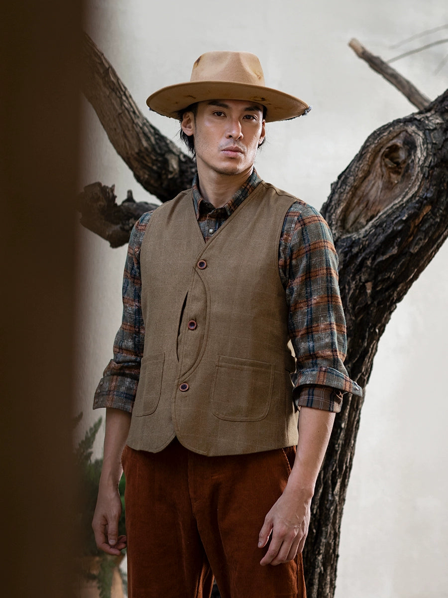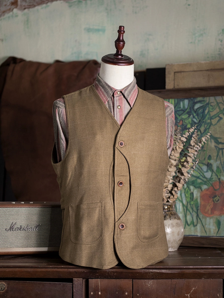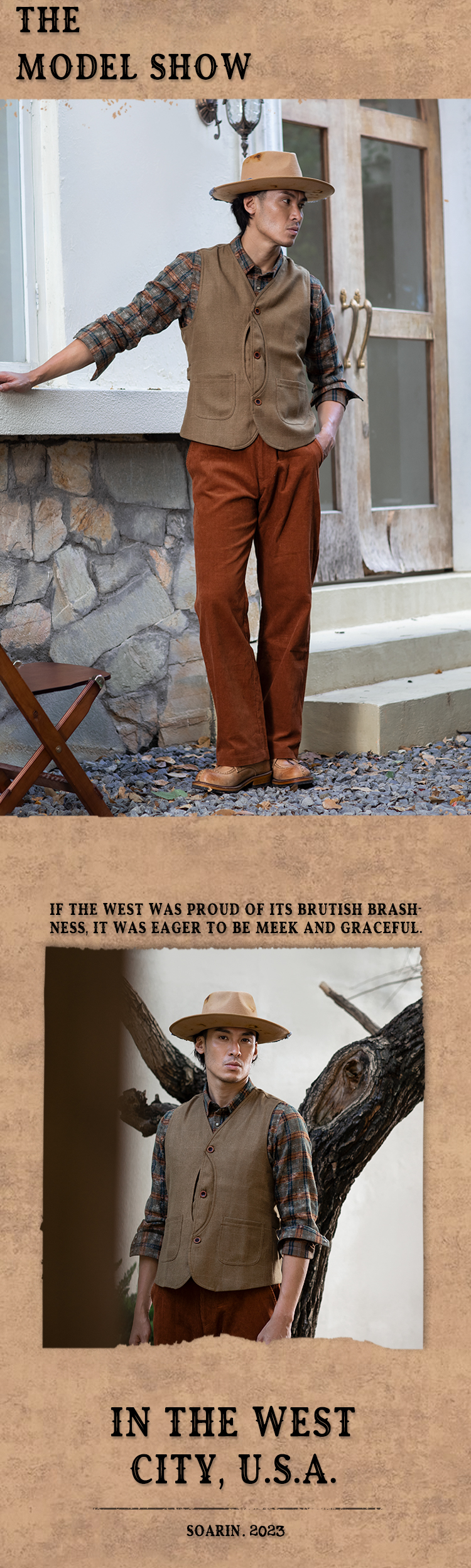 SOARIN美式复古格子马甲背心男 阿美咔叽休闲工装格纹西装马夹冬