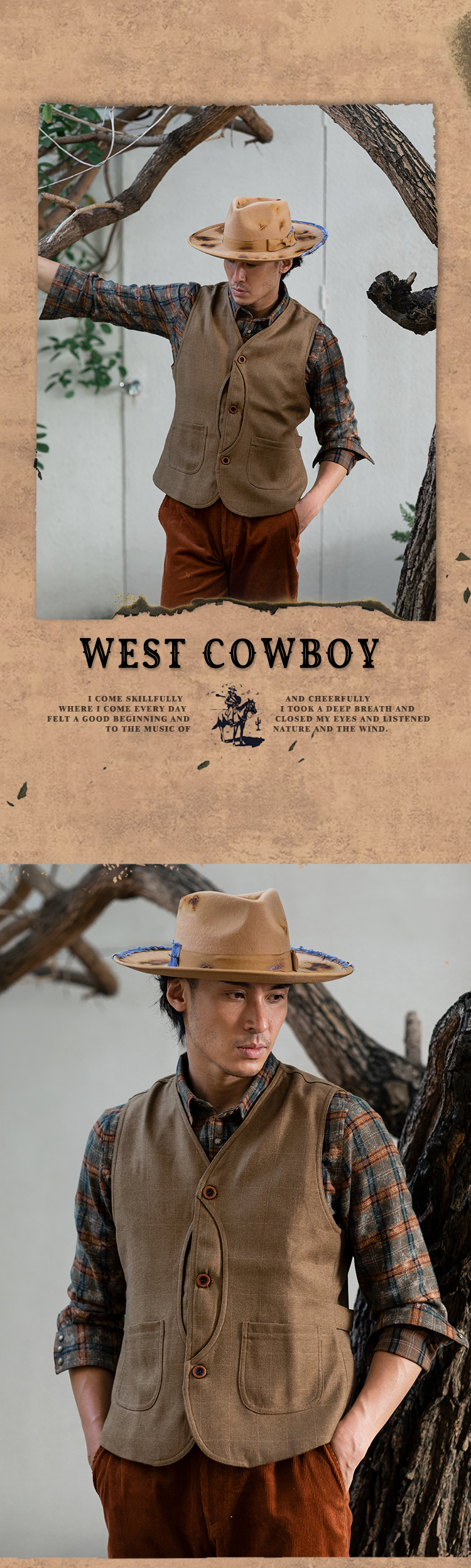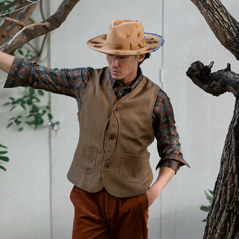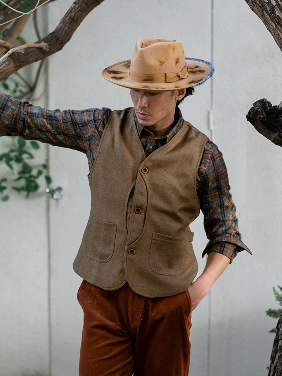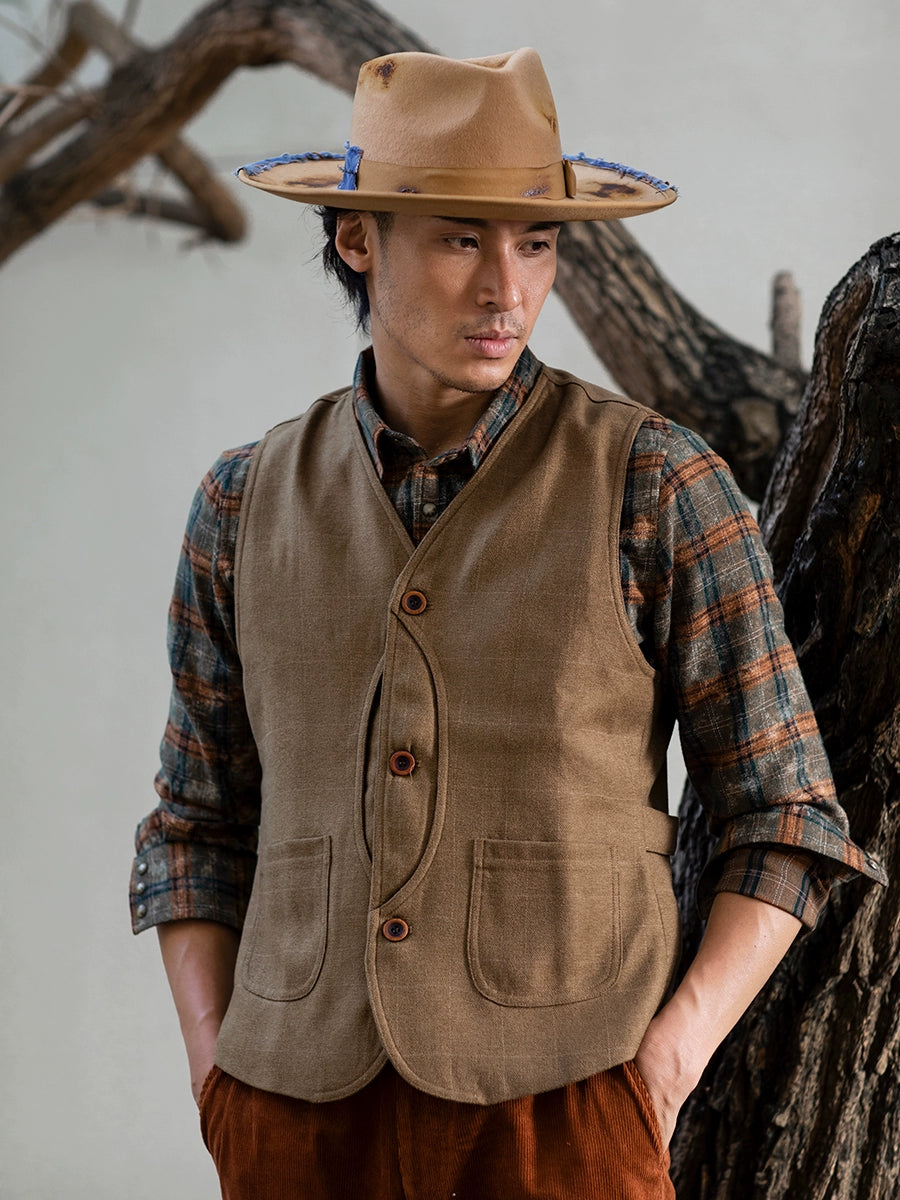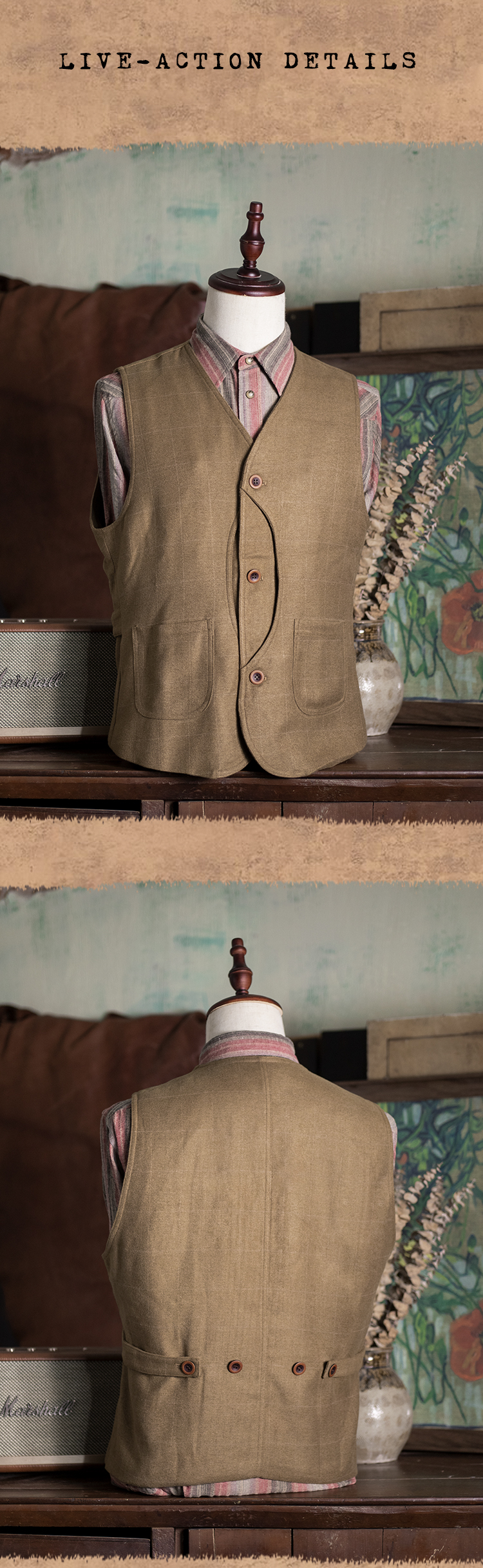 SOARIN美式复古格子马甲背心男 阿美咔叽休闲工装格纹西装马夹冬