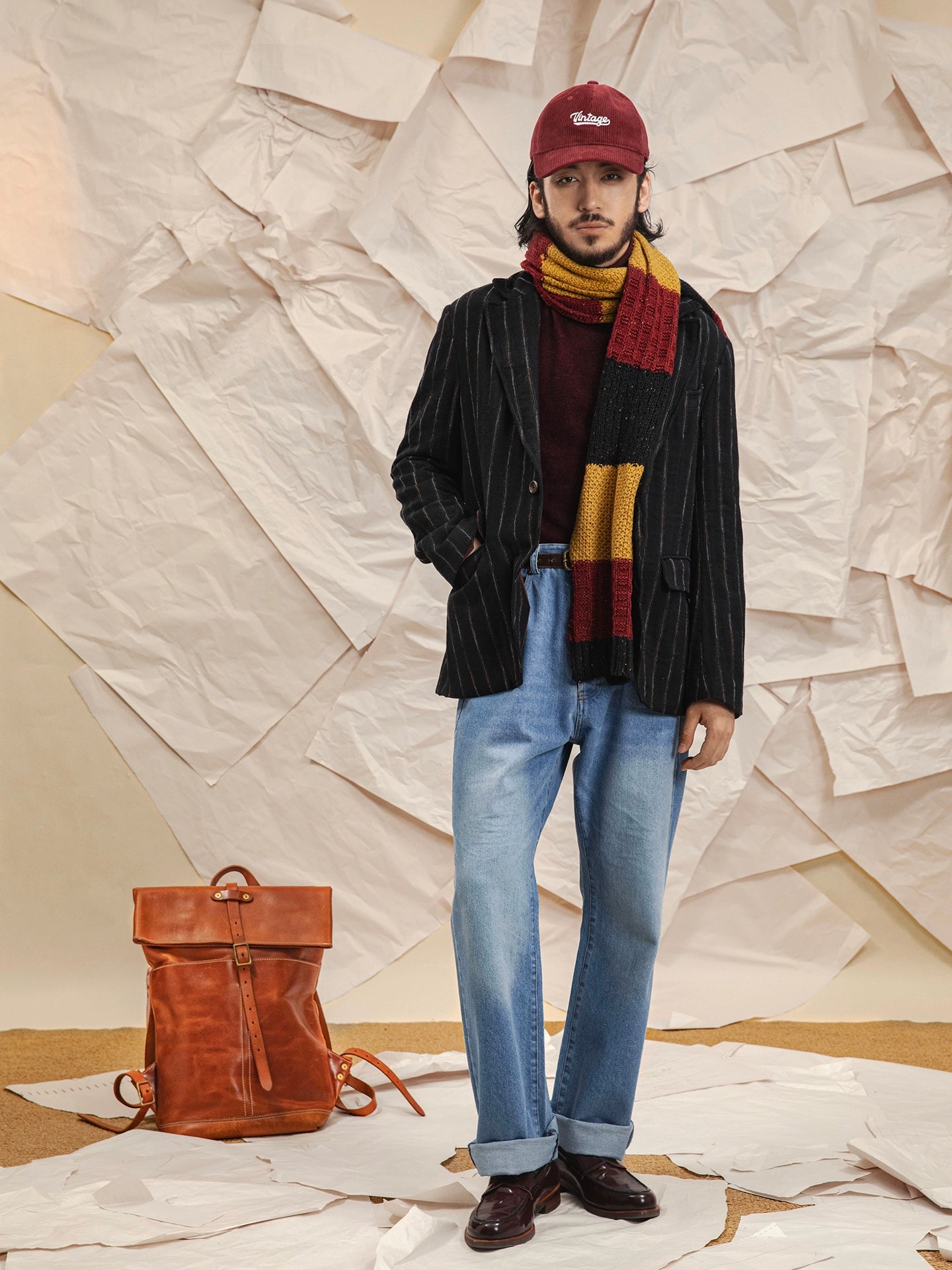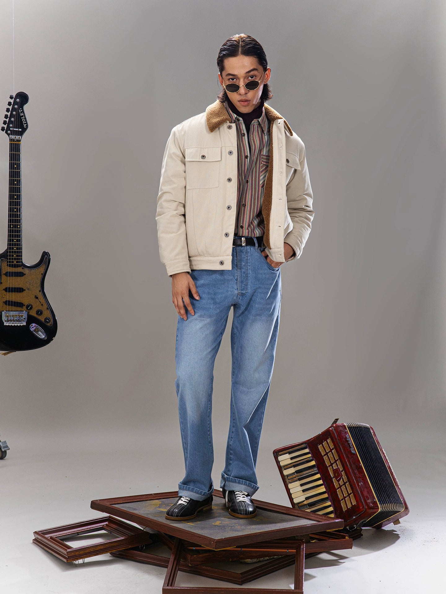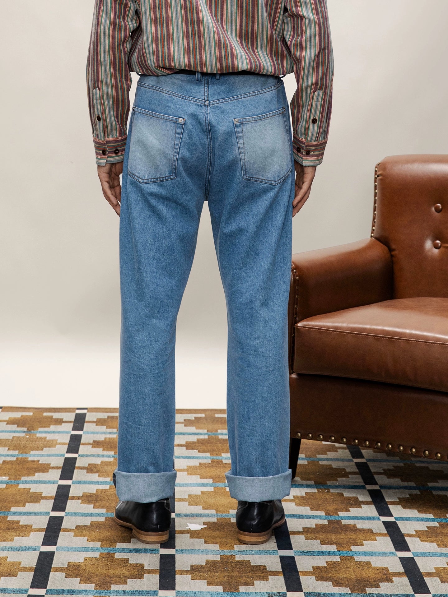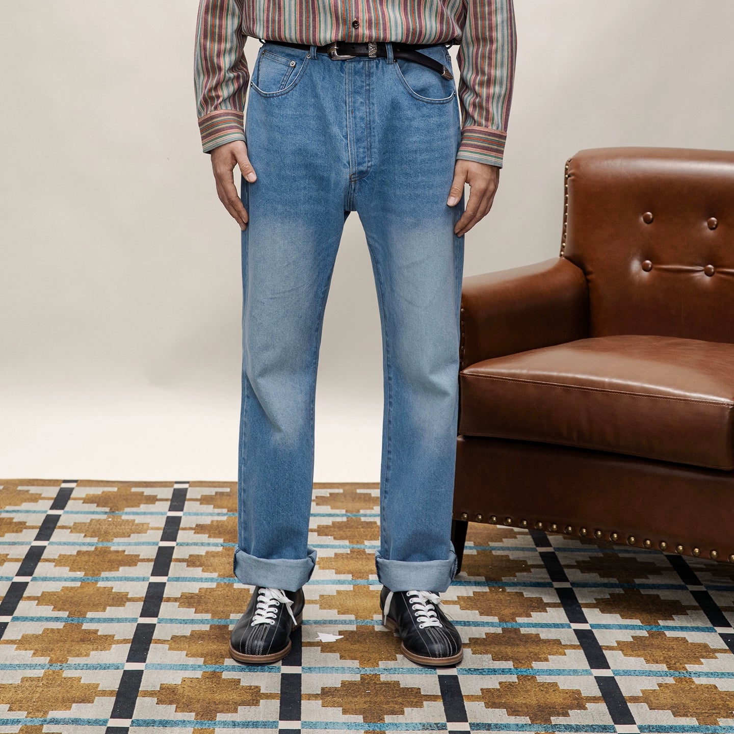 SOARIN美式复古泛白水洗蓝牛仔裤男 秋冬直筒宽松休闲工装长裤