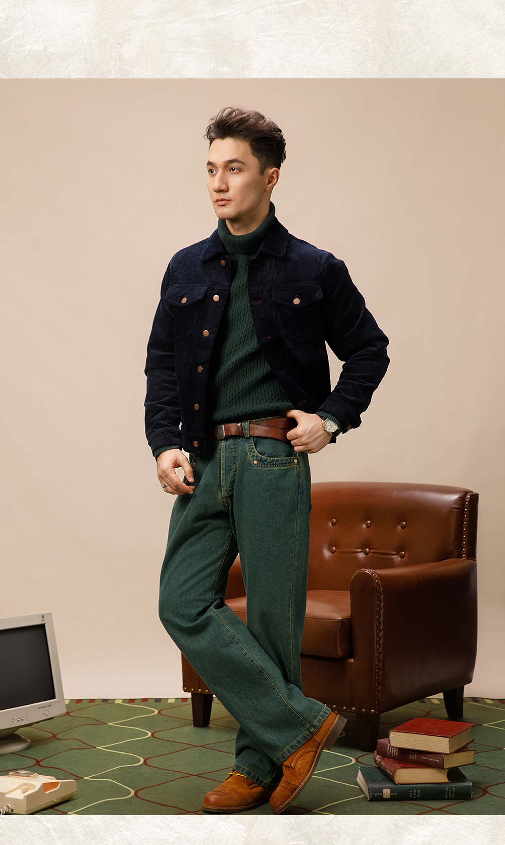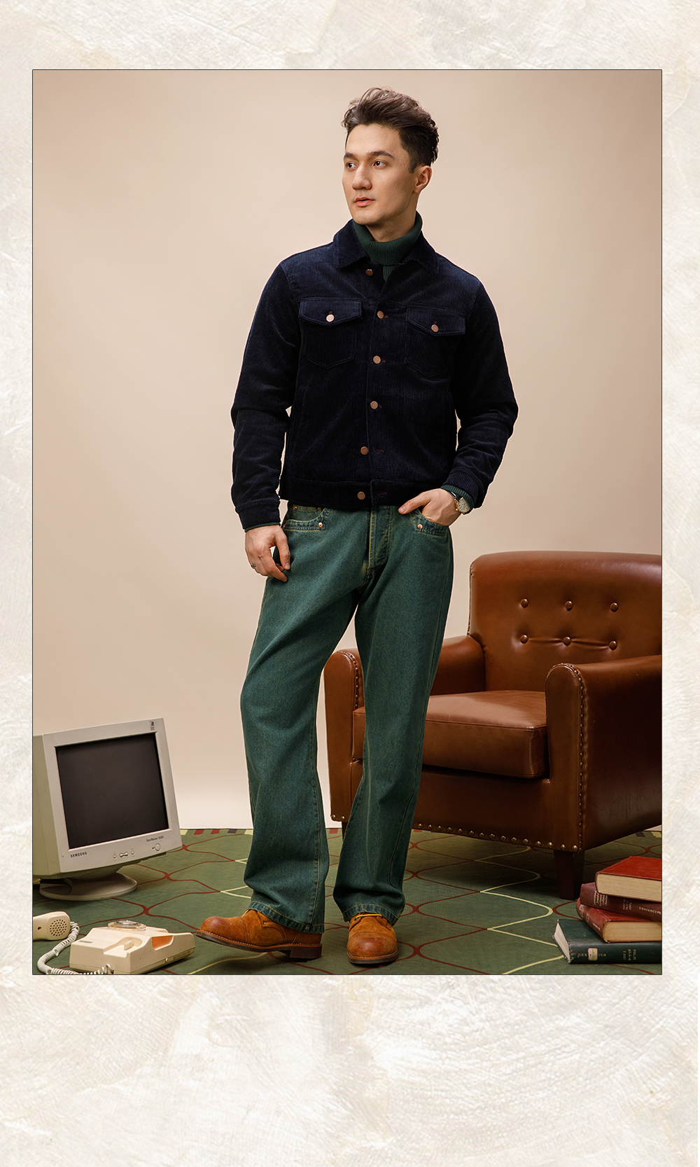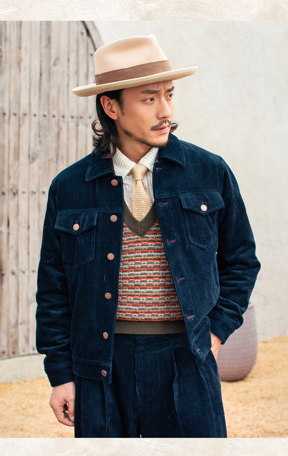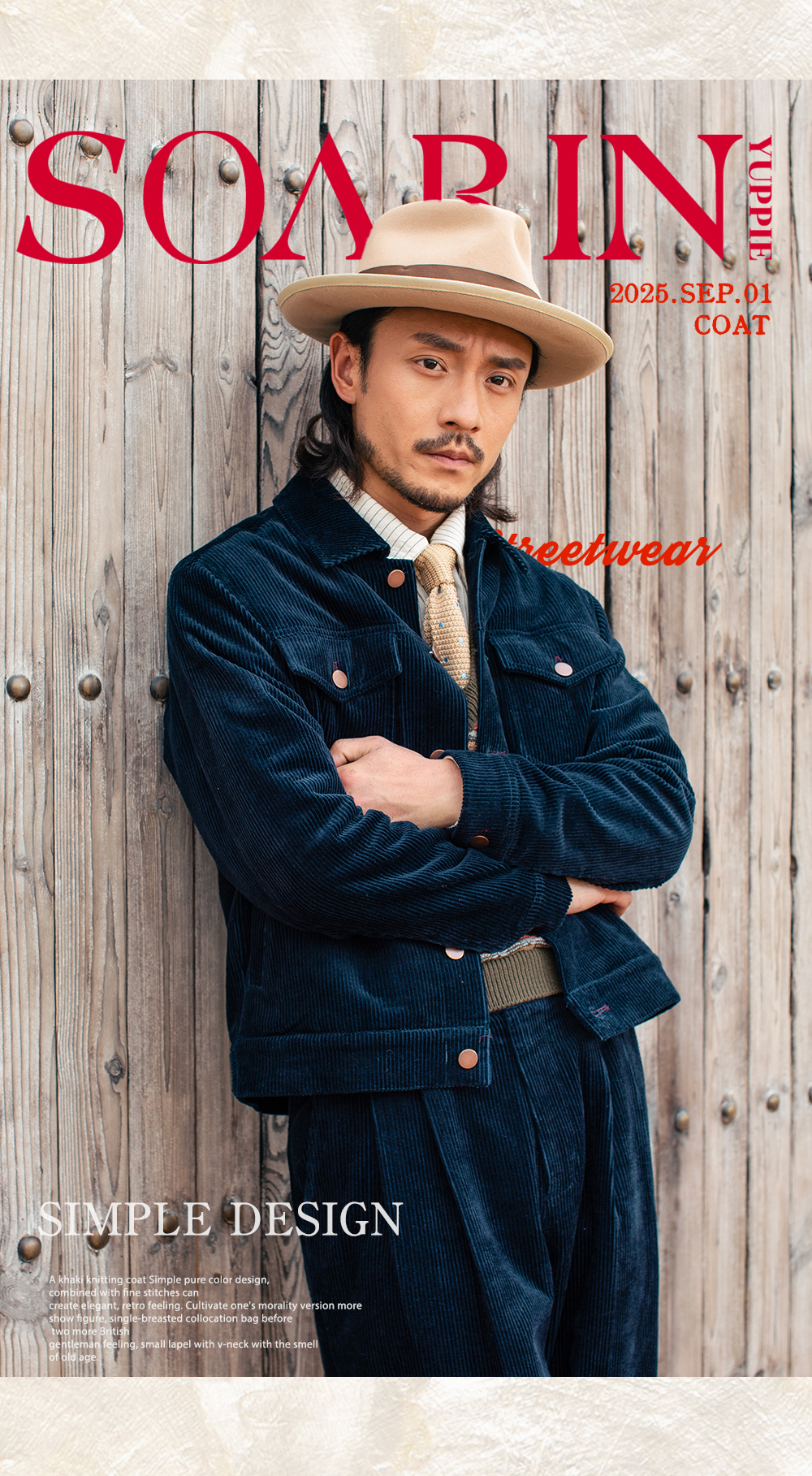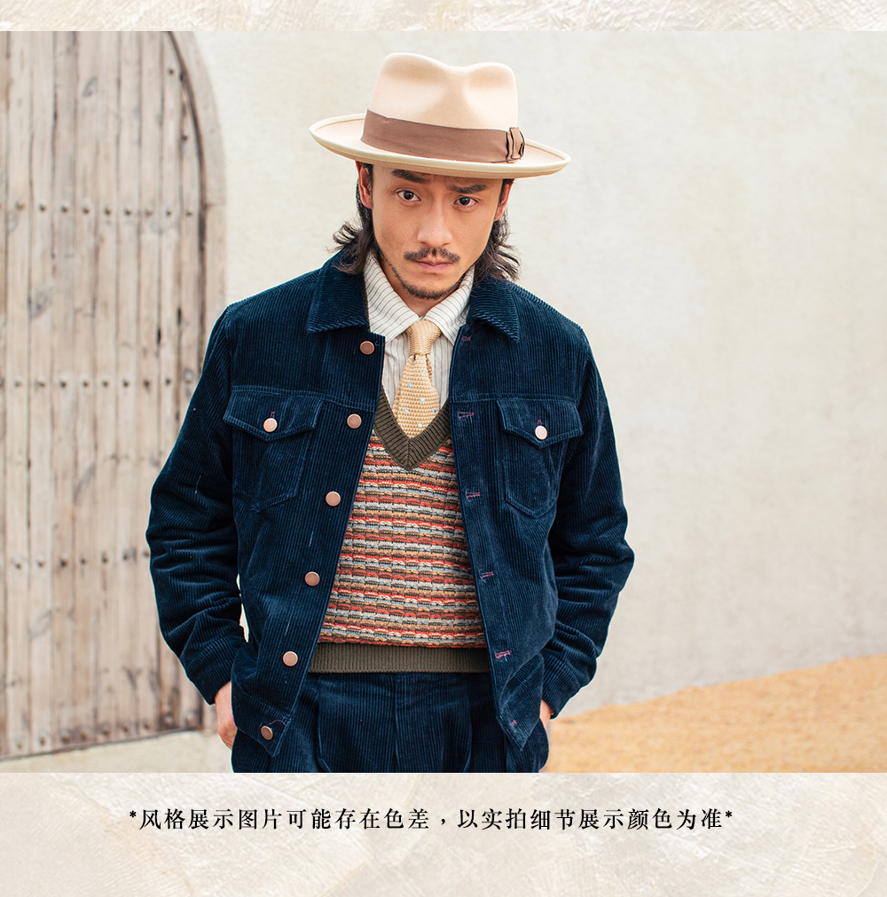 SOARIN美式复古灯芯绒夹克男 痞帅绅士翻领短款飞行员工装夹克潮