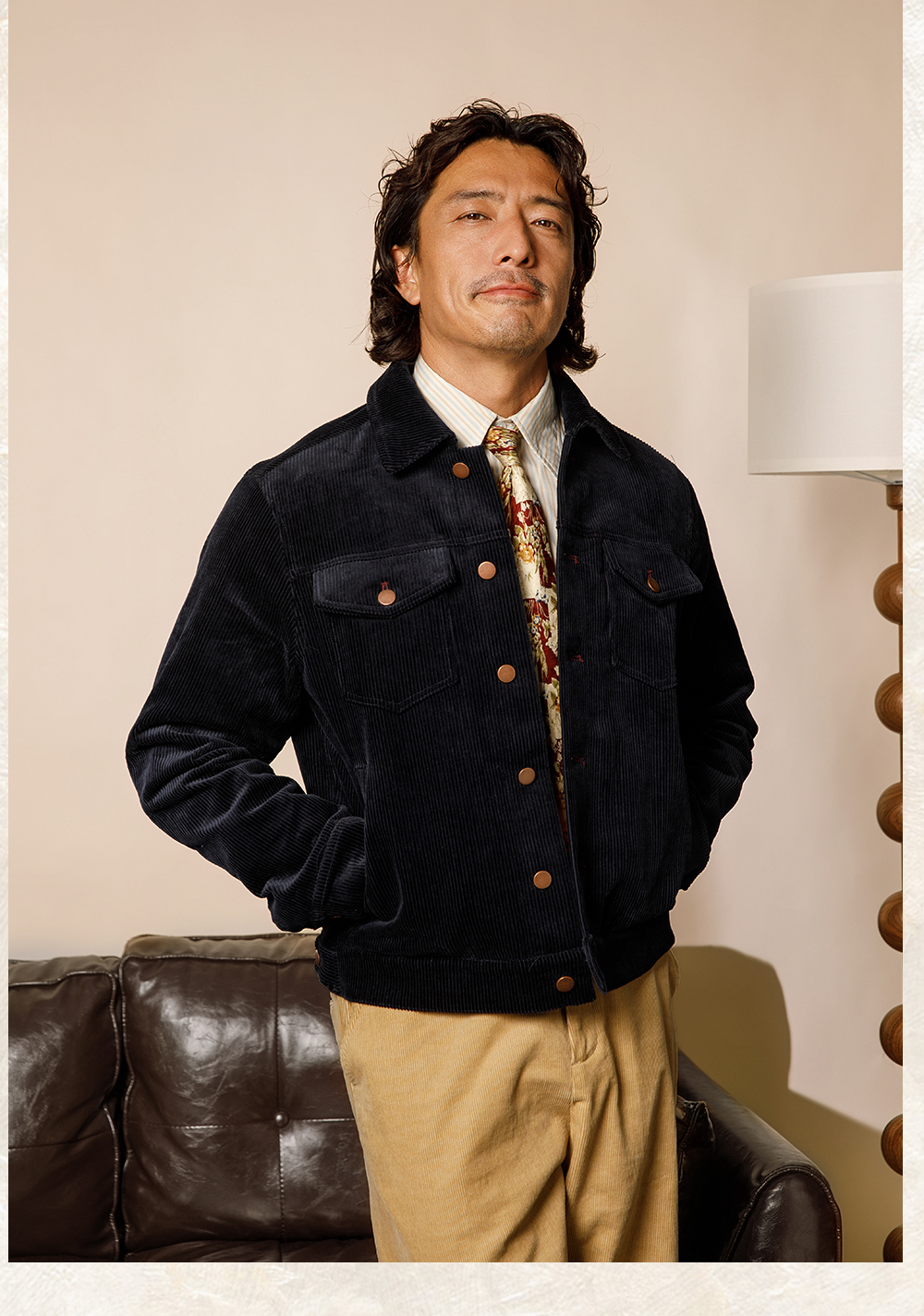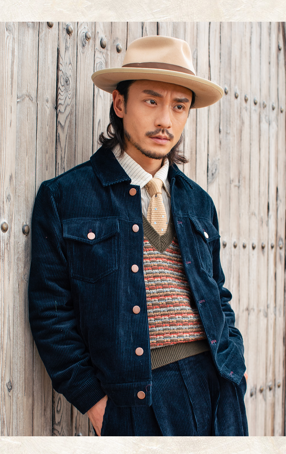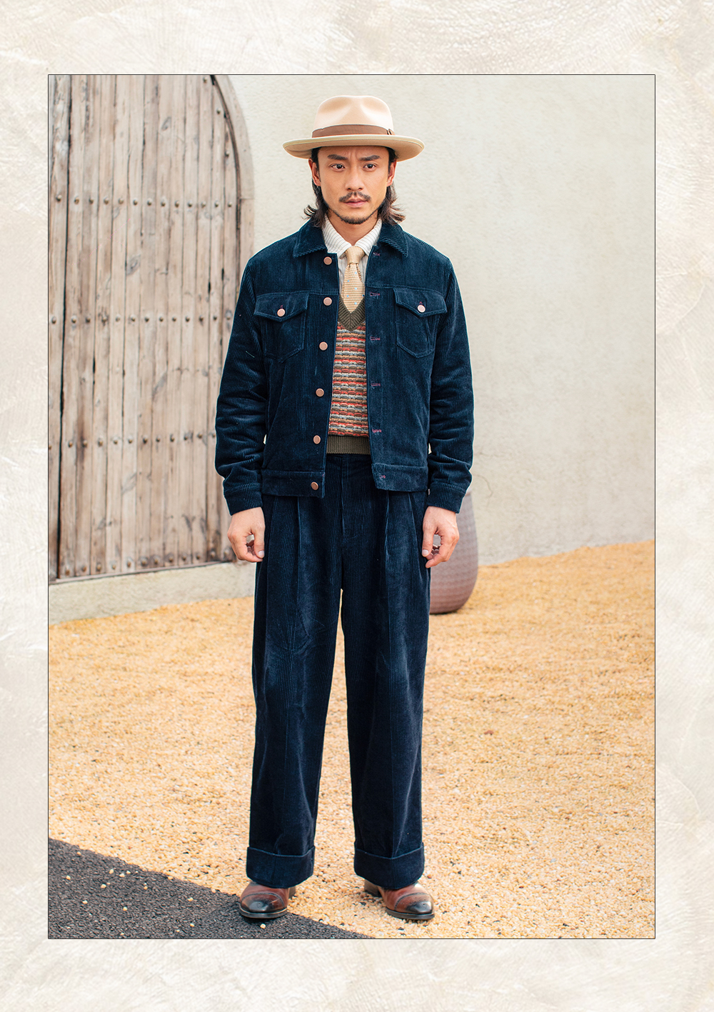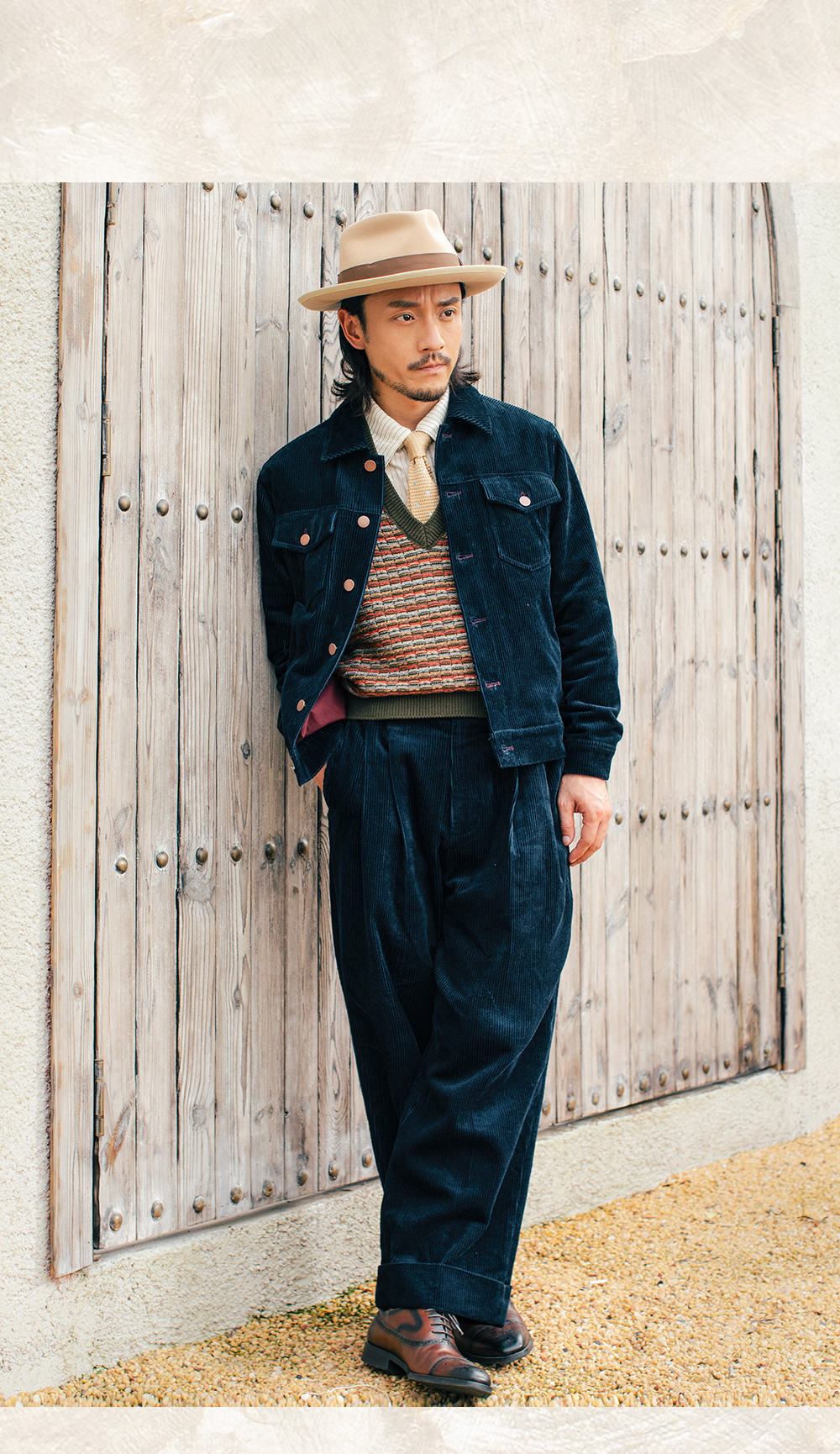 SOARIN美式复古灯芯绒夹克男 痞帅绅士翻领短款飞行员工装夹克潮