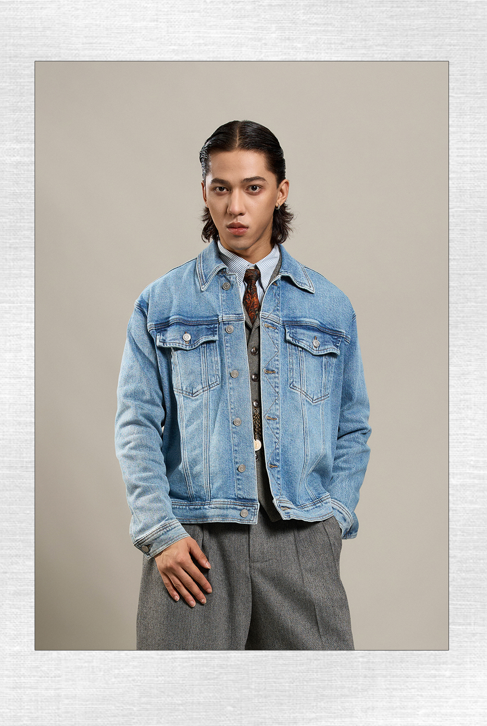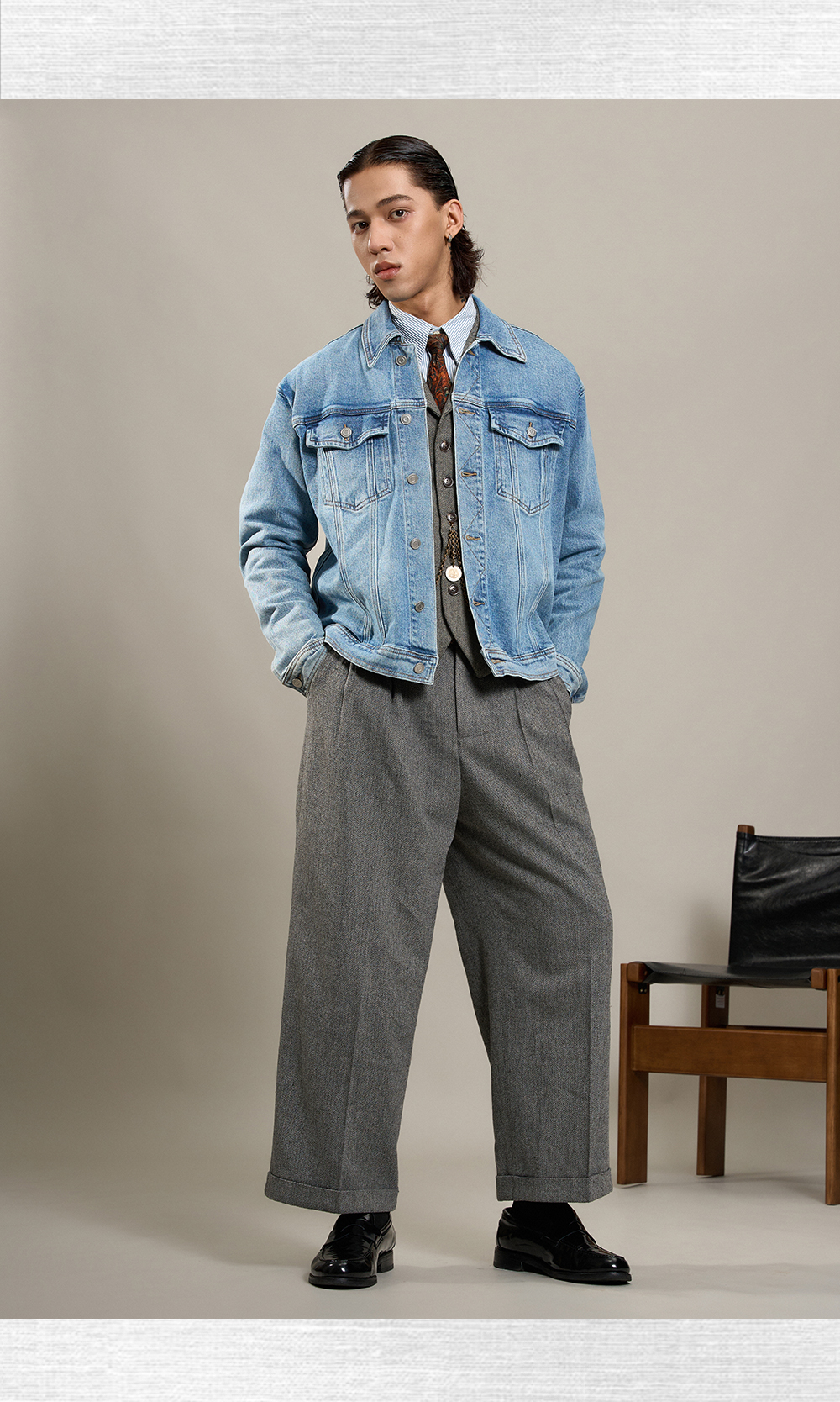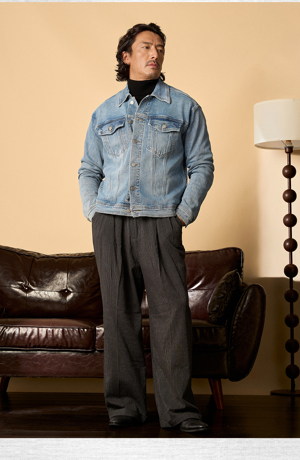 SOARIN美式复古重磅水洗牛仔夹克男 翻领双口袋做旧感工装外套