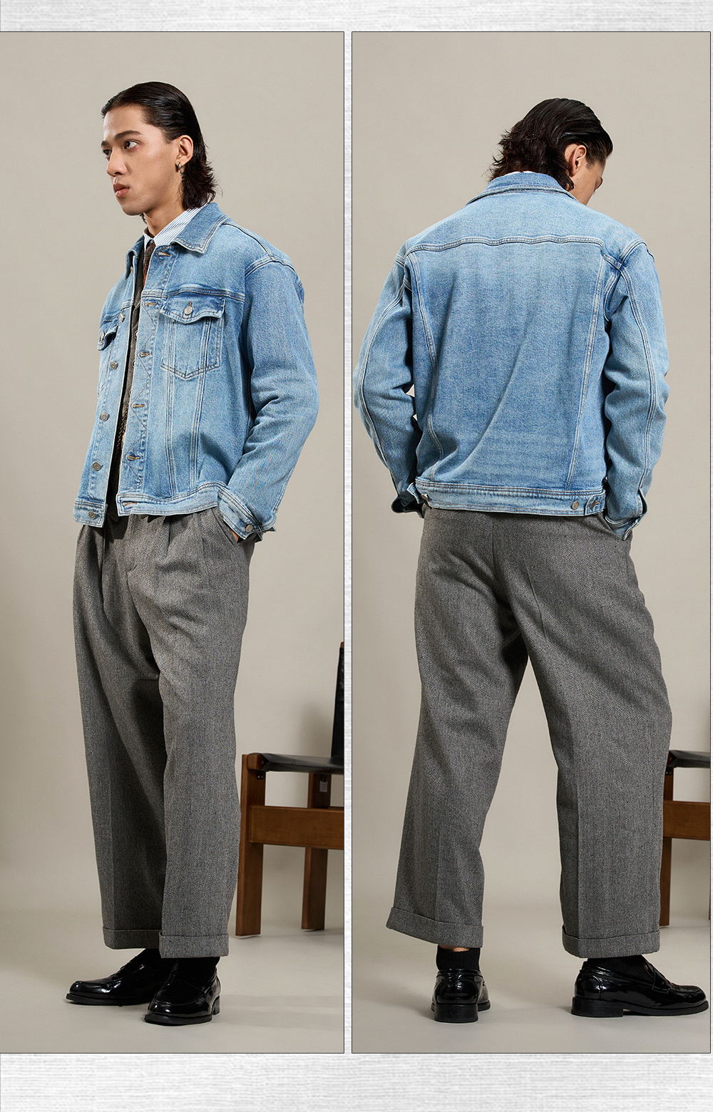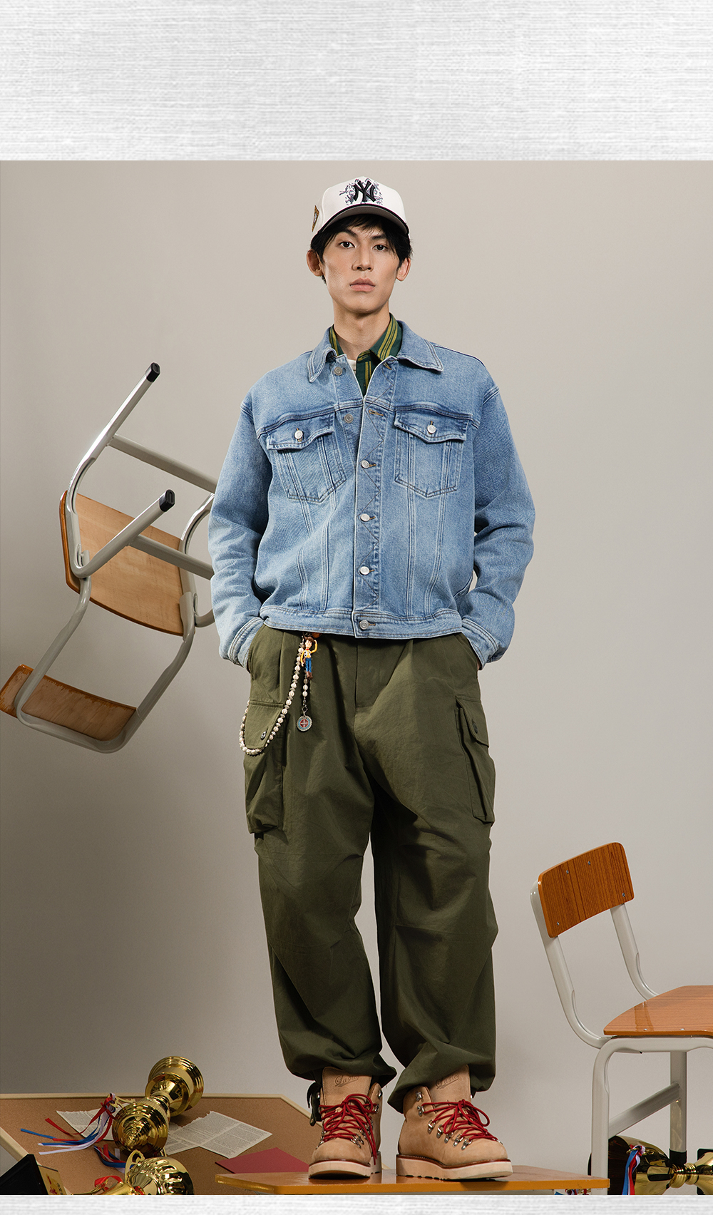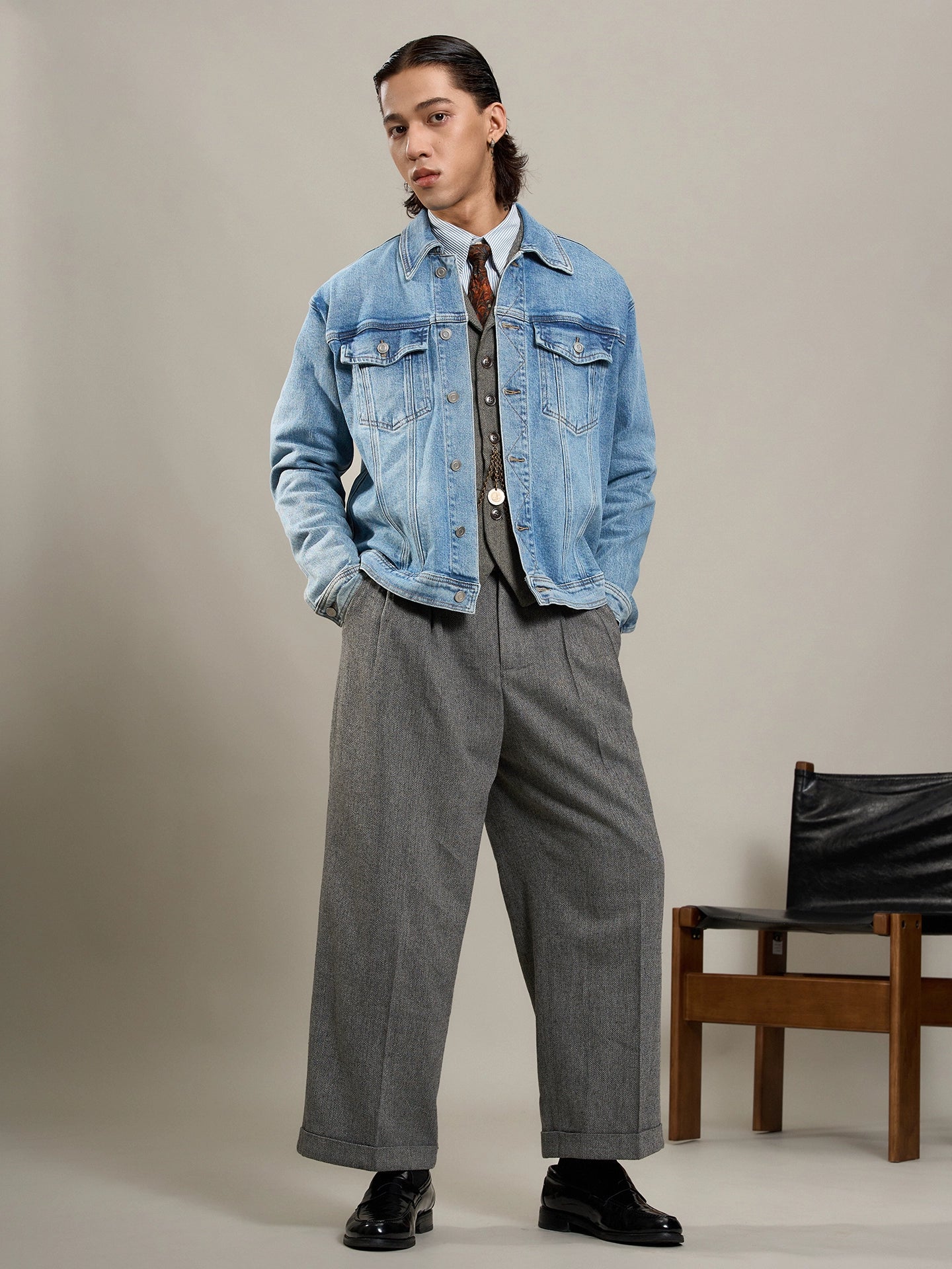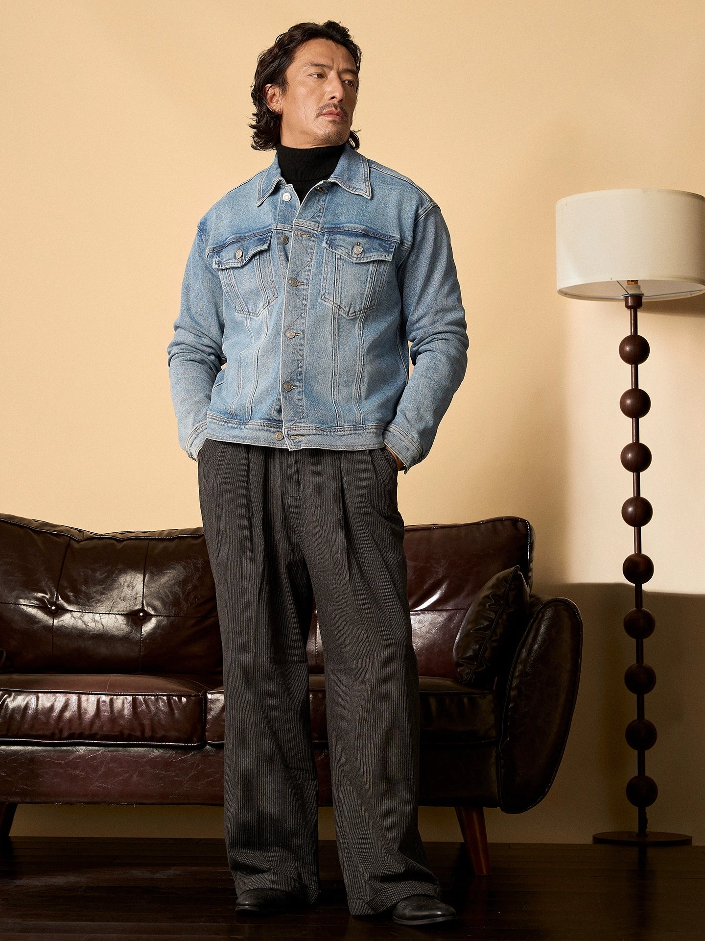 SOARIN美式复古重磅水洗牛仔夹克男 翻领双口袋做旧感工装外套