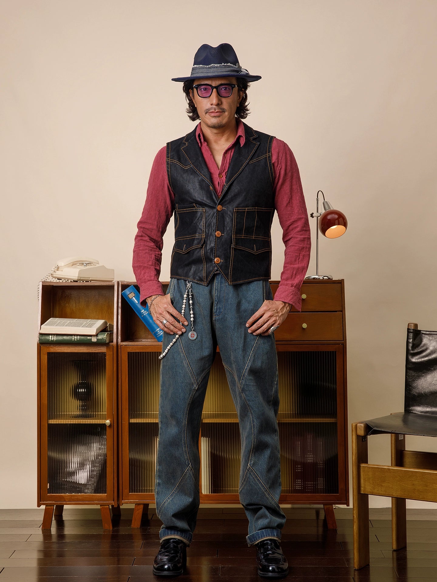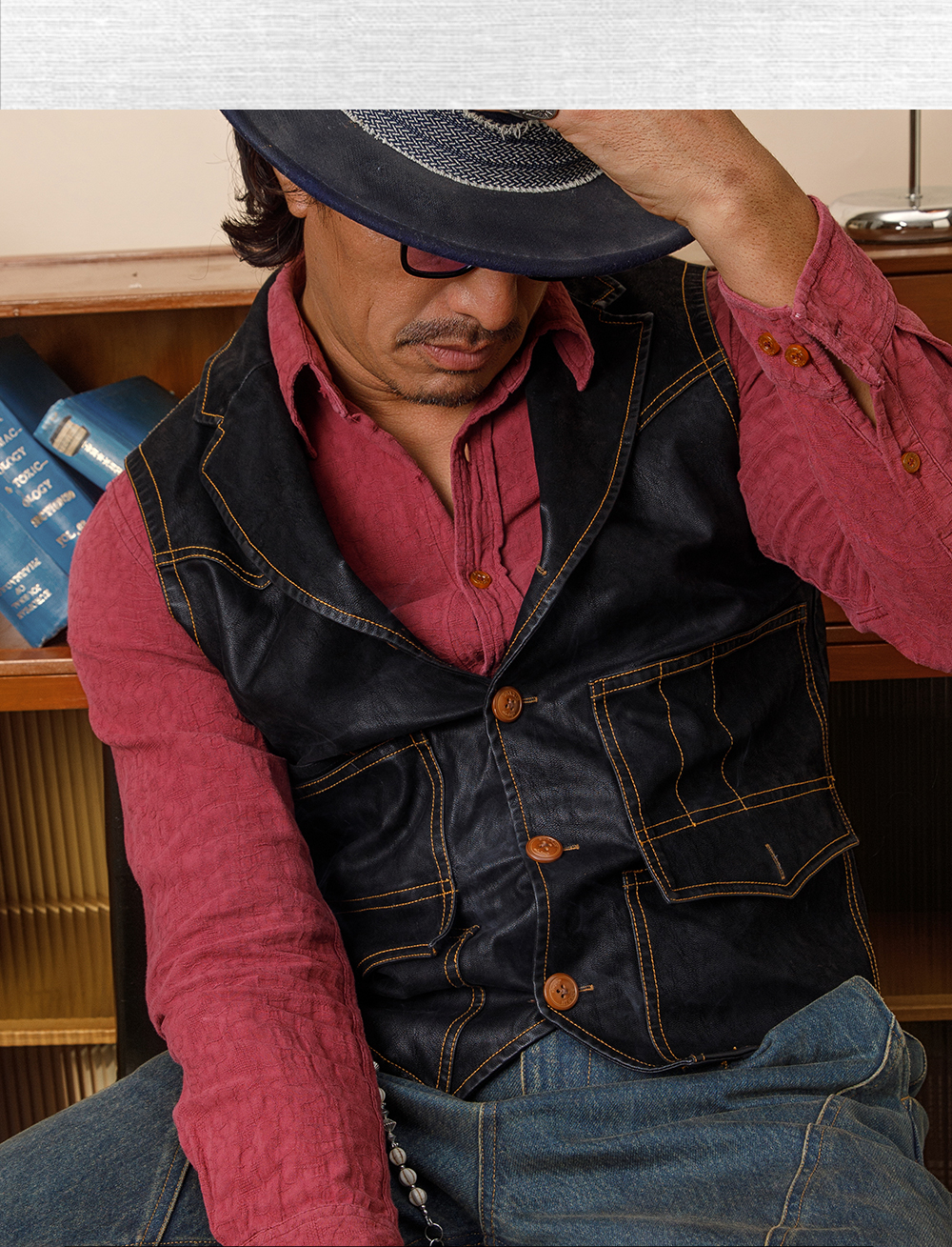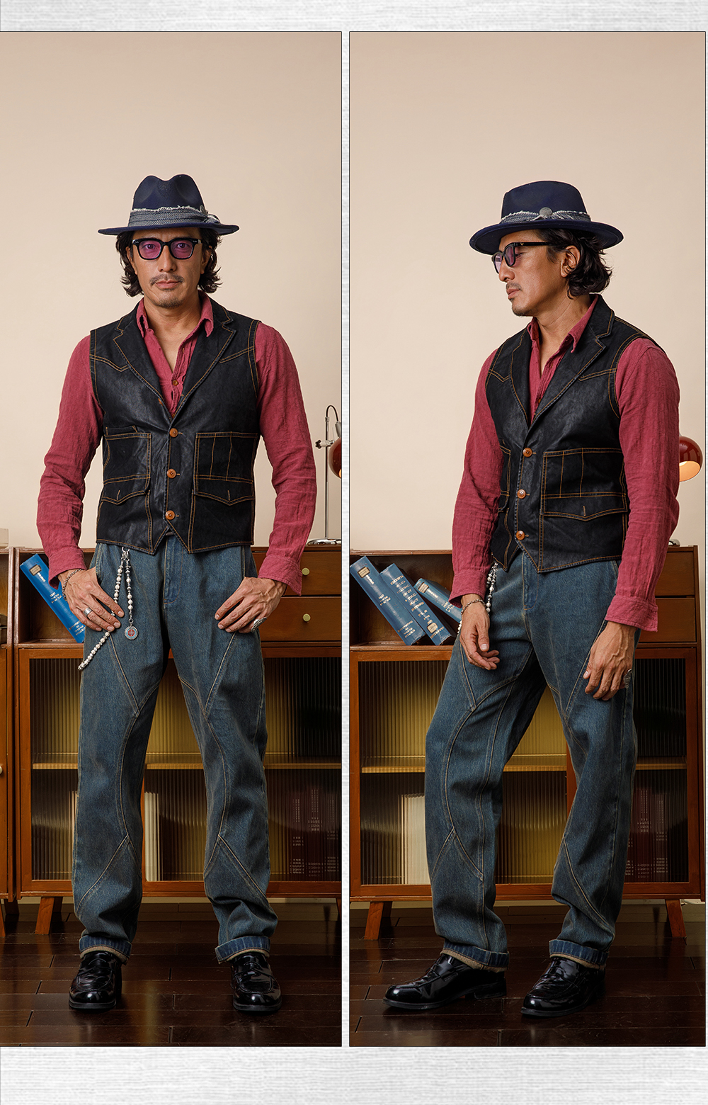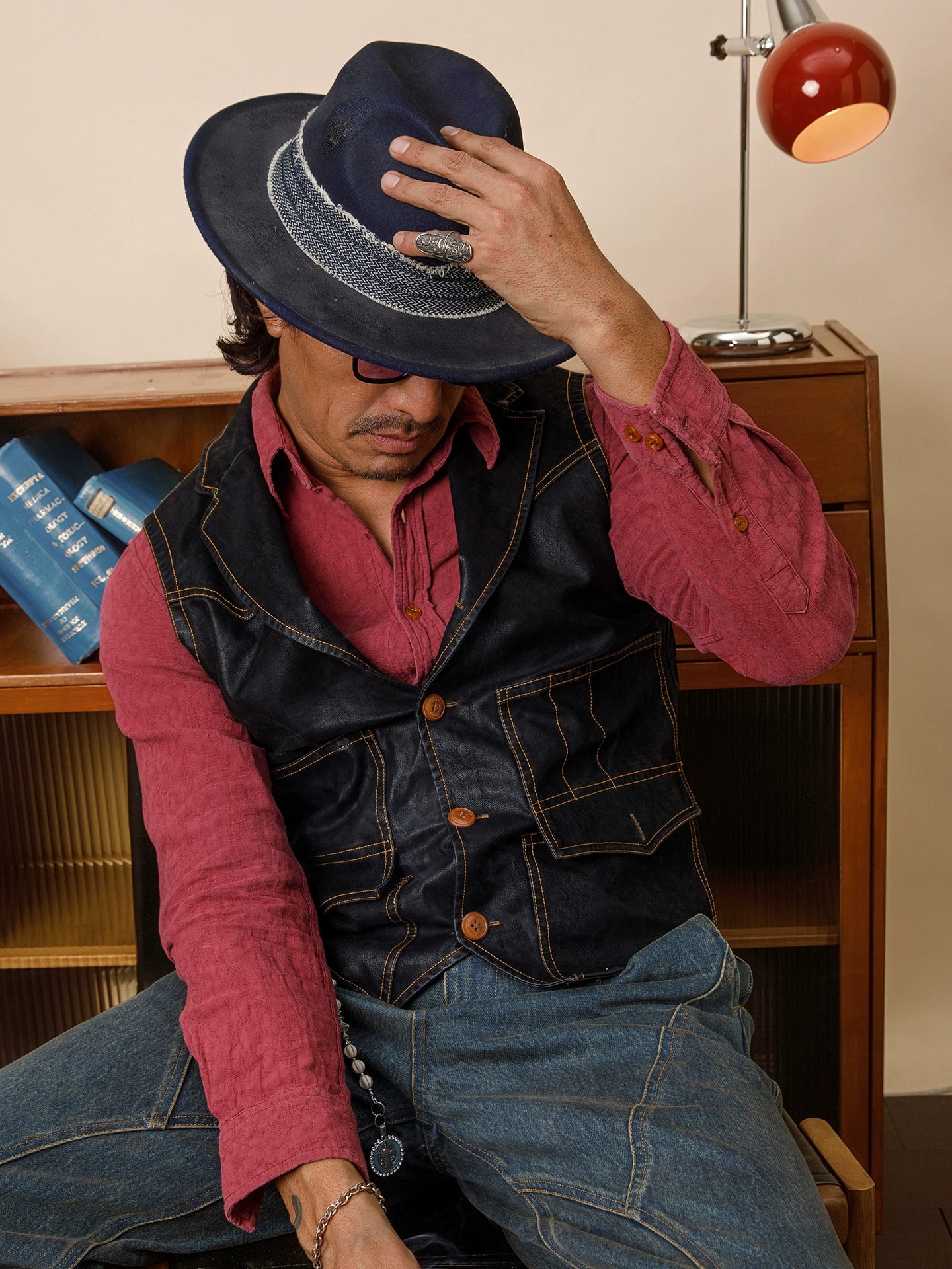 SOARIN美式复古黑色皮衣马甲男 辑明线翻领休闲工装机车马夹背心