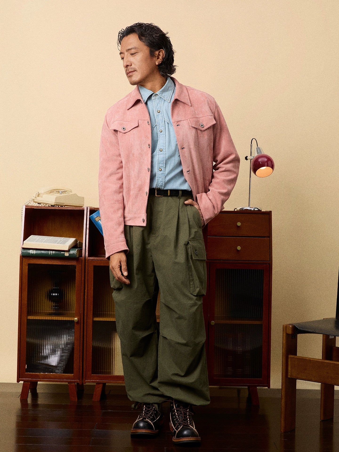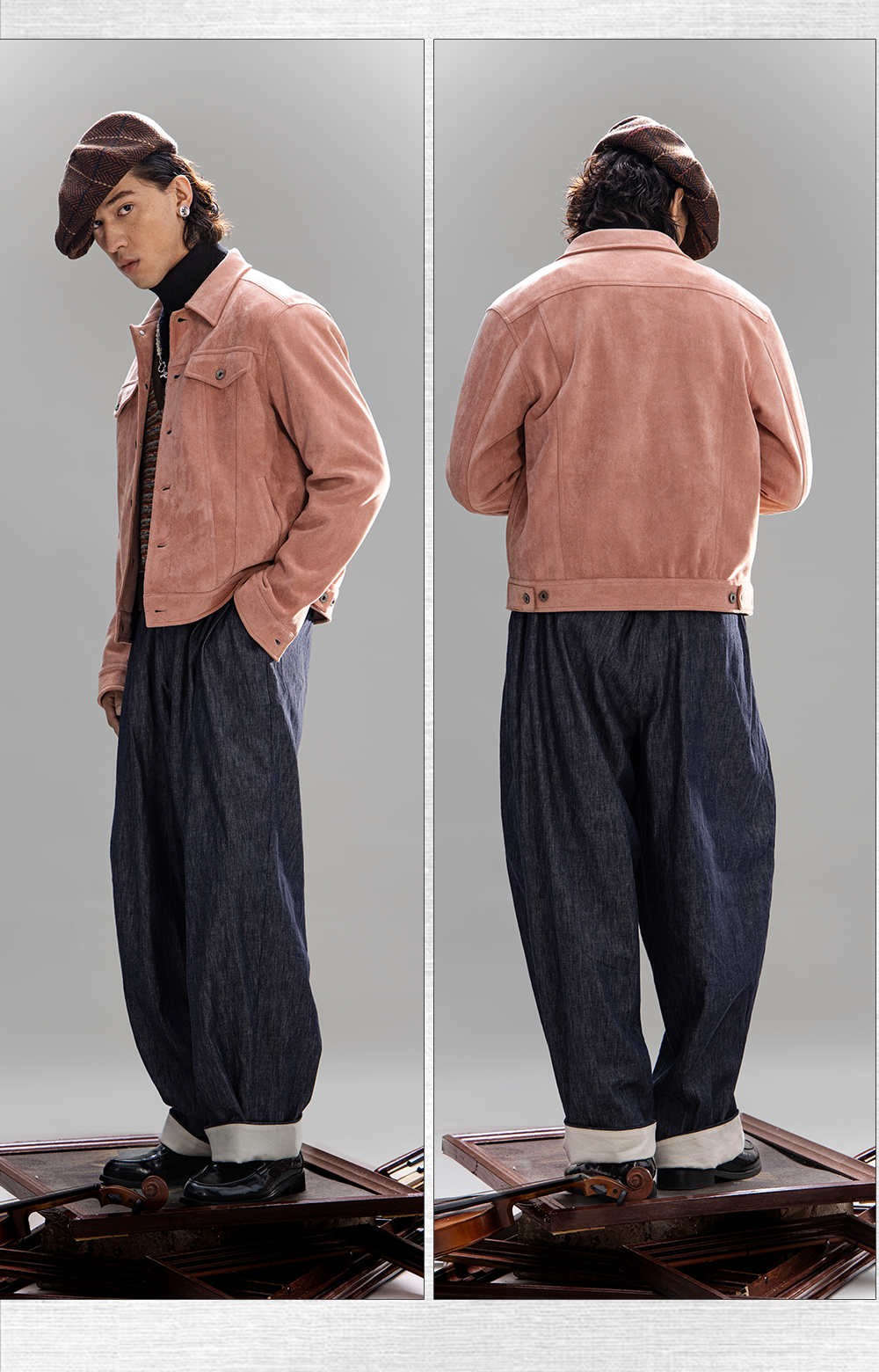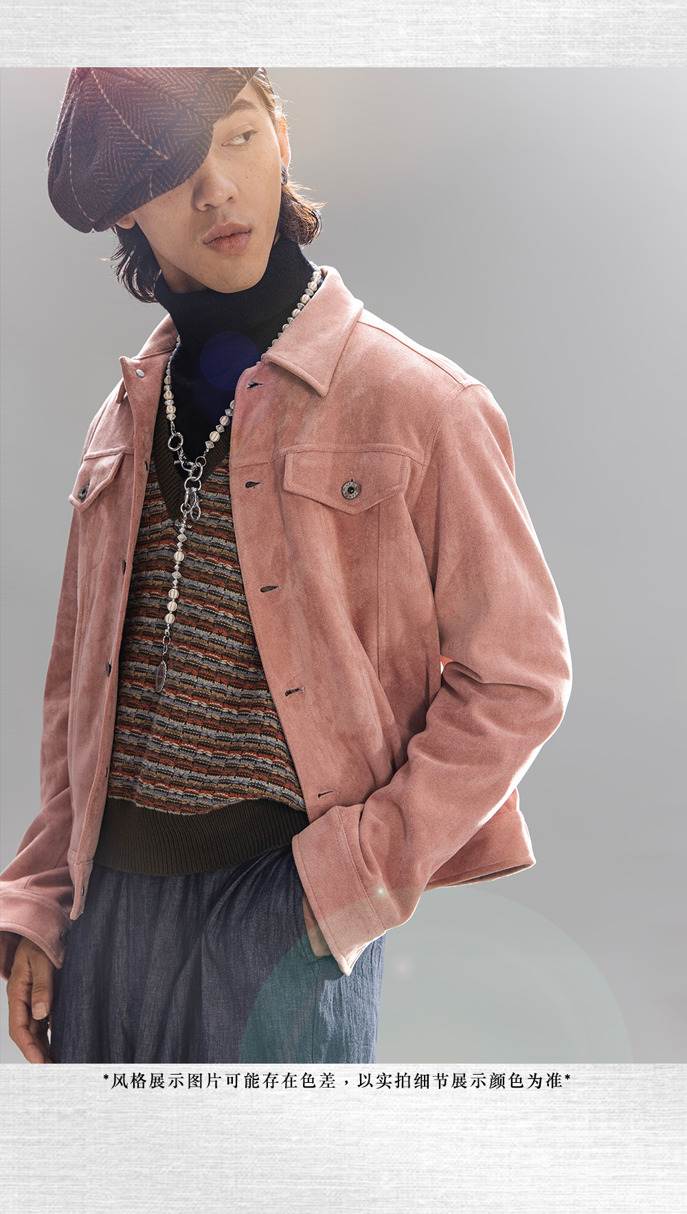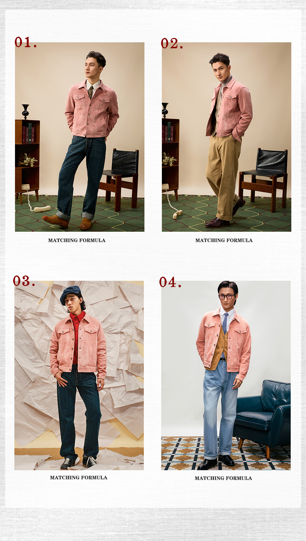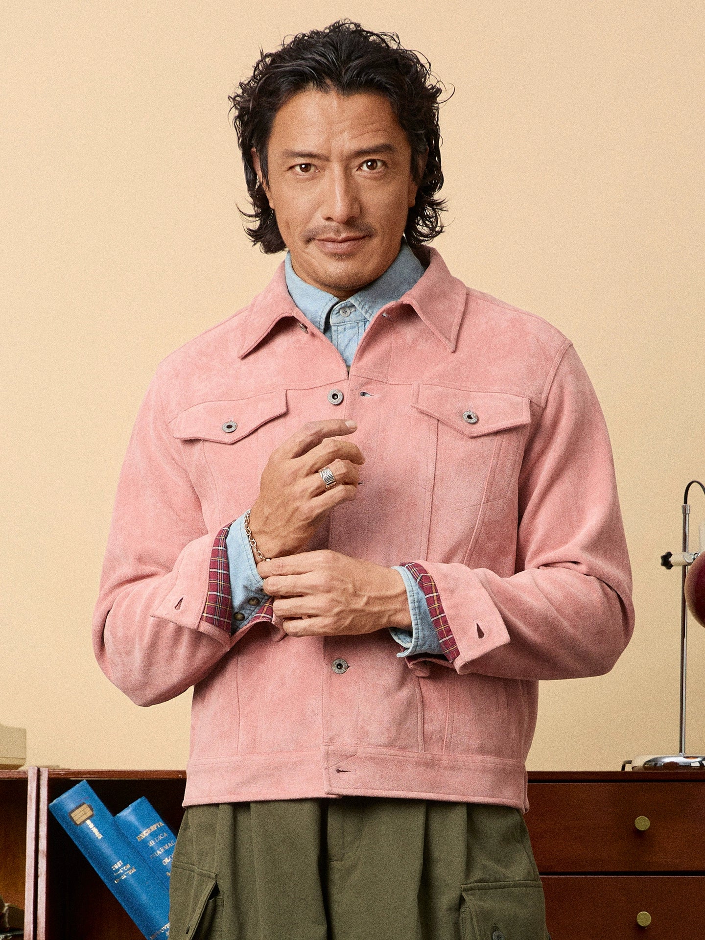 SOARIN美式工装鹿皮绒夹克男阿美咔叽机车服短款复古牛仔外套