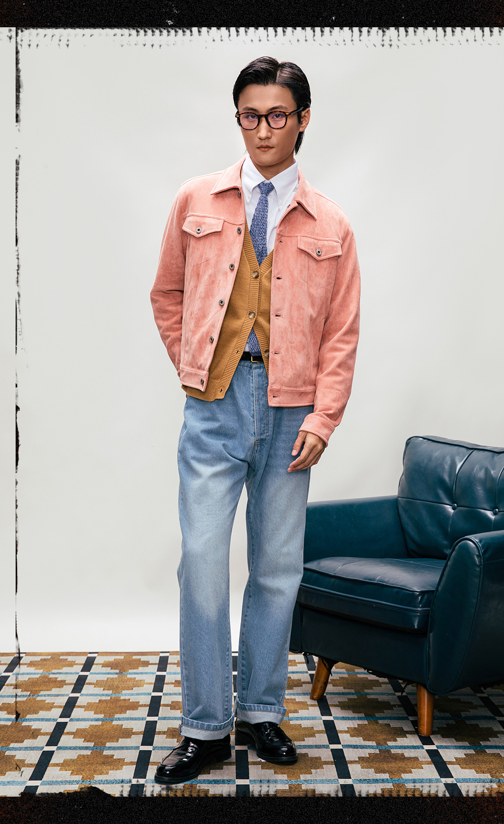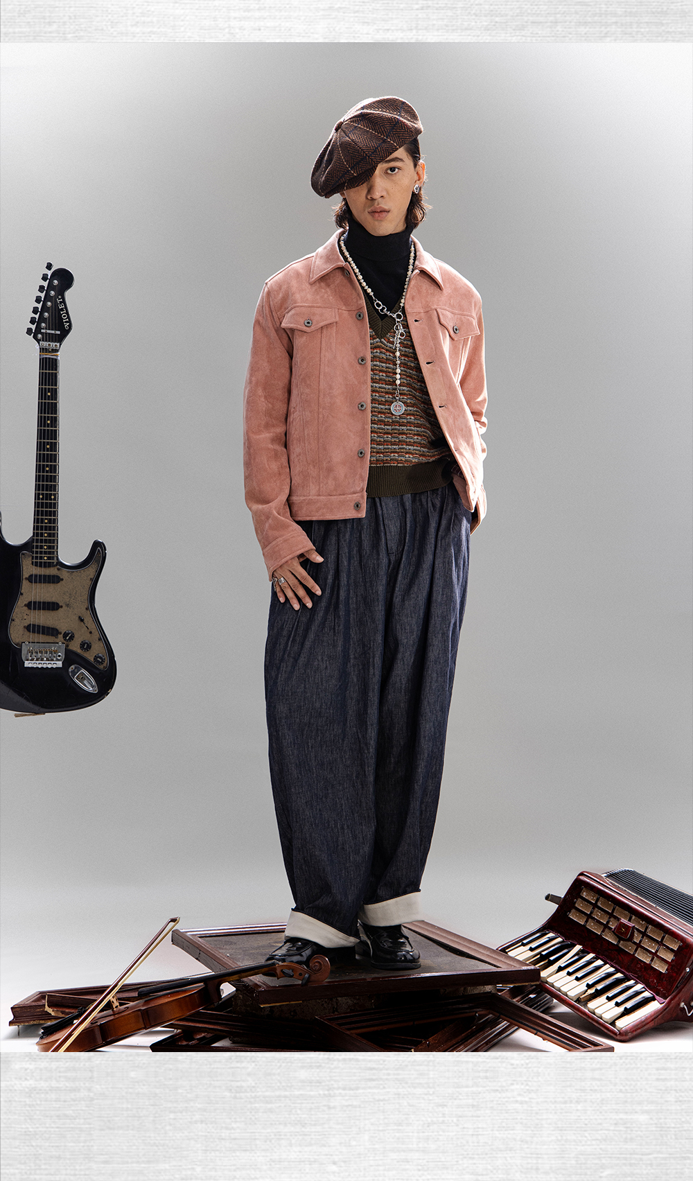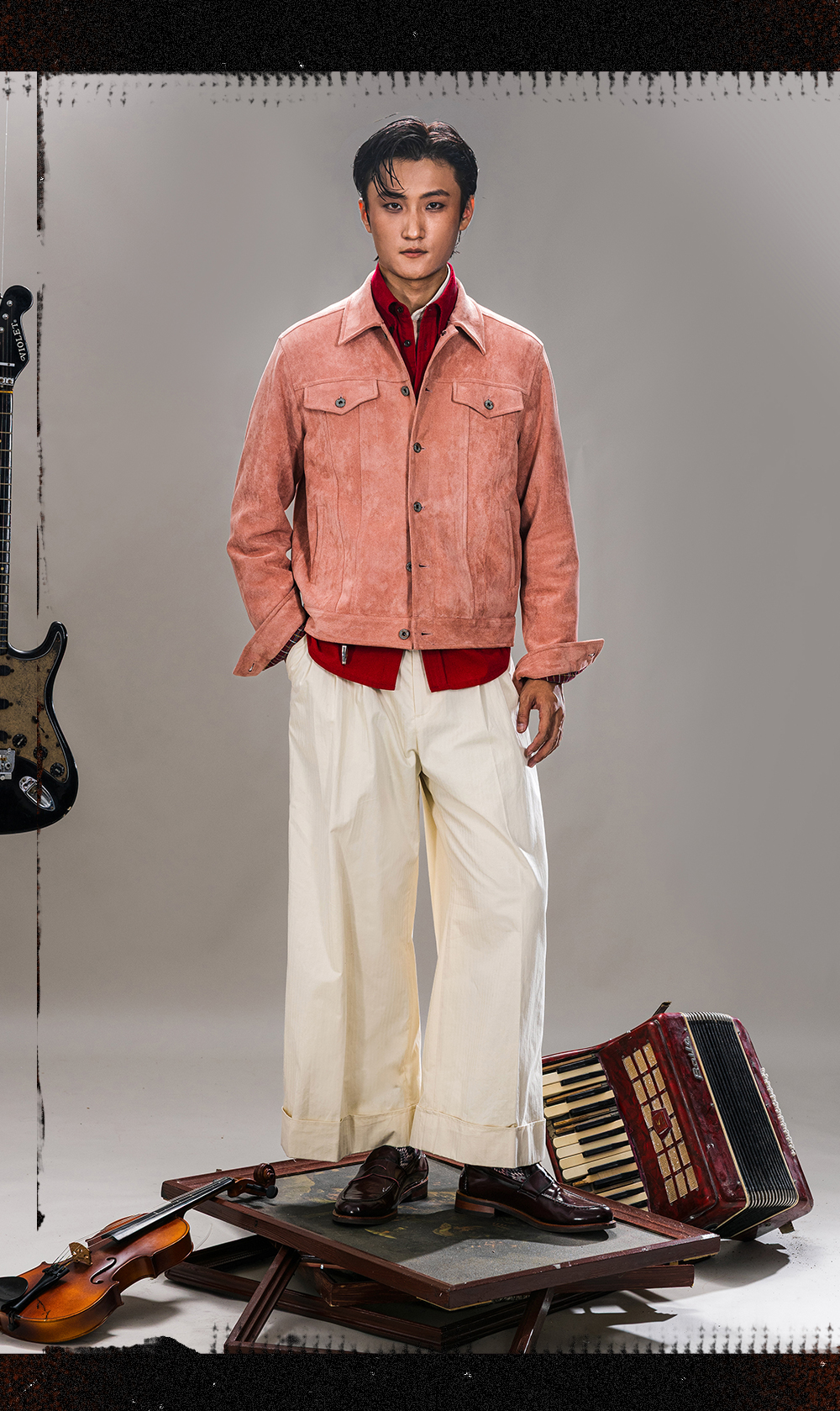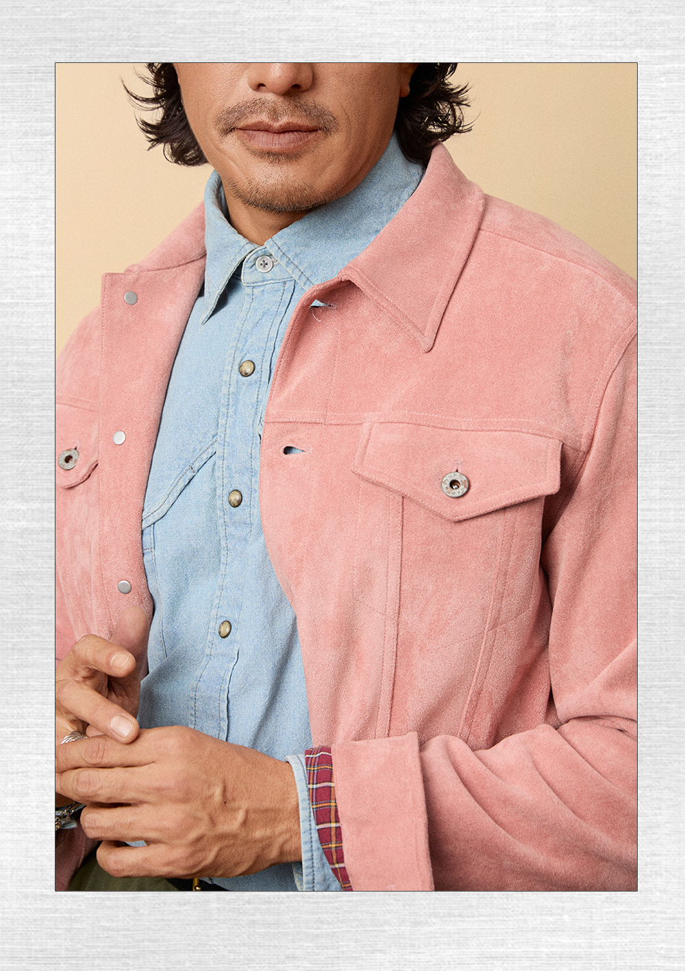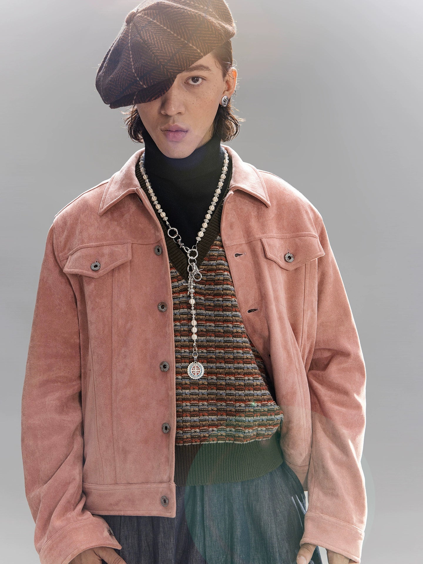 SOARIN美式工装鹿皮绒夹克男阿美咔叽机车服短款复古牛仔外套
