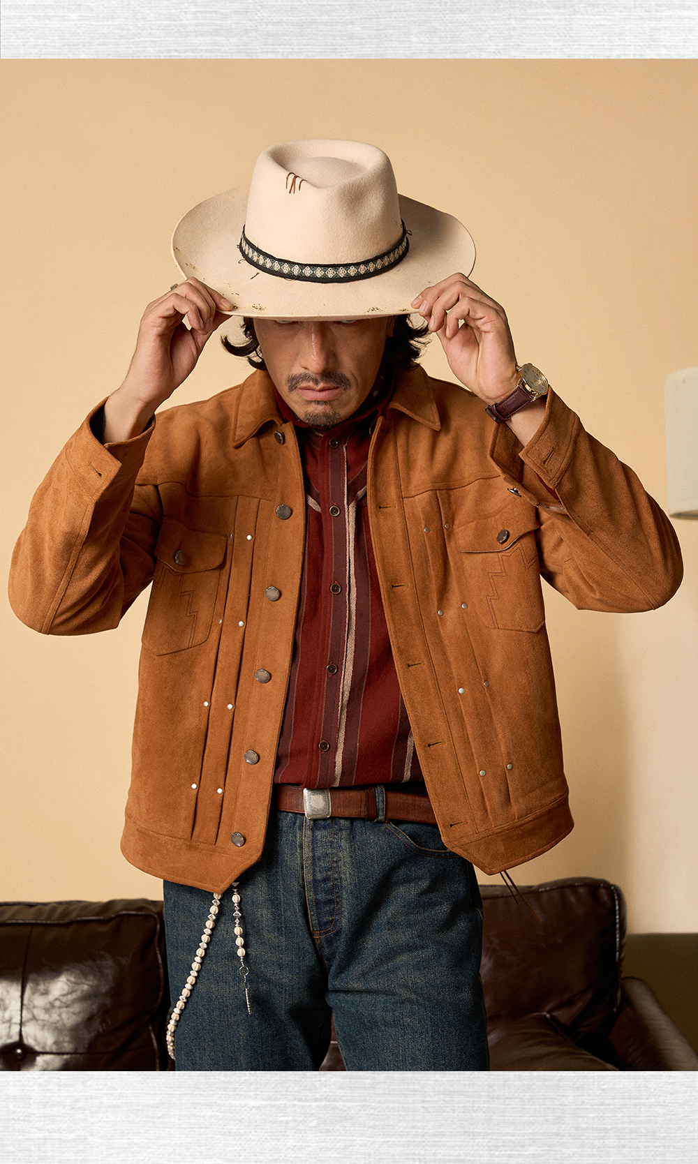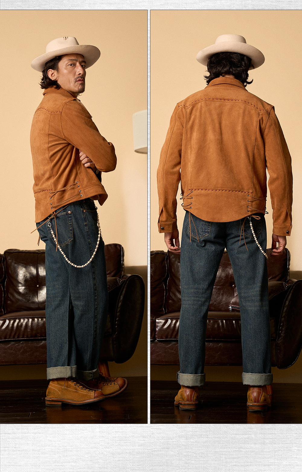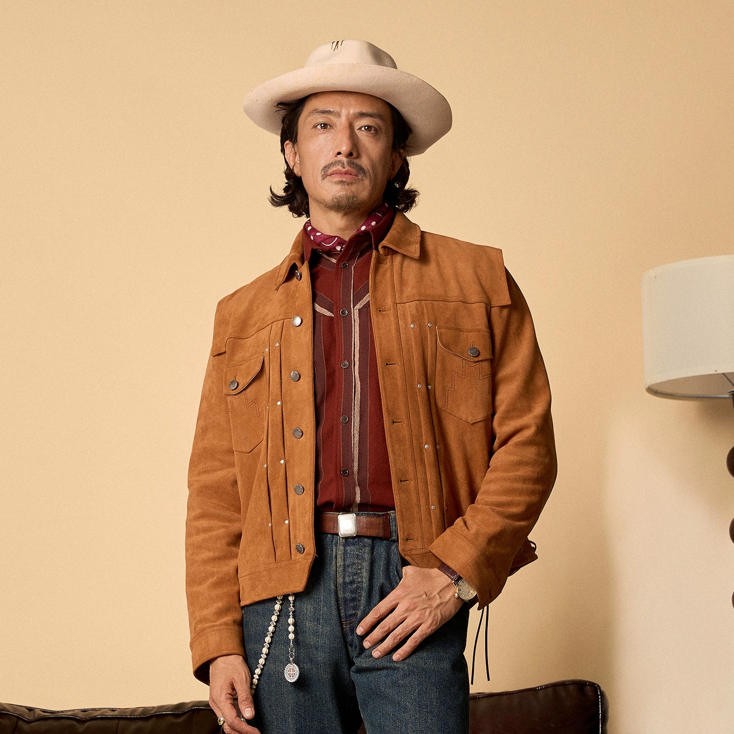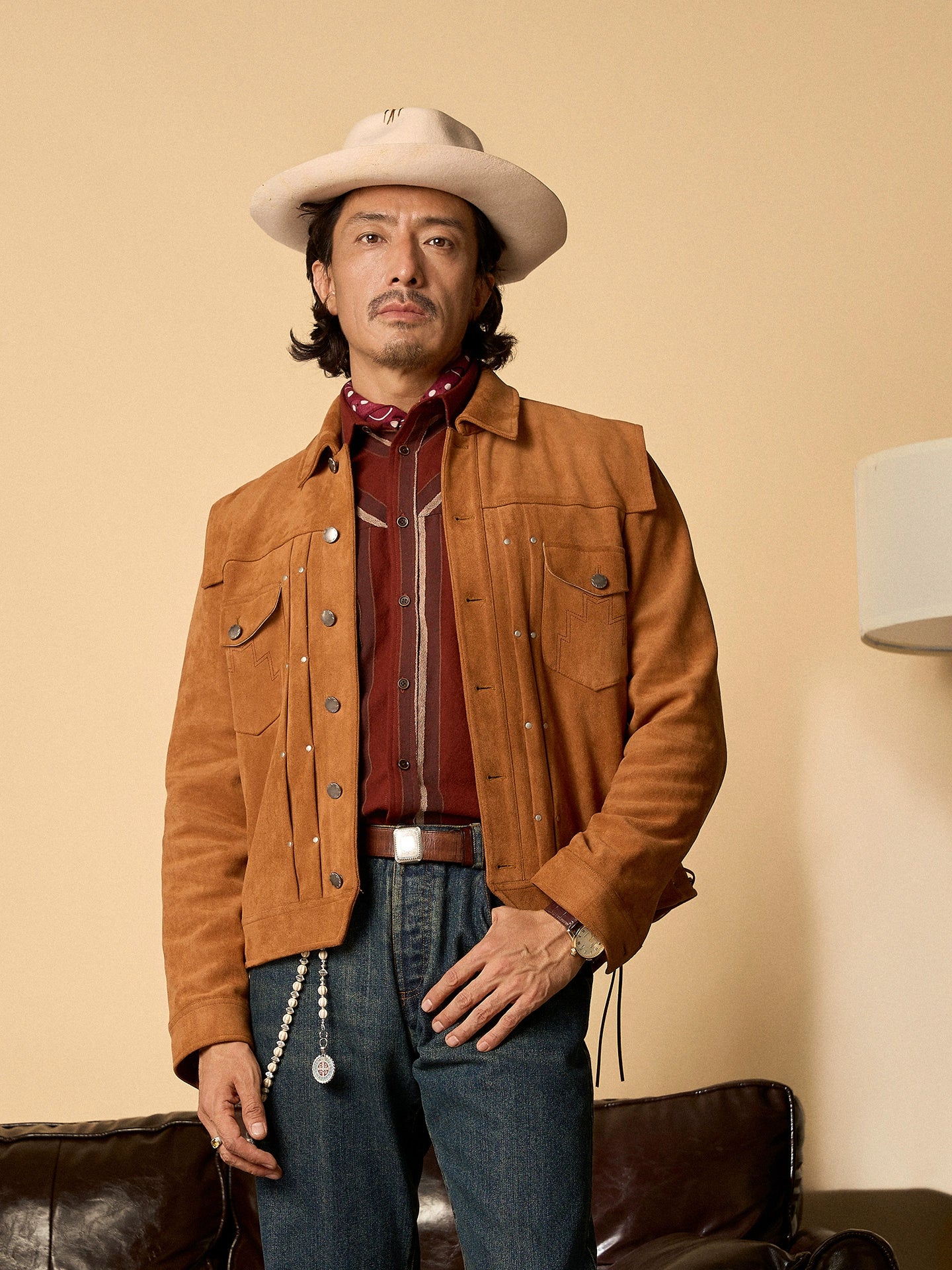 SOARIN美式西部牛仔风麂皮绒夹克男 重磅复古鹿皮飞行员短款外套