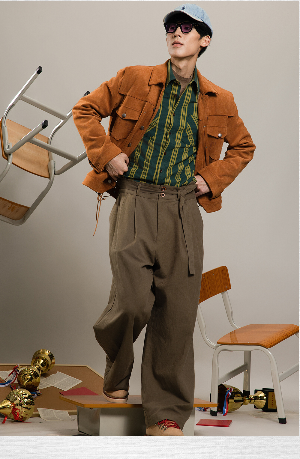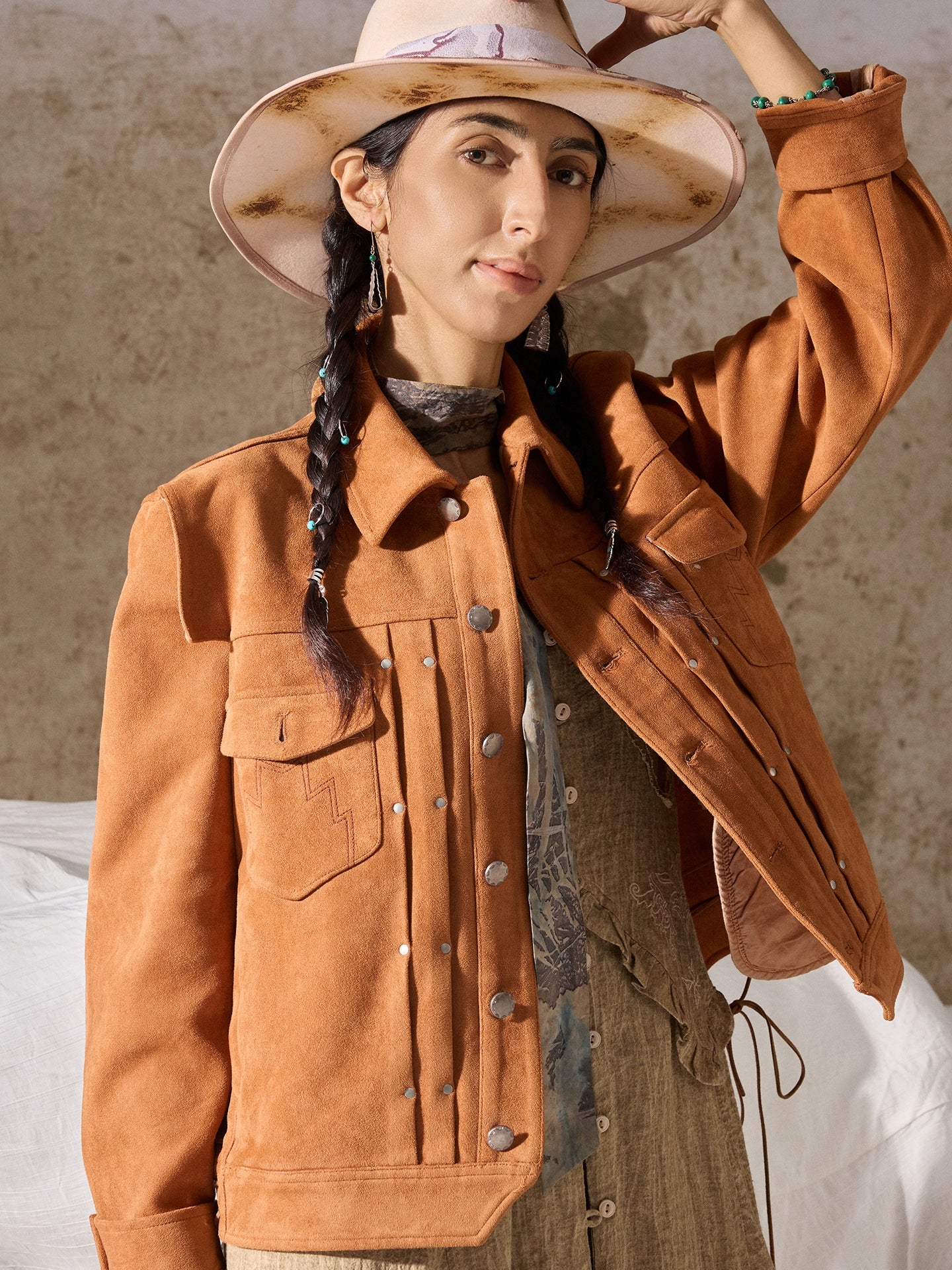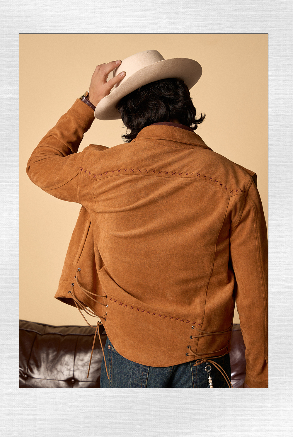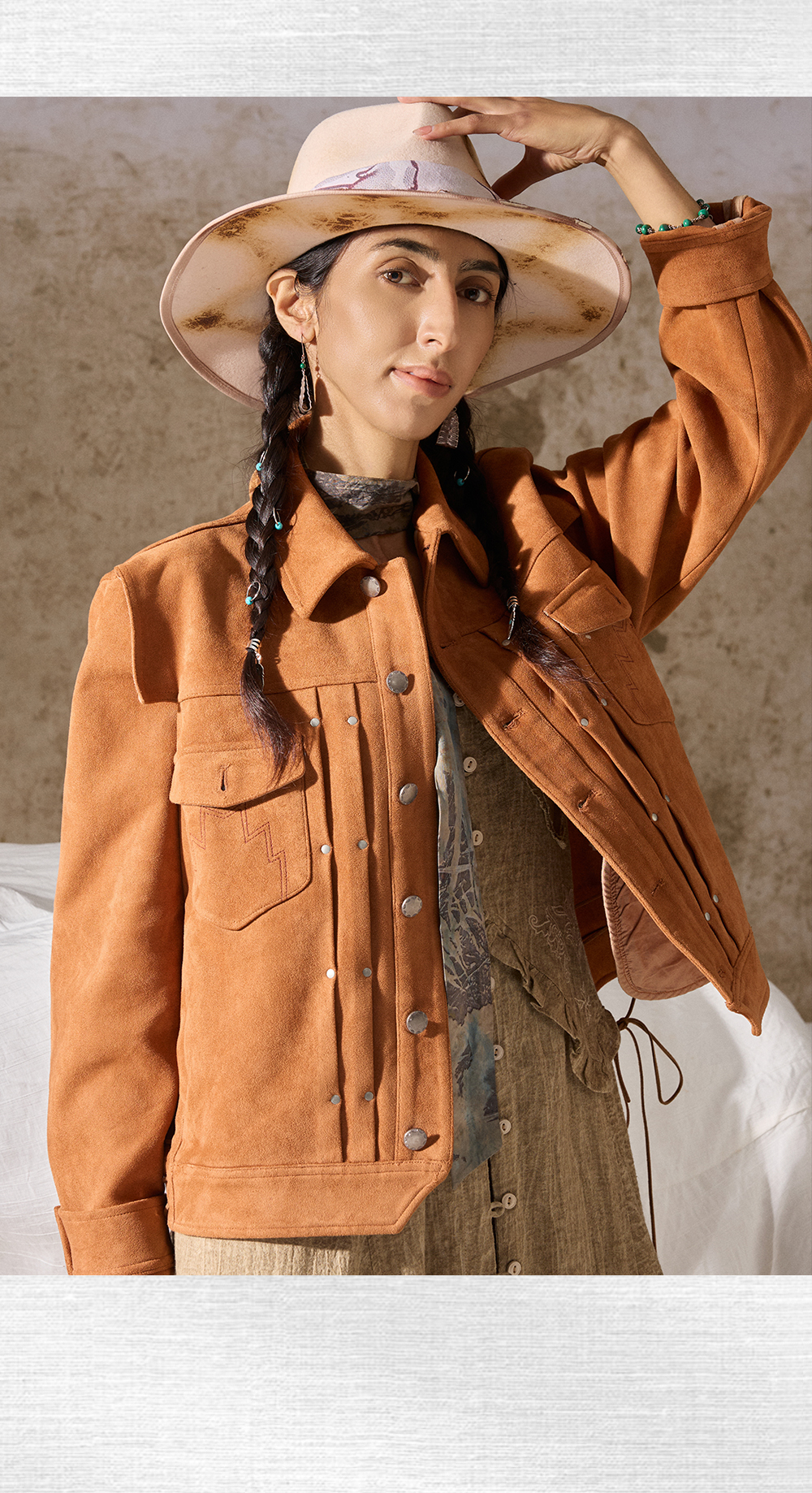 SOARIN美式西部牛仔风麂皮绒夹克男 重磅复古鹿皮飞行员短款外套