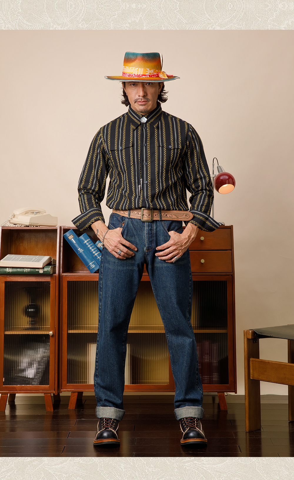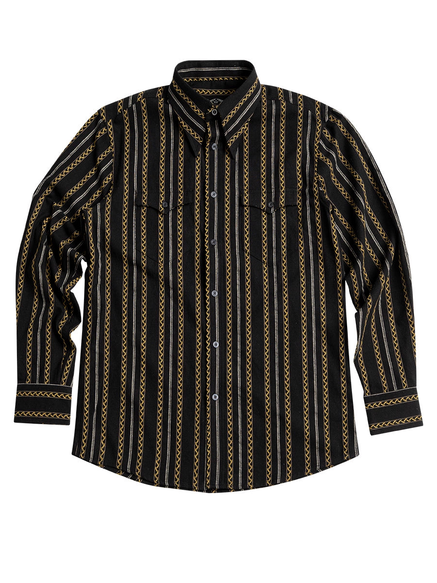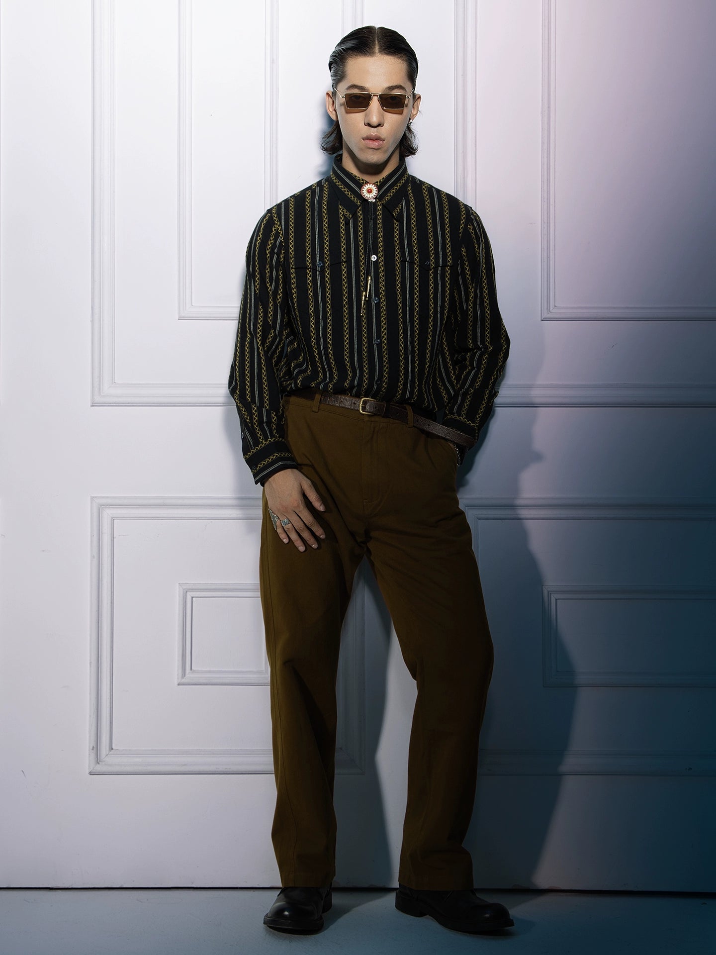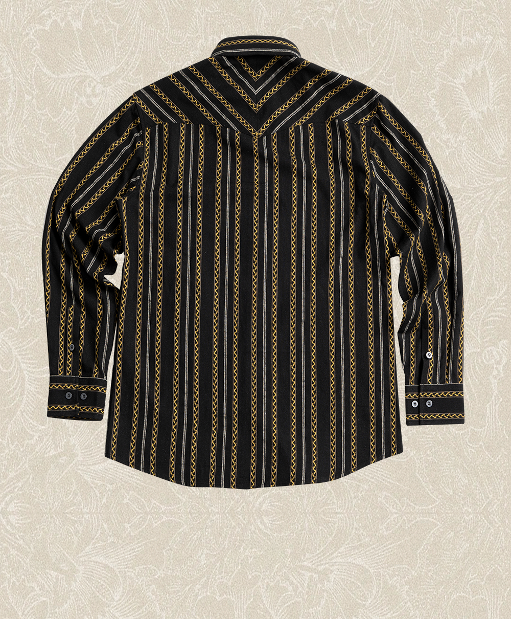 SOARIN美式西部牛仔风黑色条纹长袖衬衫男 全棉休闲提花工装衬衣