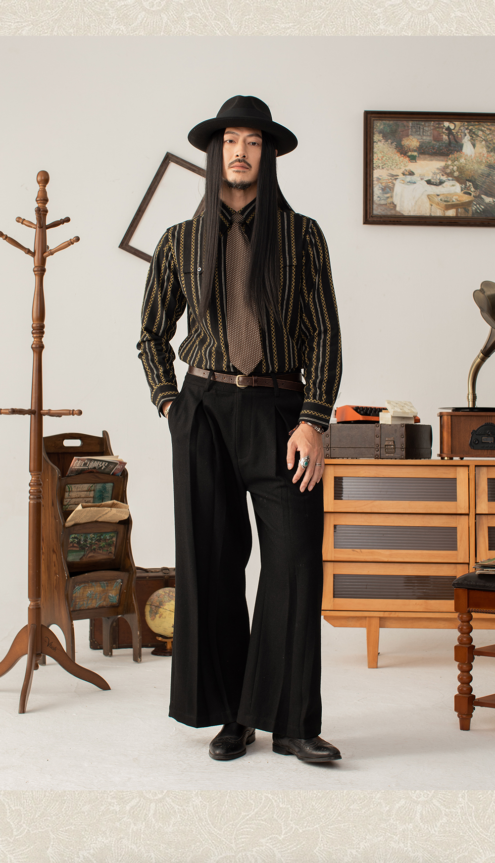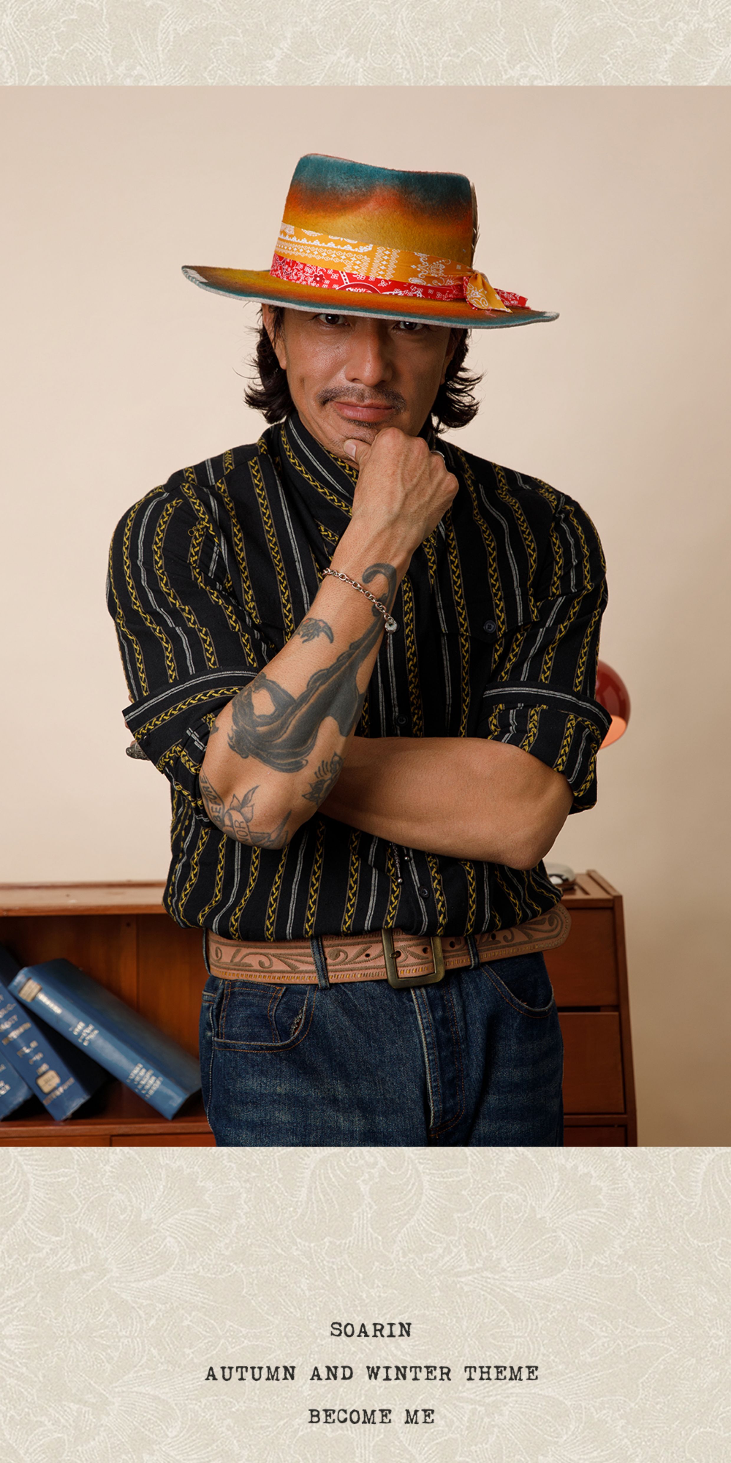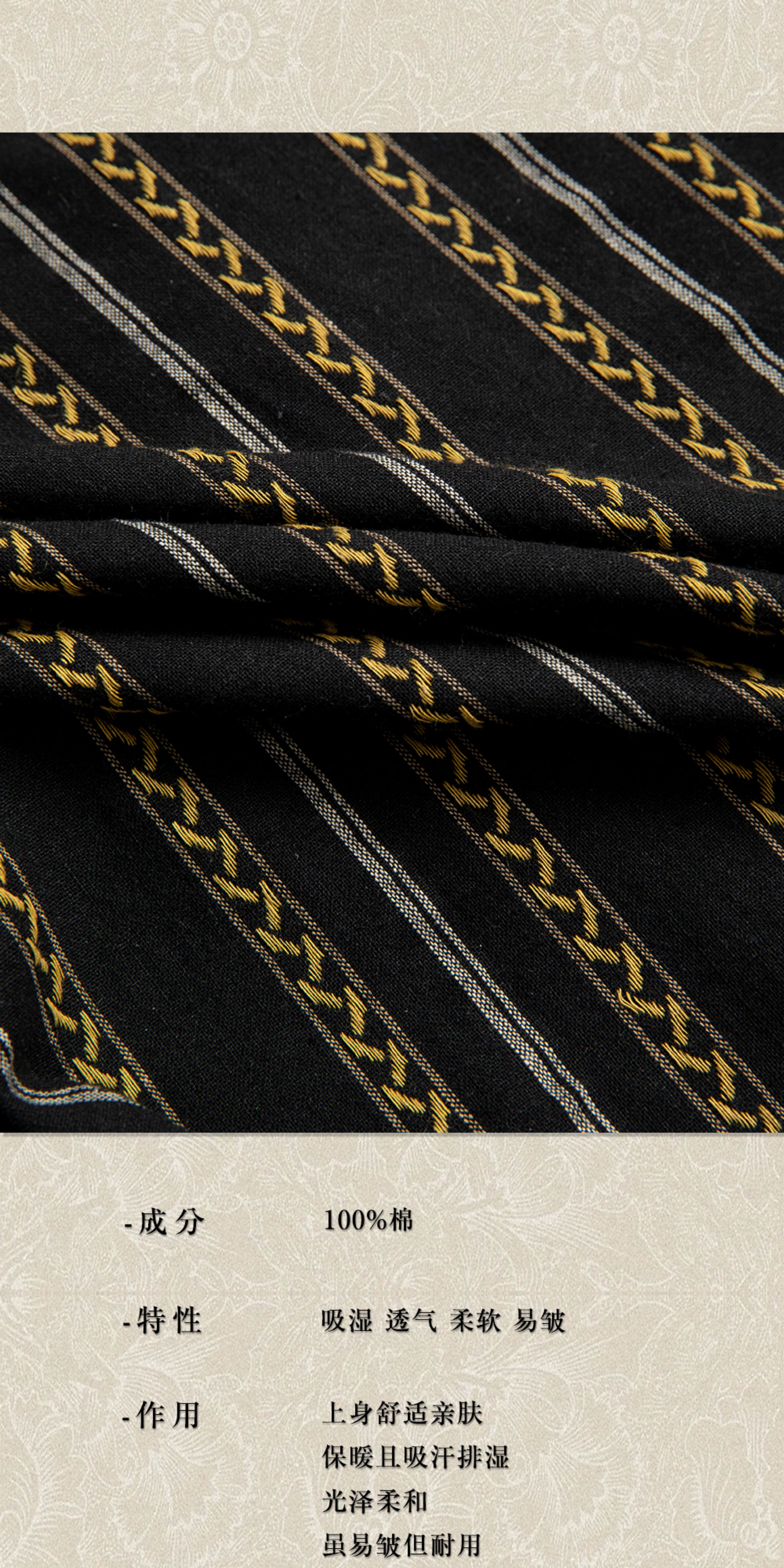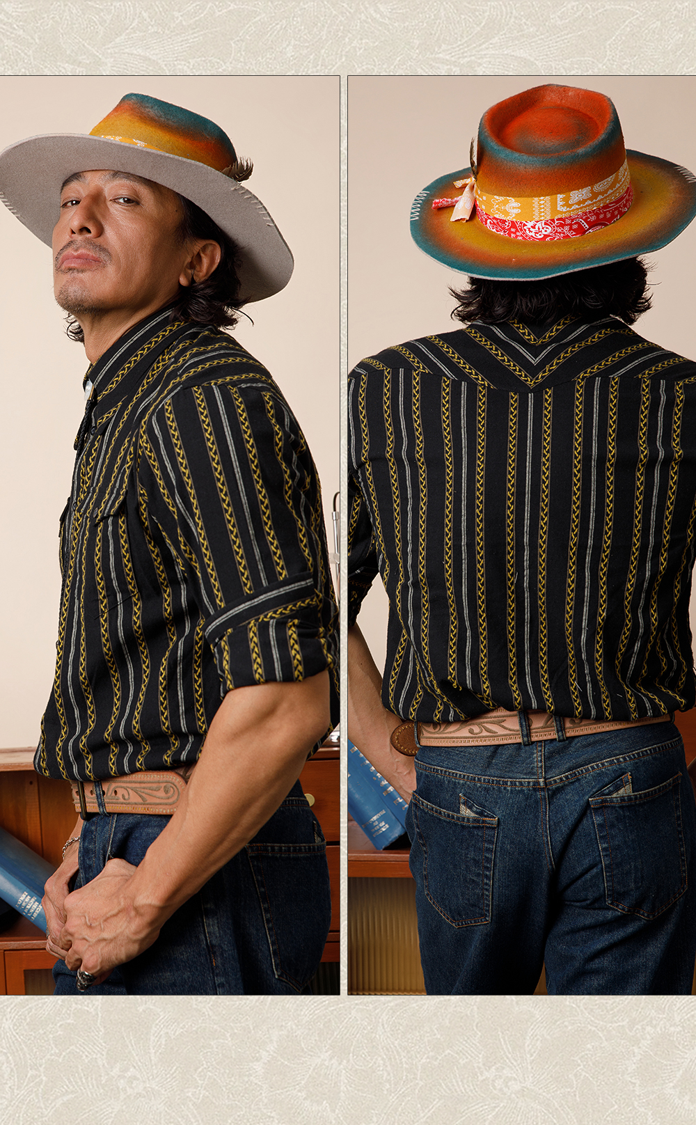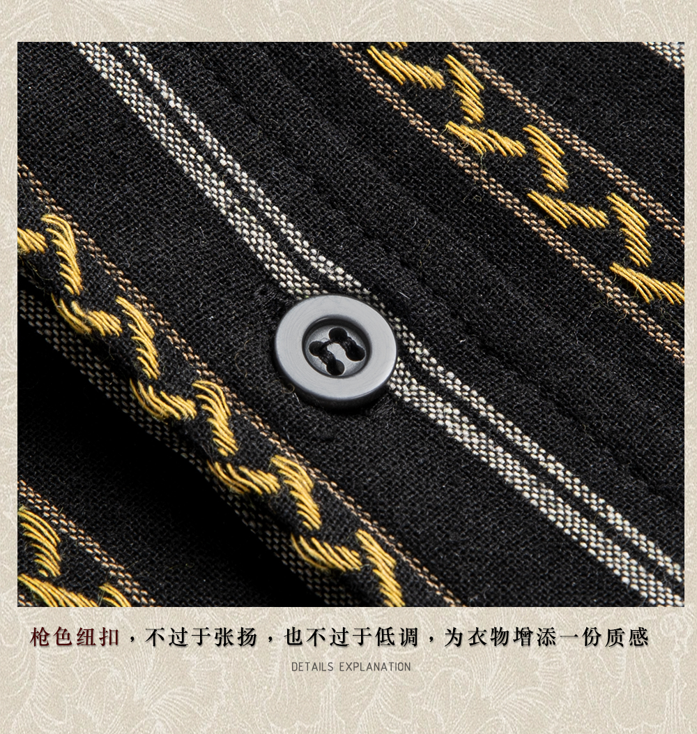 SOARIN美式西部牛仔风黑色条纹长袖衬衫男 全棉休闲提花工装衬衣