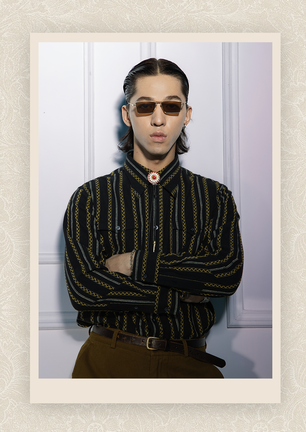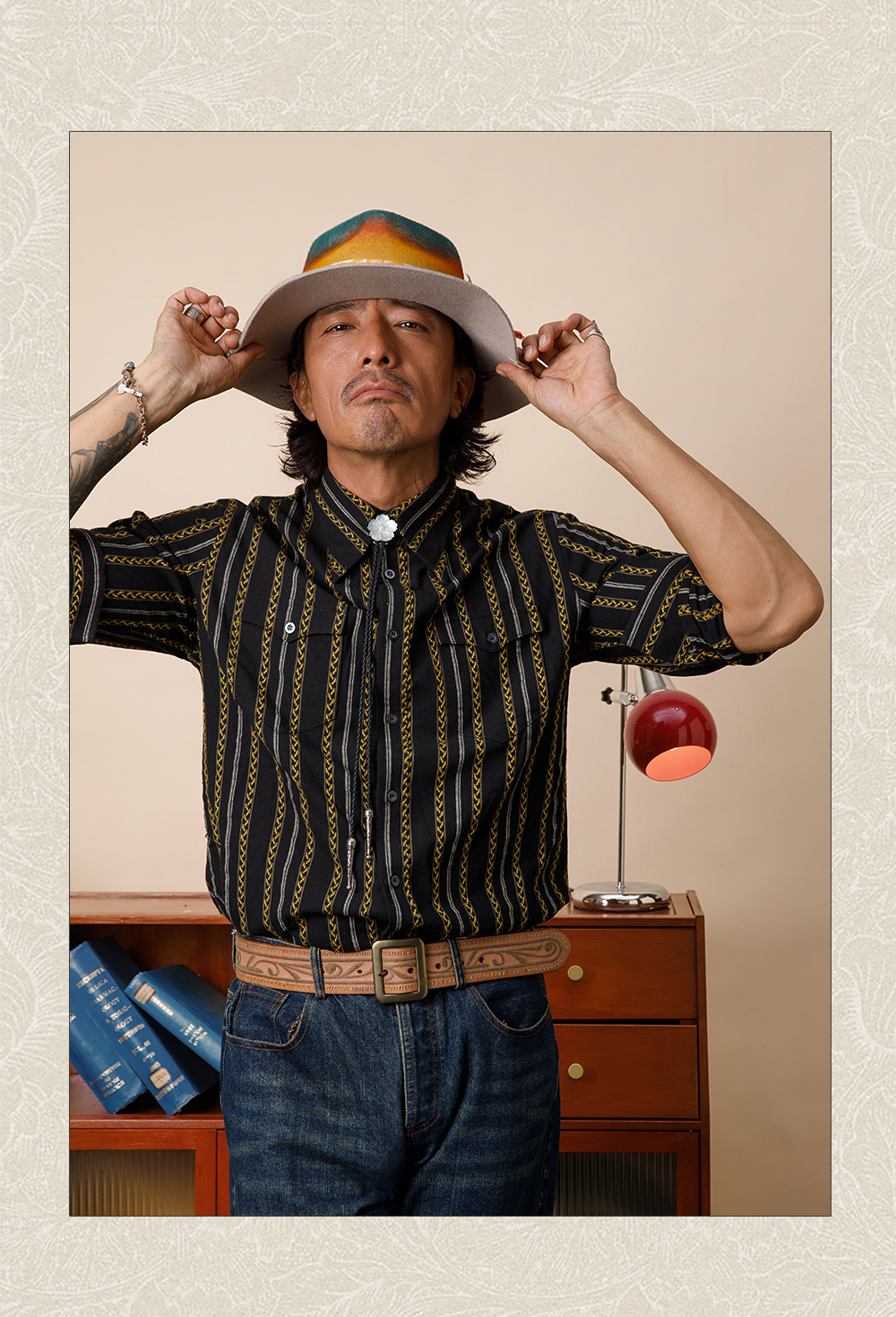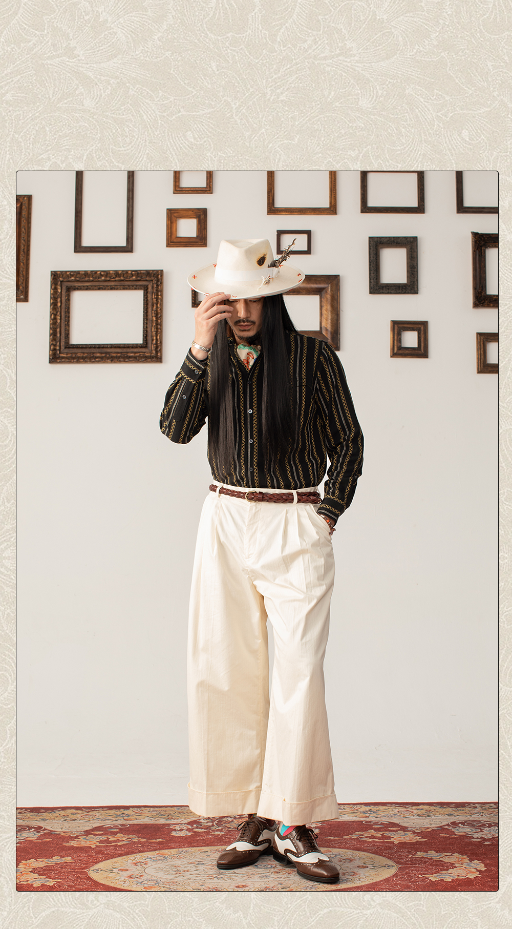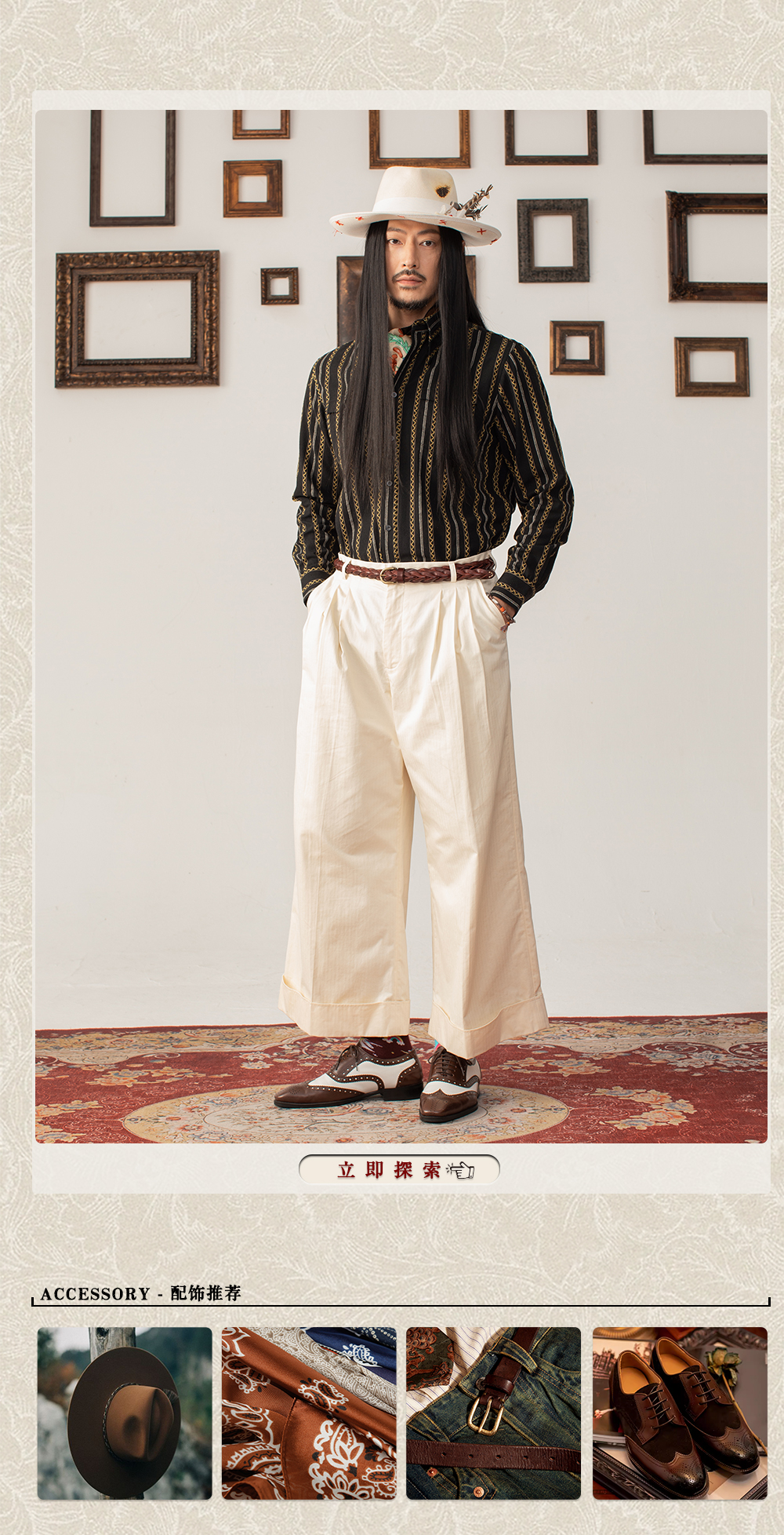 SOARIN美式西部牛仔风黑色条纹长袖衬衫男 全棉休闲提花工装衬衣