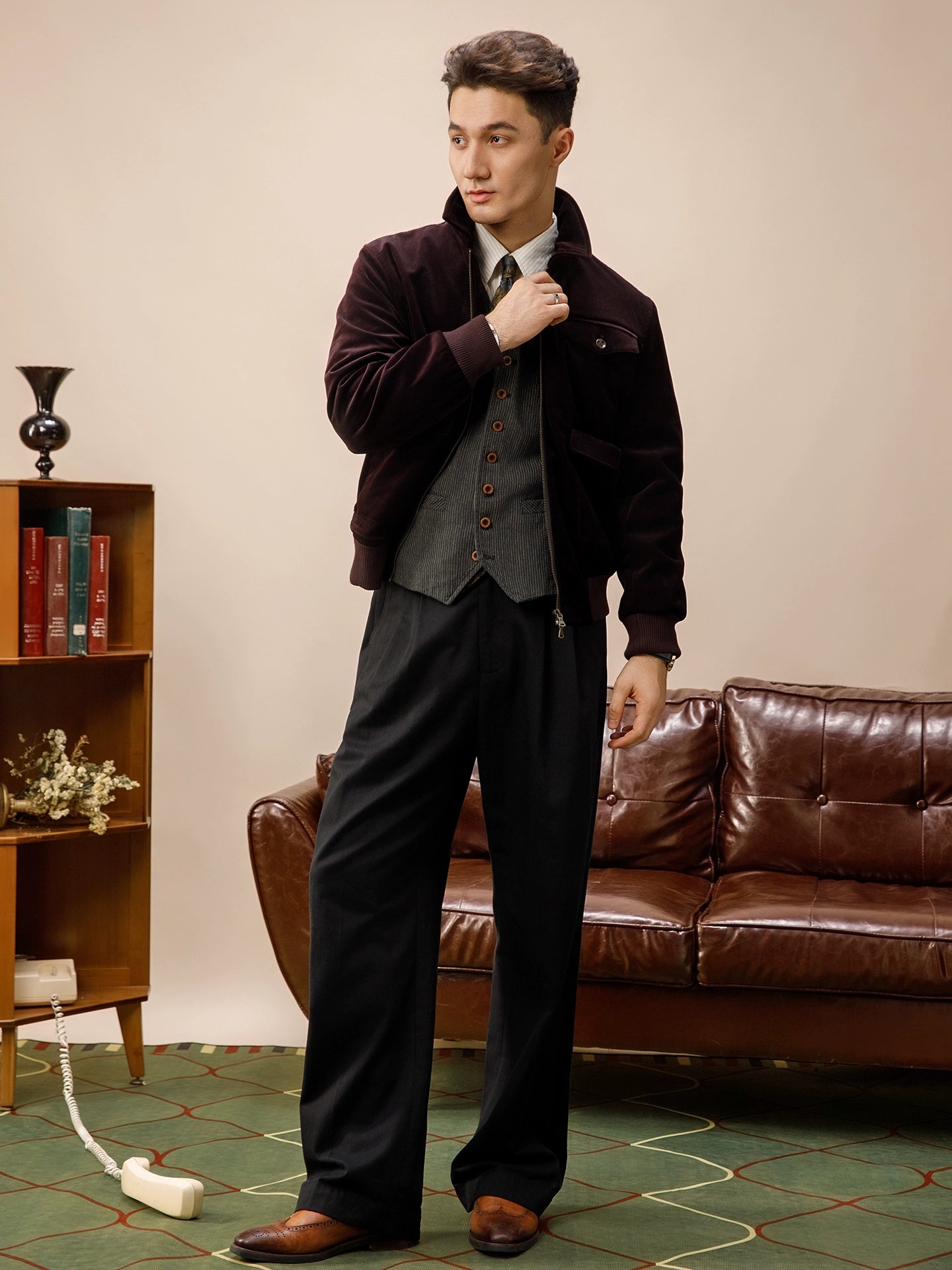 SOARIN英伦复古丝绒外套男 冬季厚款多口袋翻领短款A2飞行员夹克