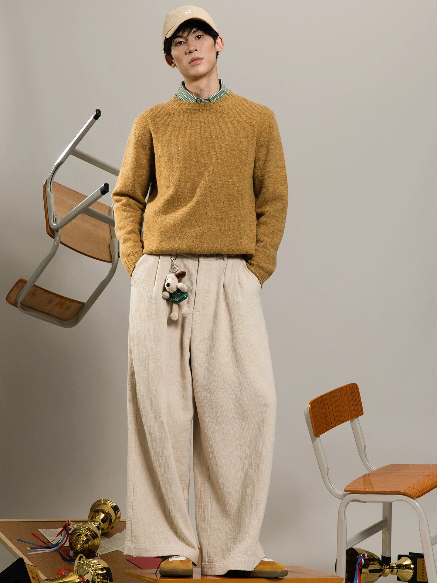 SOARIN英伦复古套头长袖针织衫男 轻熟感圆领打底通勤休闲毛衣冬
