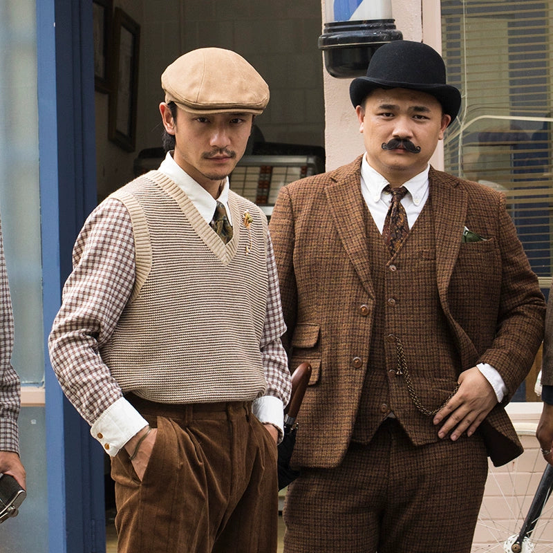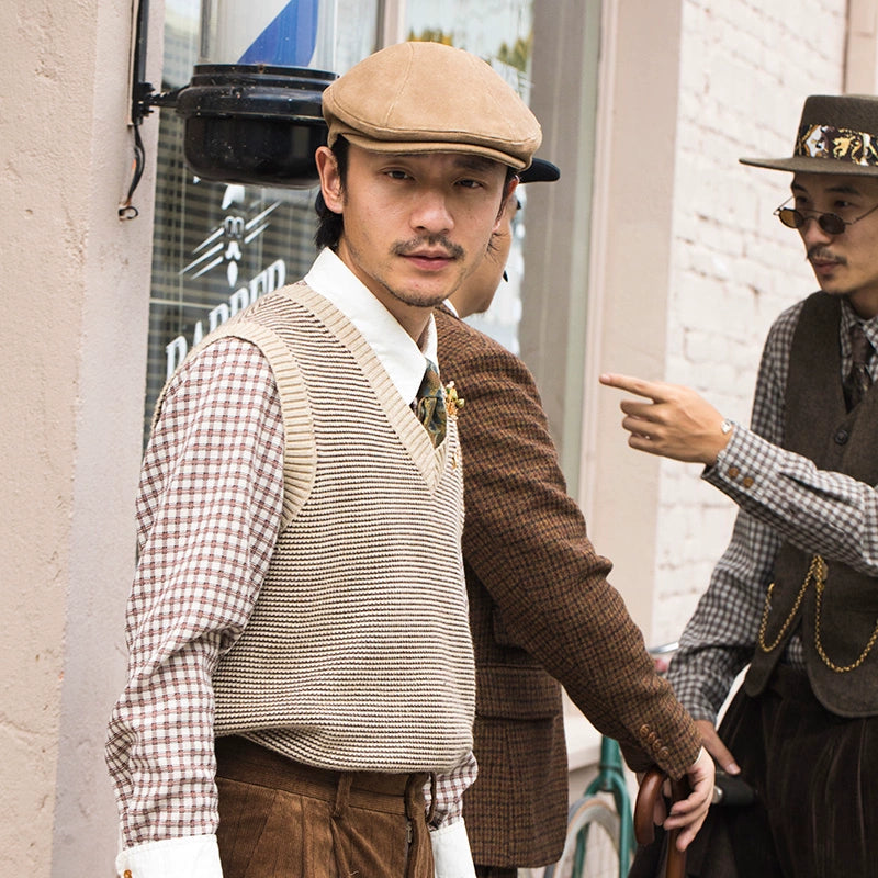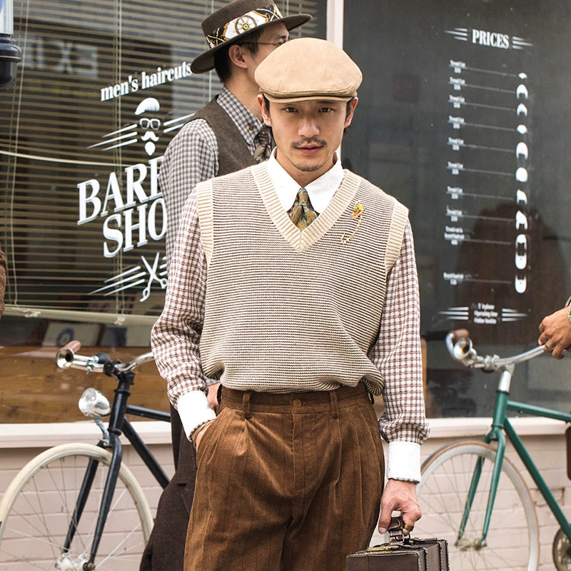 SOARIN英伦复古提花费尔岛毛衣马甲男 老钱风千鸟格提花针织背心