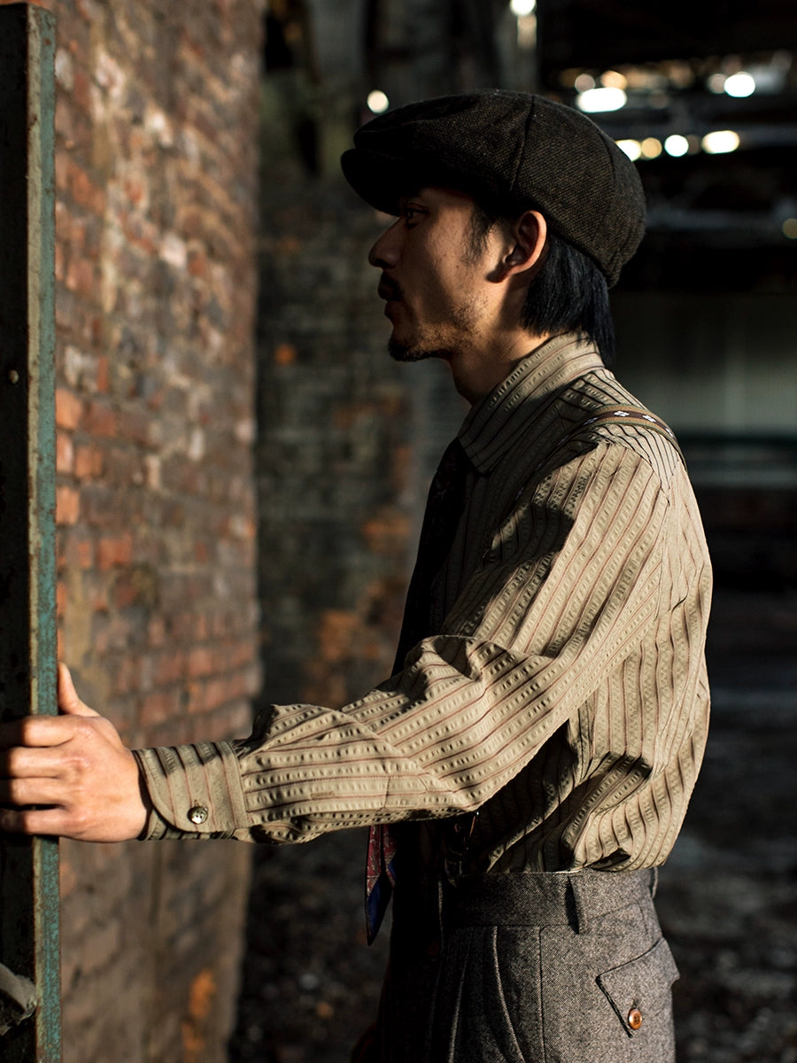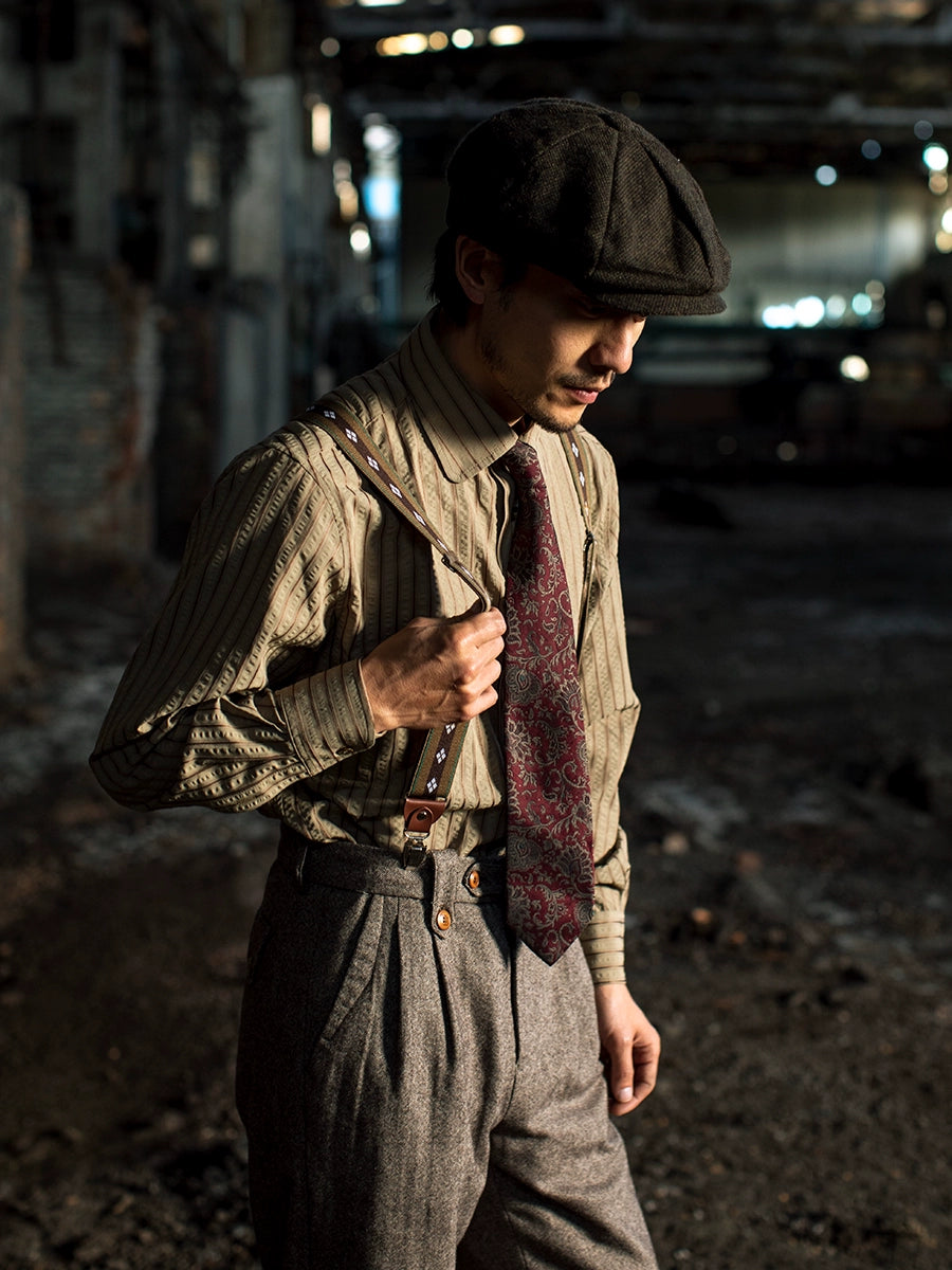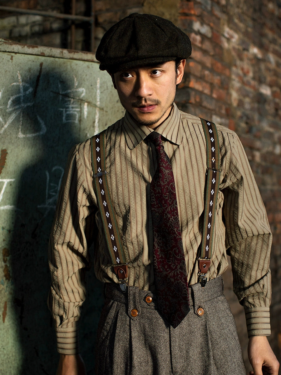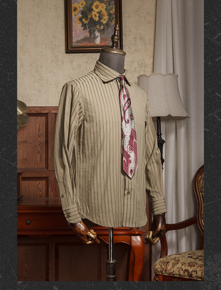 SOARIN英伦复古条纹西装衬衫男 泡泡纱免烫抗皱商务修身长袖衬衣