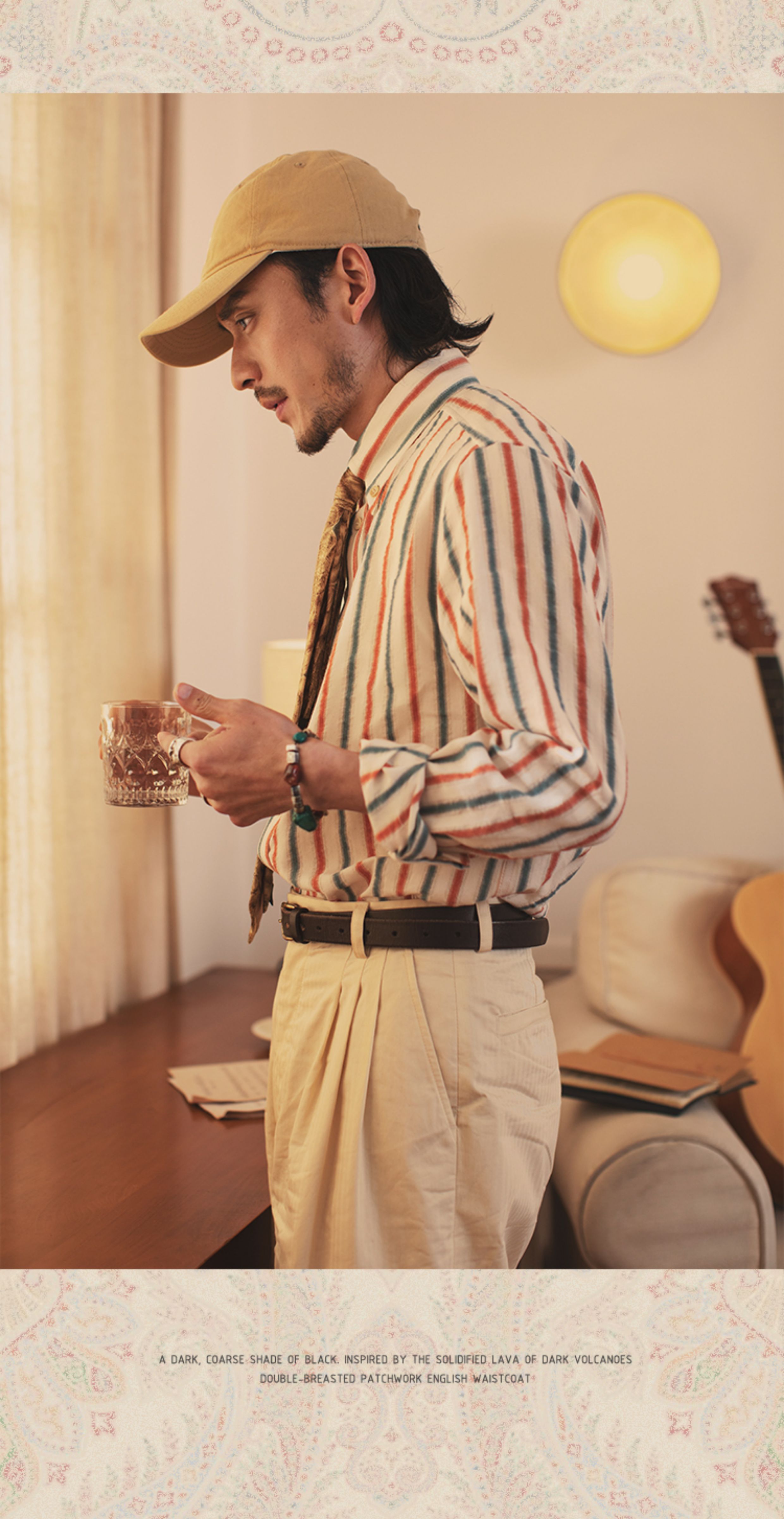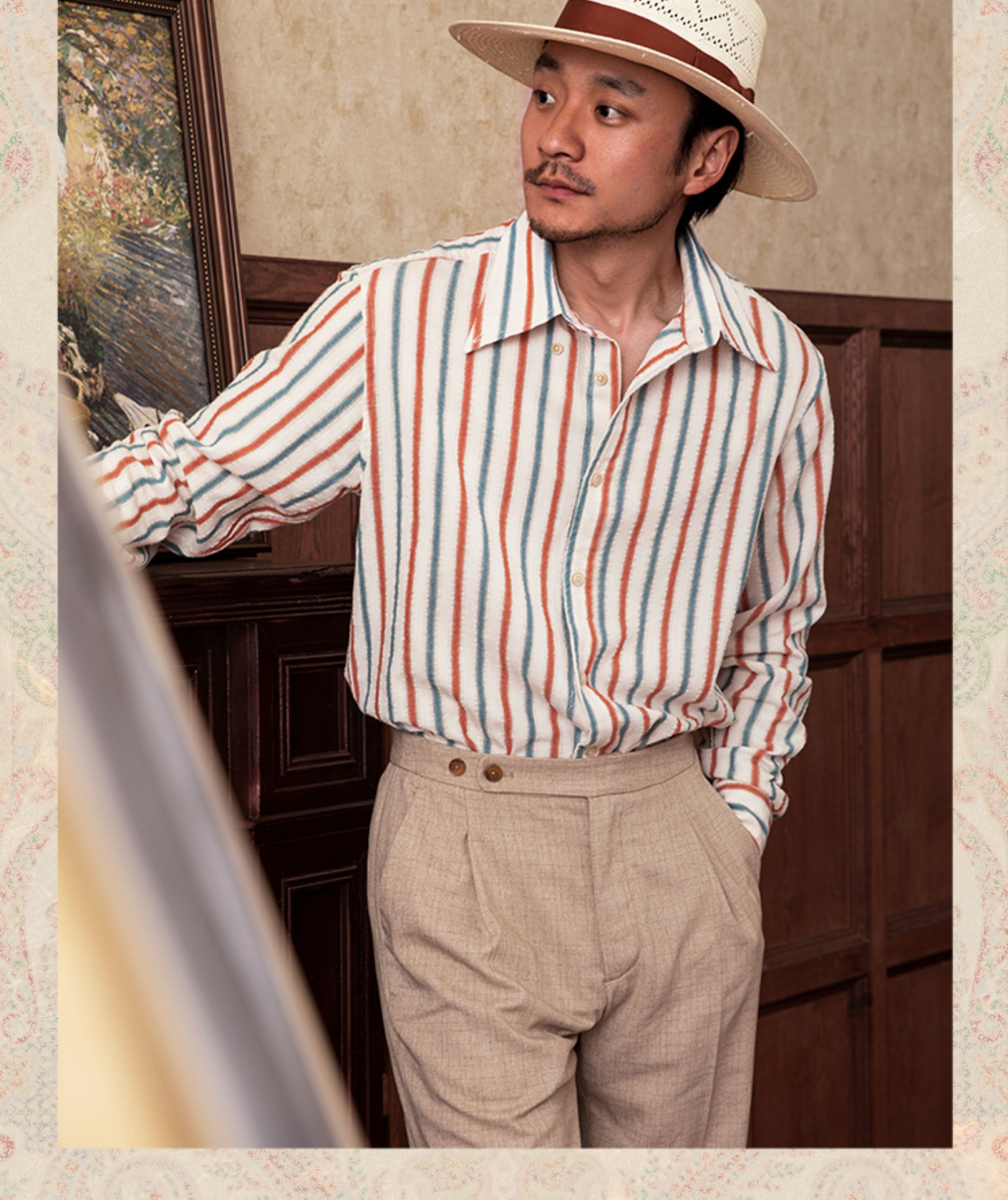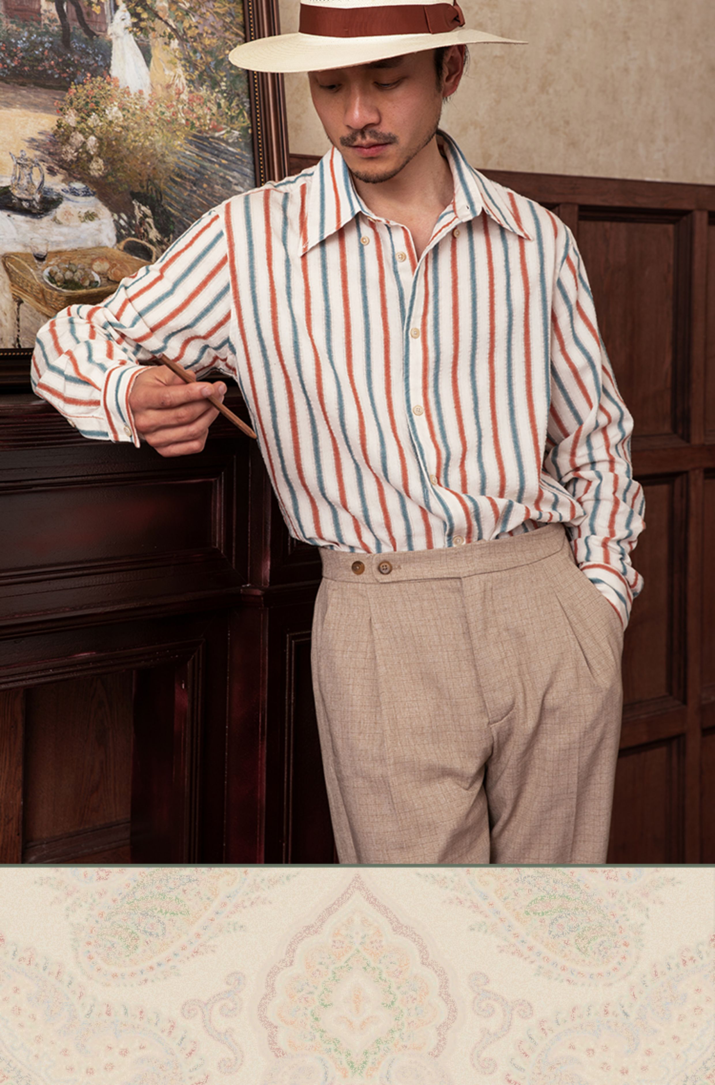 SOARIN英伦复古条纹长袖衬衫男 高级感商务正装休闲修身西装衬衣