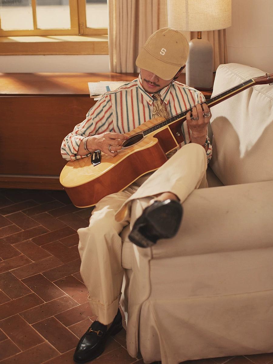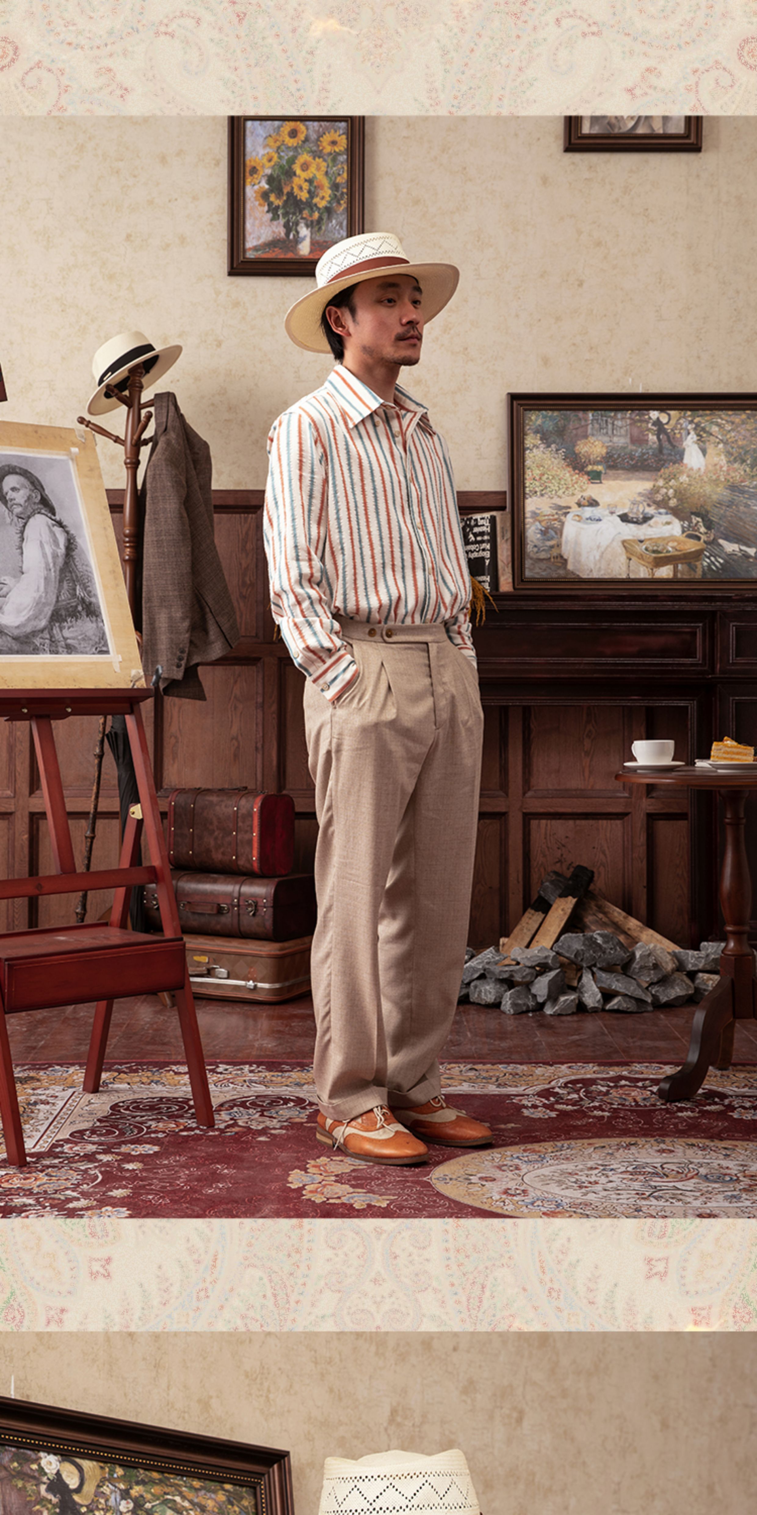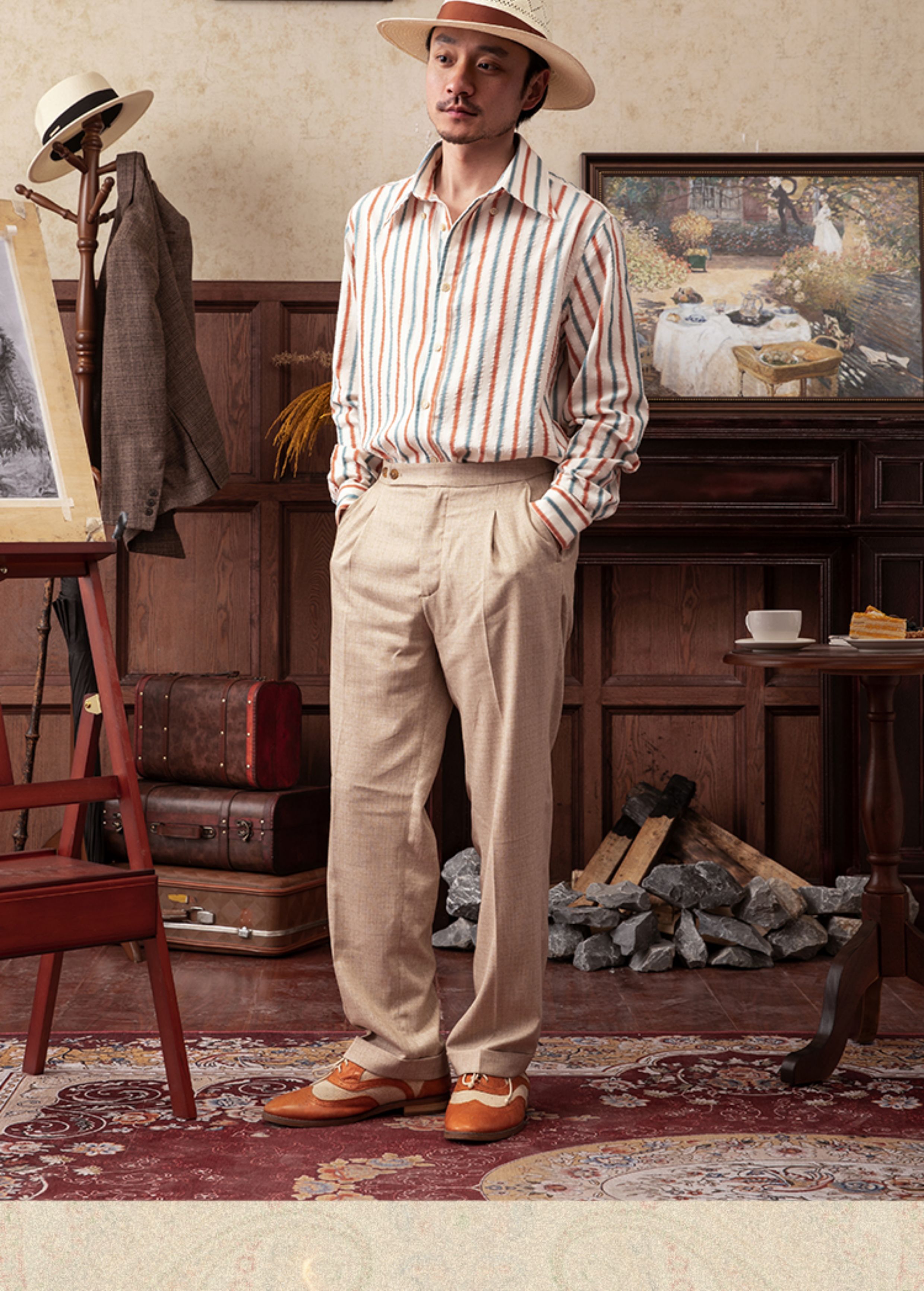 SOARIN英伦复古条纹长袖衬衫男 高级感商务正装休闲修身西装衬衣