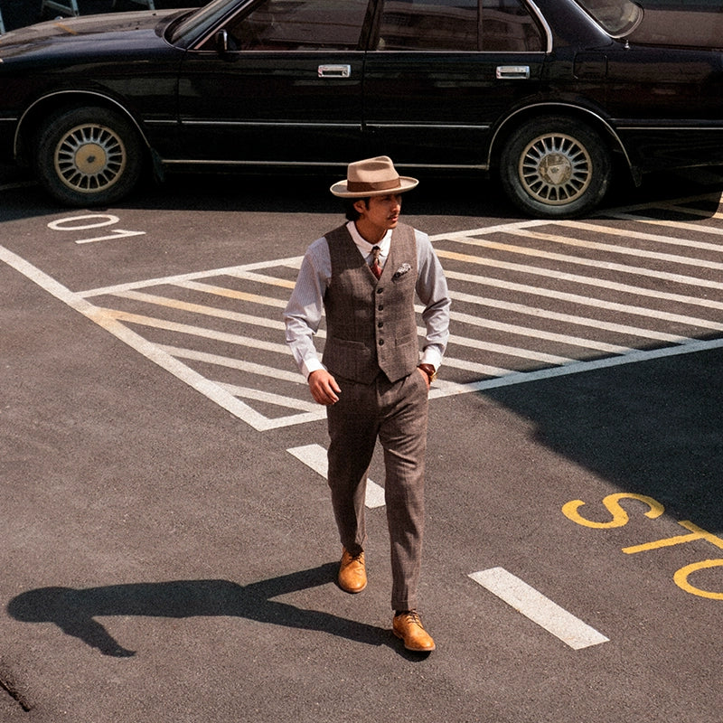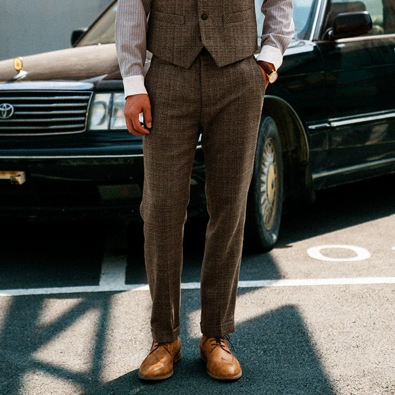SOARIN英伦复古格子西装裤男士 商务休闲修身九分裤格纹直筒裤子