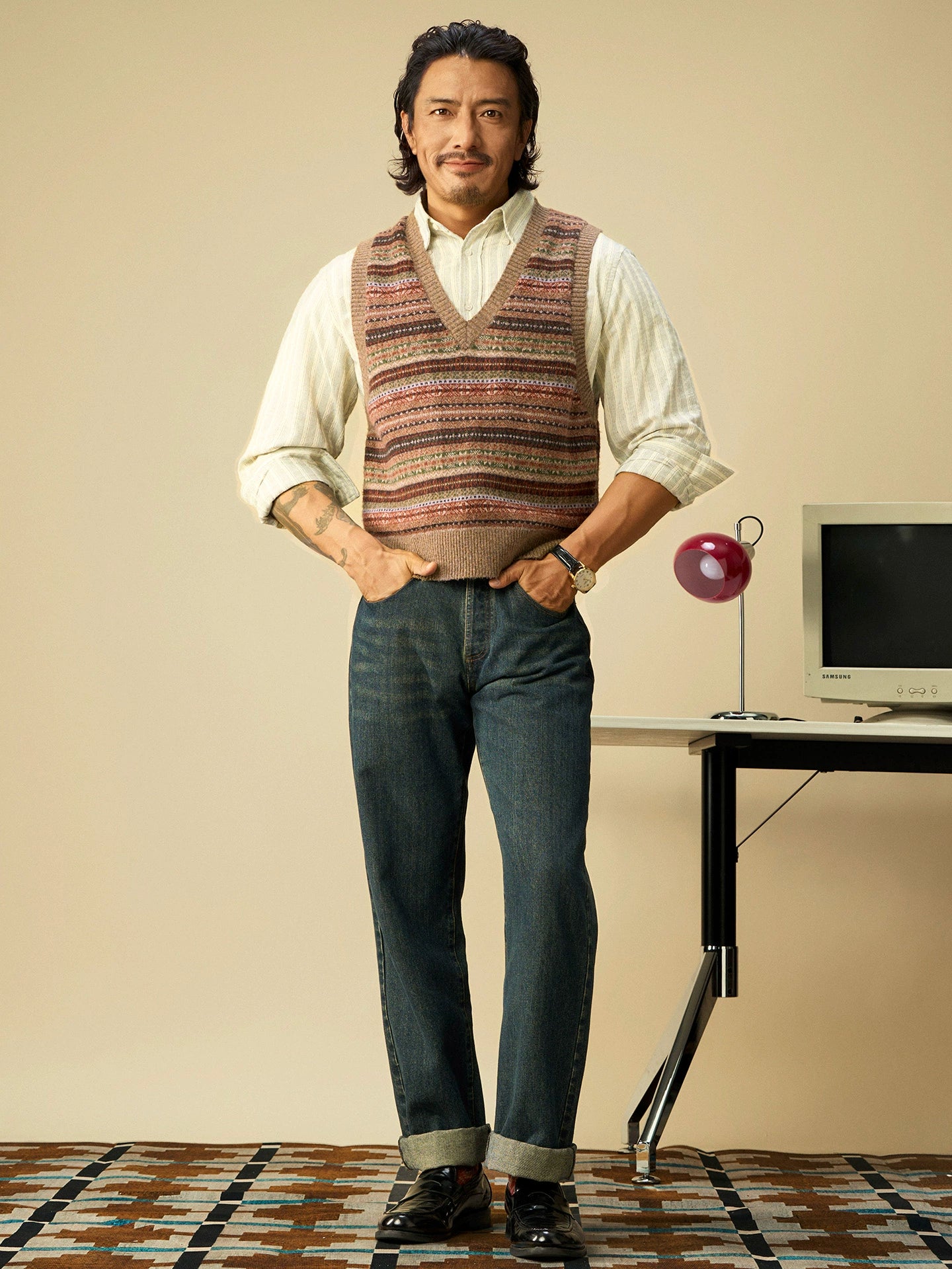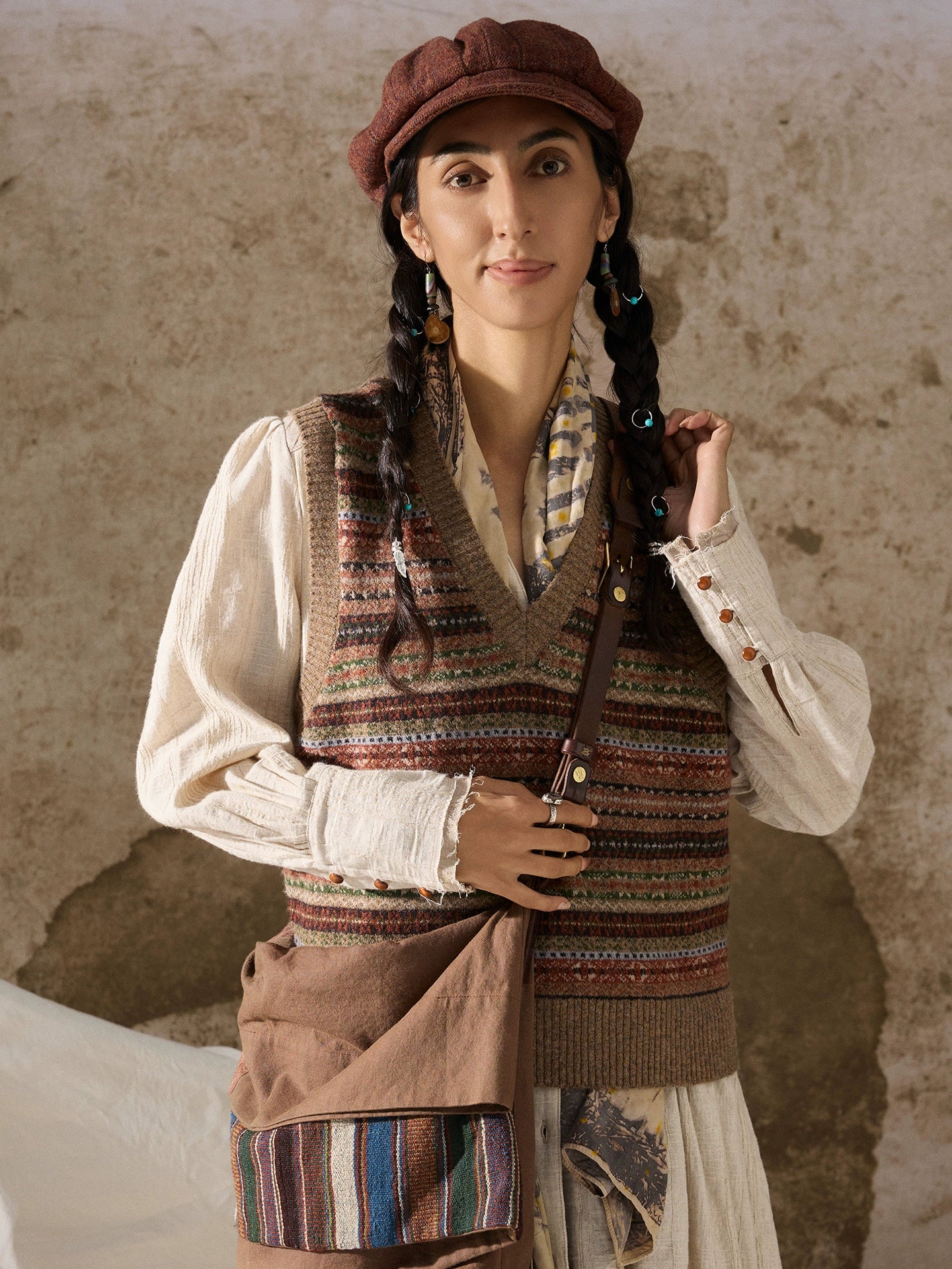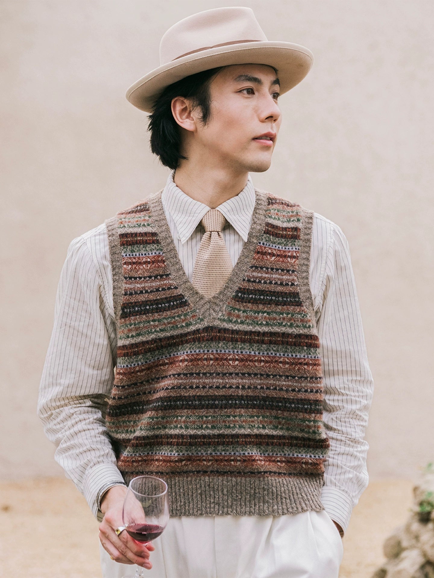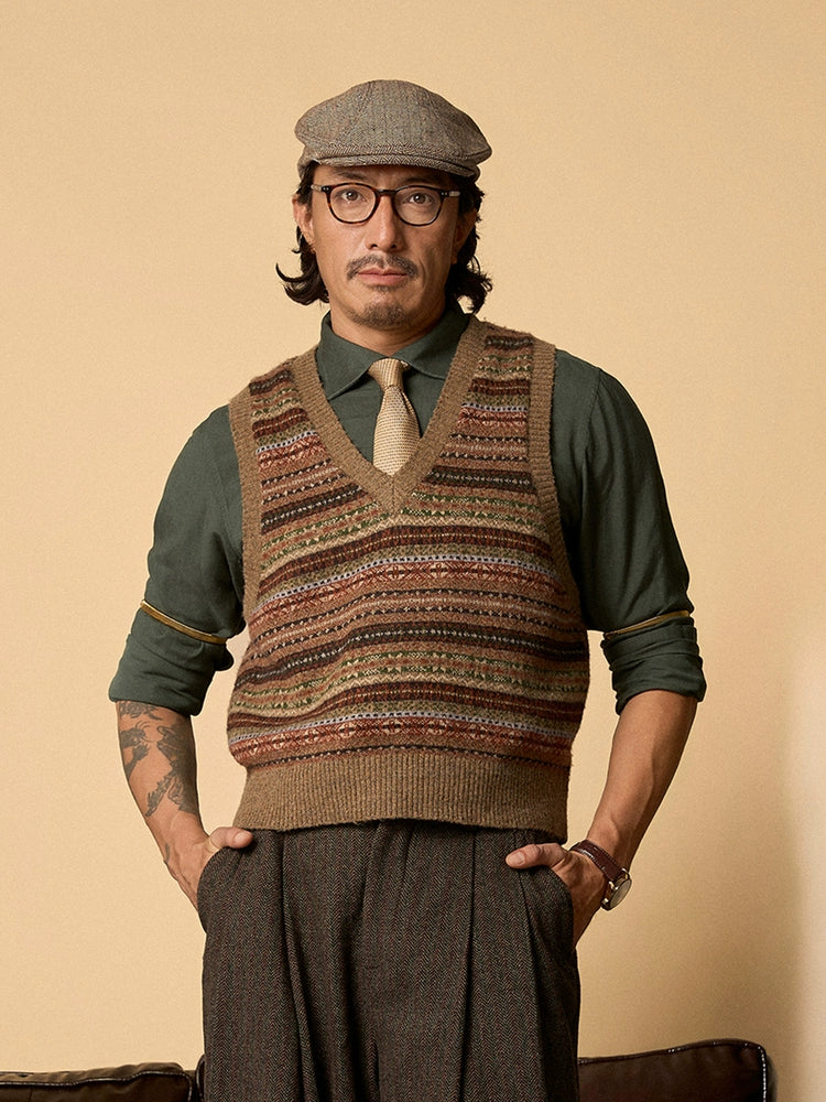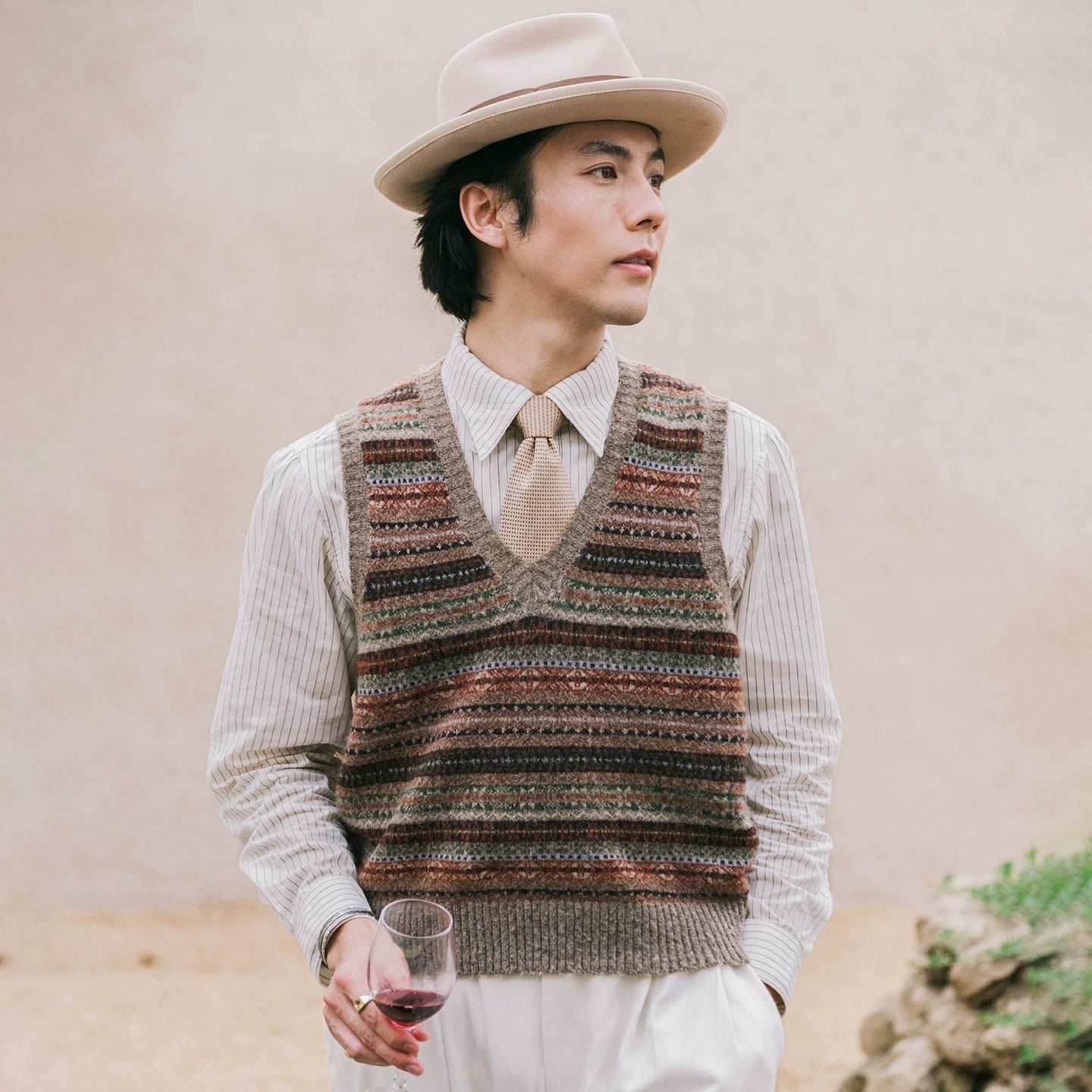 SOARIN英伦复古费尔岛毛衣背心男民族风叠穿保暖套头提花针织马甲